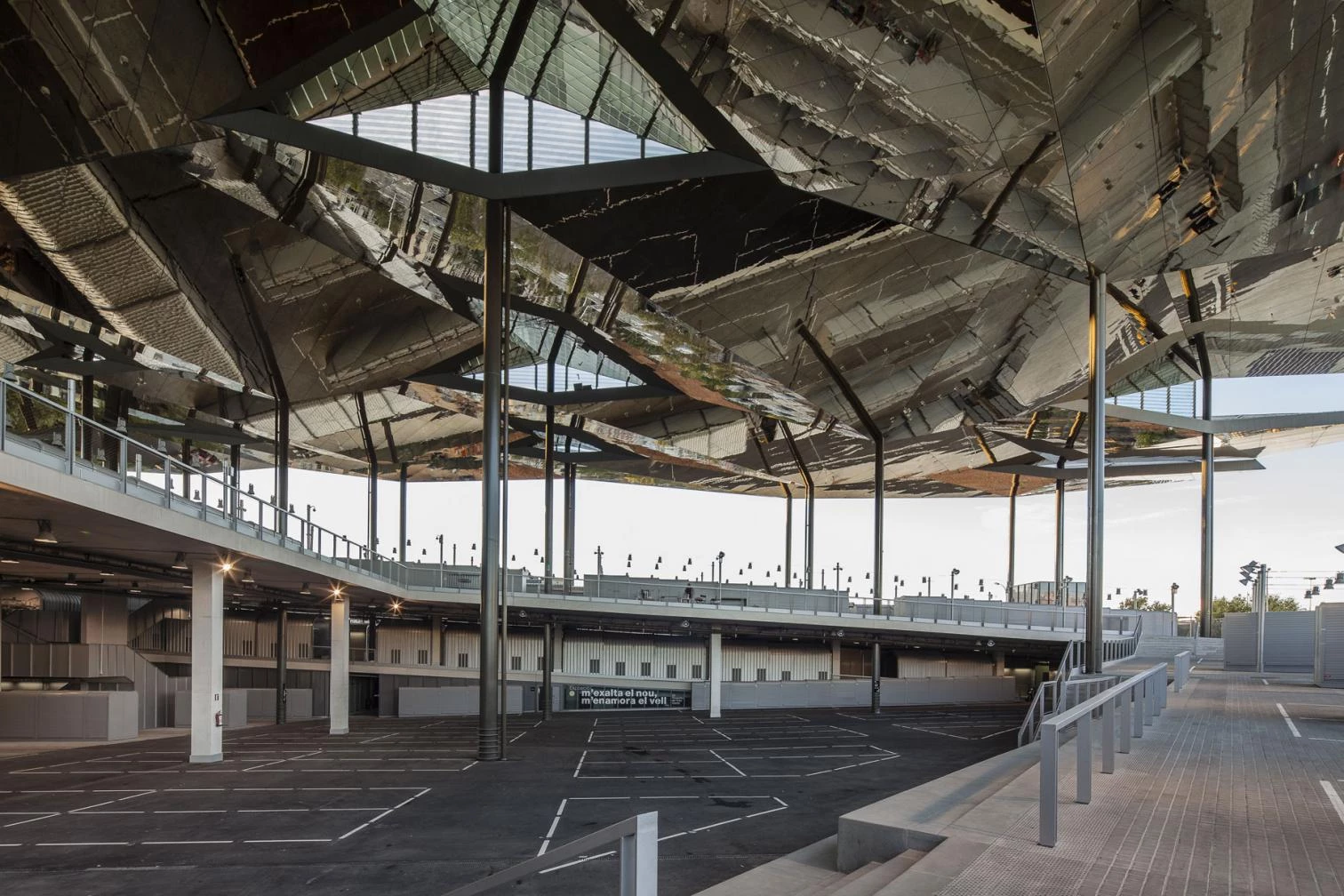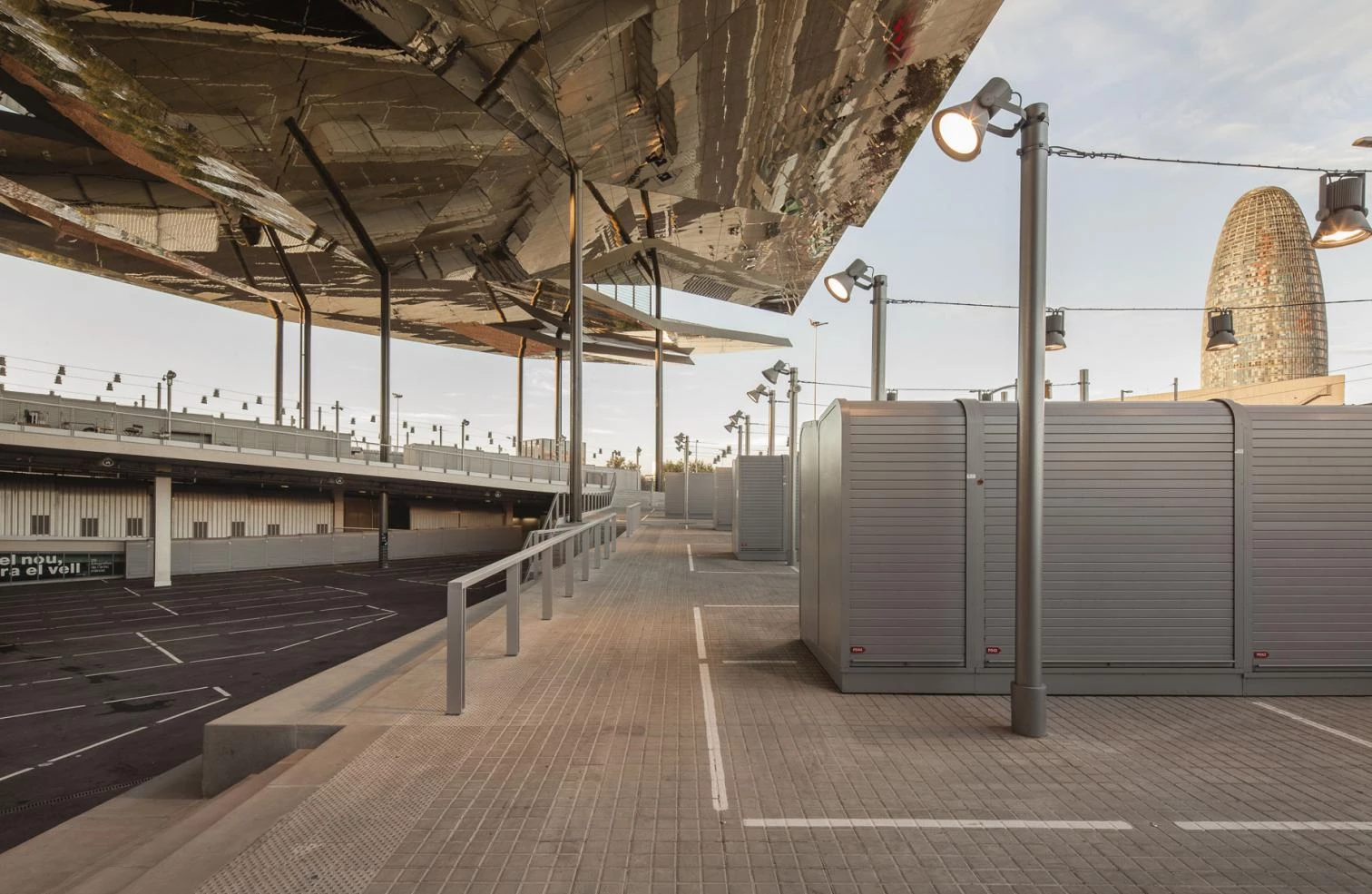 La propuesta de diseño del estudio de arquitectura B720 fue concebir el mercado como una gran plaza cubierta, en dos alturas, dispuesta sobre una plataforma elevada. La cubierta, concebida como una gran marquesina abierta, supone uno de los elementos de diseño más reconocibles del lugar, protegiendo de las inclemencias del tiempo la actividad propia del mercado, que alberga la venta de productos de segunda mano, a la vez que mantiene la experiencia de mercado al aire libre. Los planos inclinados de material reflectante que conforman la gran cubierta atrapan la luz solar durante el día y reflejan las imágenes vivas de la actividad del mercado proyectándolas hacia la ciudad. Al caer la noche sus planos dorados reflejan la iluminación artificial, logrando un efecto de gran uniformidad y conformando parte del paisaje urbano nocturno de la zona.