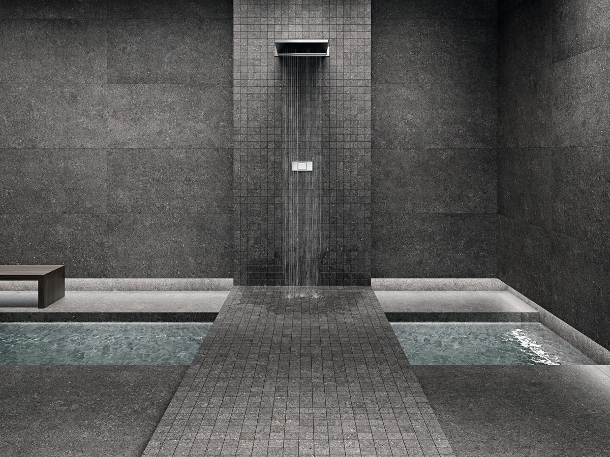 La serie Mítica está inspirada en una piedra caliza gris de grano fino. Su base está salpicada con incrustaciones minerales, alternando tonos plomizos con matices perla y blancos. El fondo suave de la base de esta serie es idóneo para revestir paredes completas, así como suelos.