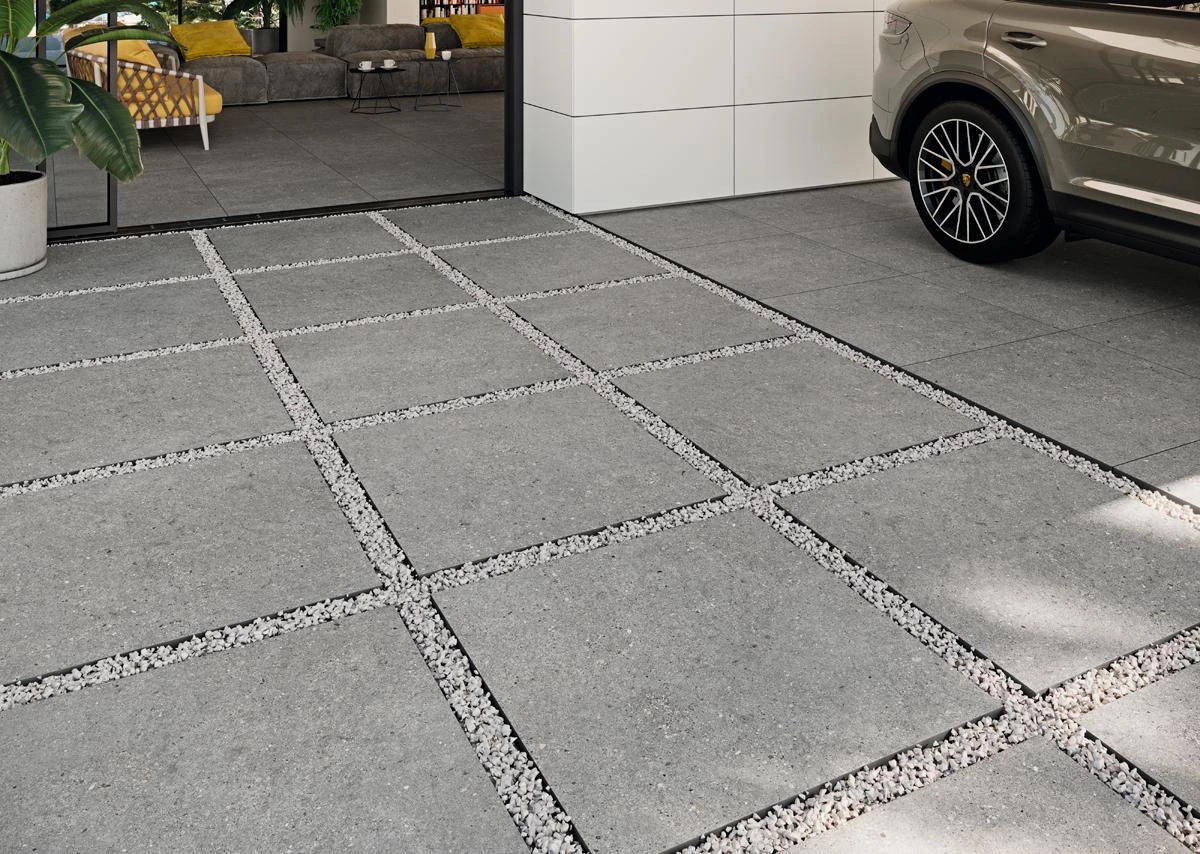 La serie está disponible en: cuatro formatos (120 x 120 cm , 60 x 120, 60 x 60 y 30 x 60); espesor de 20 mm para el tamaño 80 x 80 cm; cuatro colores (blanco, arena, gris y antracita); y en versión antideslizante para zonas húmedas o de exterior.