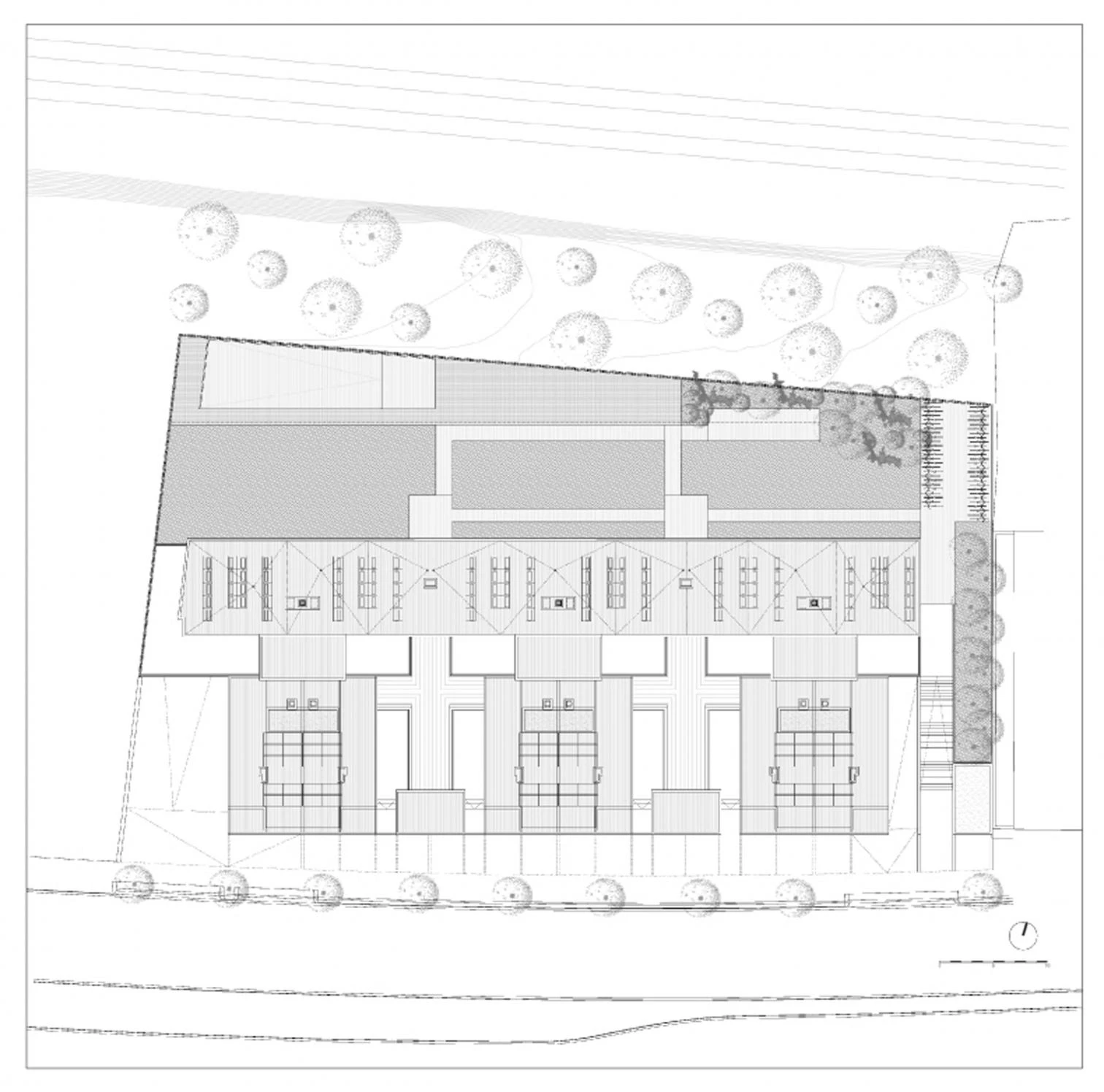Desde cada uno de los tres núcleos se accede a 36 viviendas; la organización del proyecto permite que todas las viviendas estén orientadas al sur y que todas ellas disfruten de iluminación natural y ventilación cruzada.