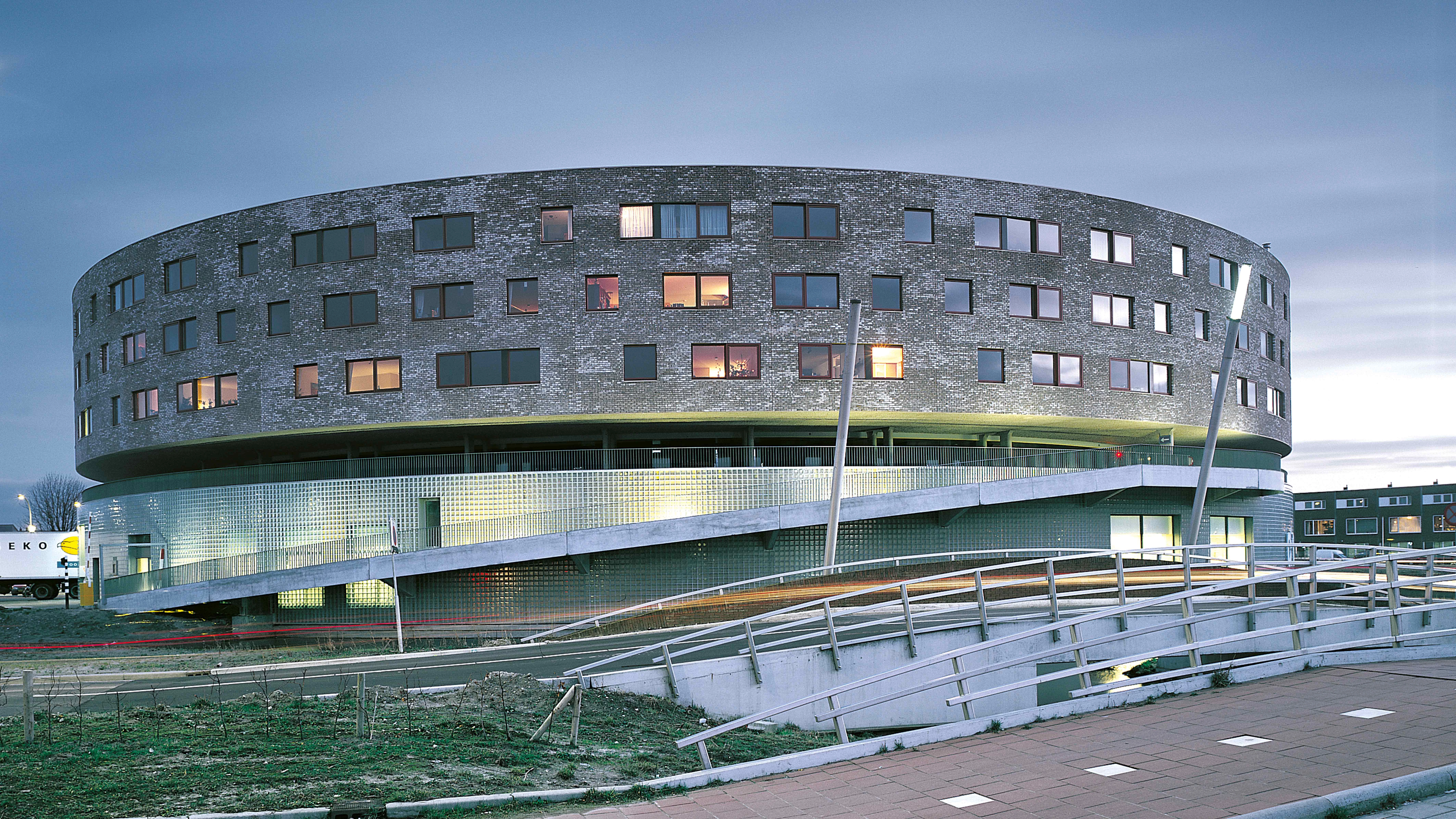 Edificio circular round building: Cauberg Huygens; Atelier Bouwkunde; IOB Hellevoetsluis (estructura structure); edificio para la tercera edad building for elderly people: Van Eck (estructura structure); Van Kapel (electricidad electricity); Deerns.