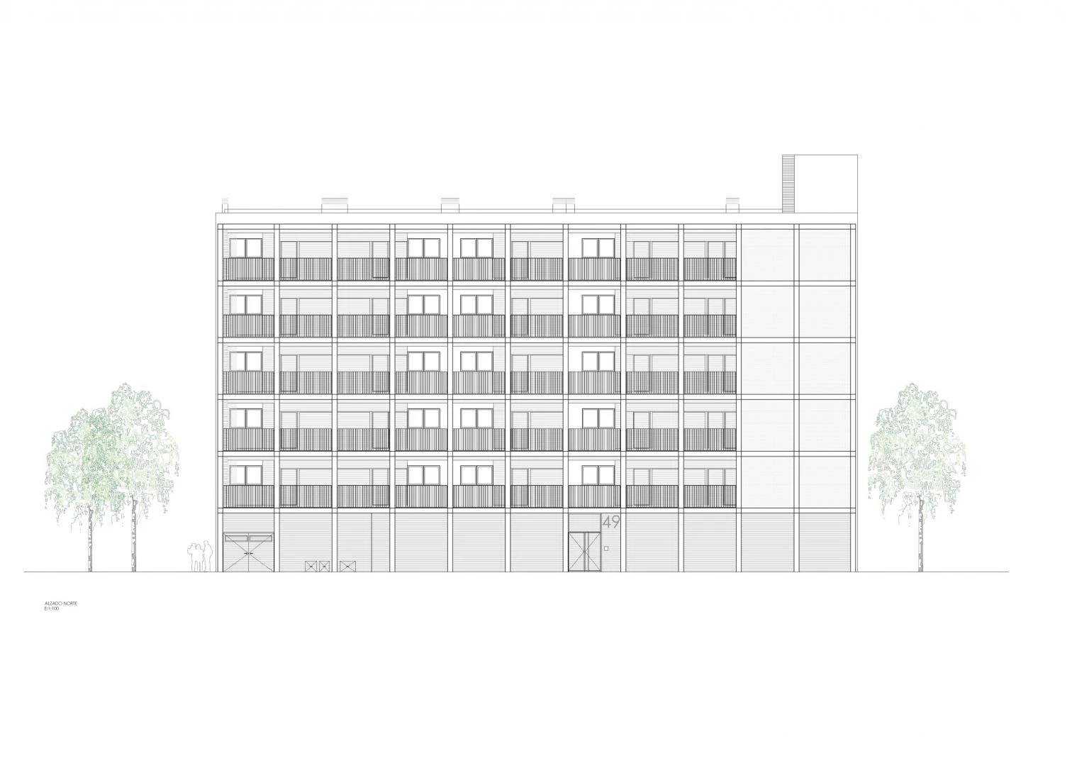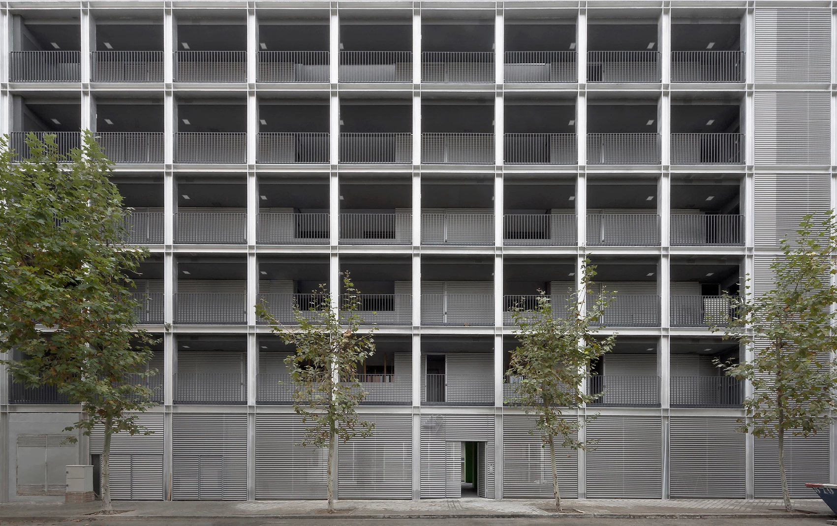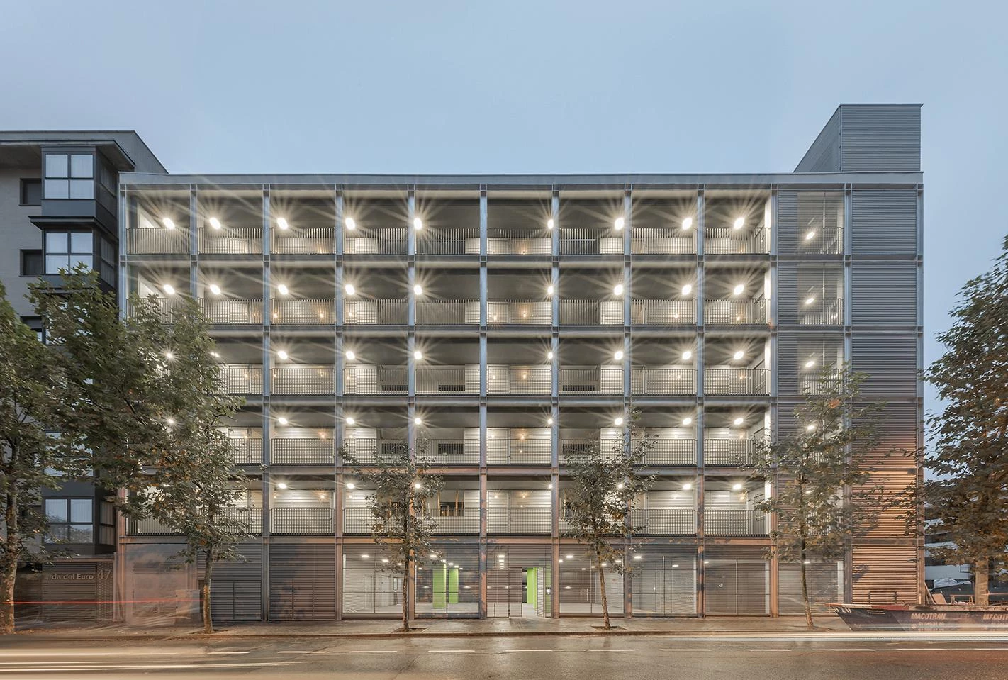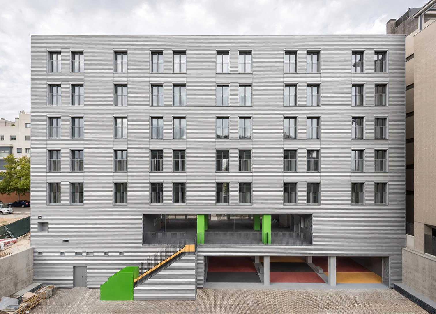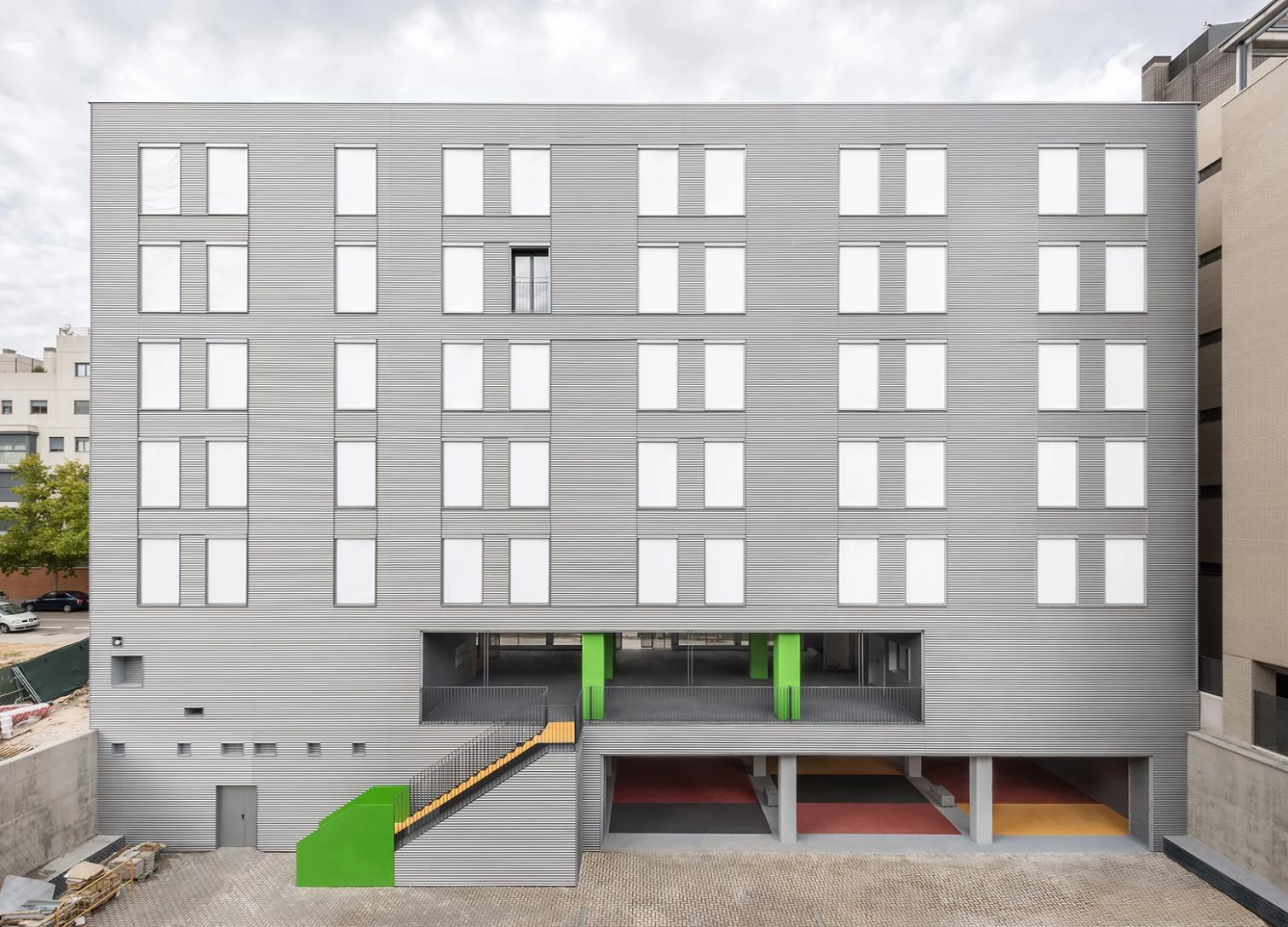 Este edificio residencial para la Empresa Municipal de Vivienda y Suelo de Madrid se sitúa en el distrito de Carabanchel con 25 apartamentos de 1, 2 y 3 dormitorios, tipo VPPA (Vivienda con Protección Pública para Arrendamiento). Lafirma madrileña de César Ruiz-Larrea ha diseñado el bloque con criterios bioclimáticos y de sostenibilidad, obteniendo el certificado de eficiencia energética Passivhaus Classic, donde el confort térmico se consigue mediante el calentamiento o enfriamiento del flujo de aire necesario para alcanzar la ventilación óptima del espacio interior. Todas las viviendas son pasantes con doble orientación norte-sur.