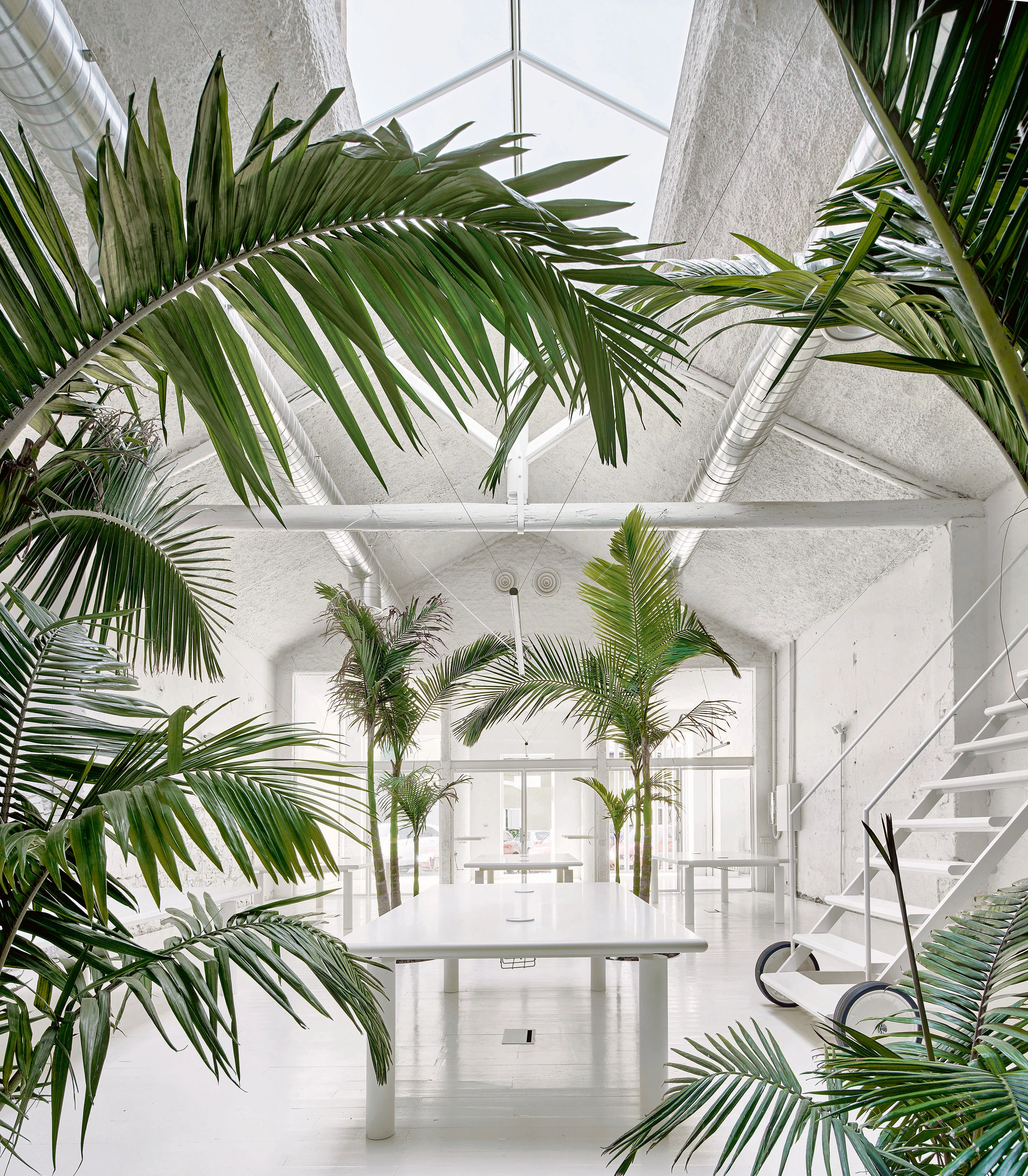 Ubicada en Barcelona, la Acid House es fruto de la reconversión de una fábrica en un centro de innovación empresarial. Planteado desde la economía de medios, el proyecto mantiene la distribución original en dos zonas diferenciadas: de un lado, la nave mayor, destinada a oficinas; del otro, la nave secundaria, donde se han ubicado los despachos, el escaparate, las salas de reuniones y la cafetería. Todos estos ámbitos se han tratado con un acabado uniforme de color blanco, que se extiende sobre las diferentes texturas originales. En este ambiente homogéneo pero que evoca el paso del tiempo, los distintos usos se distinguen gracias a las mesas, la gradas y la escalera, que se desvinculan de lo construido...