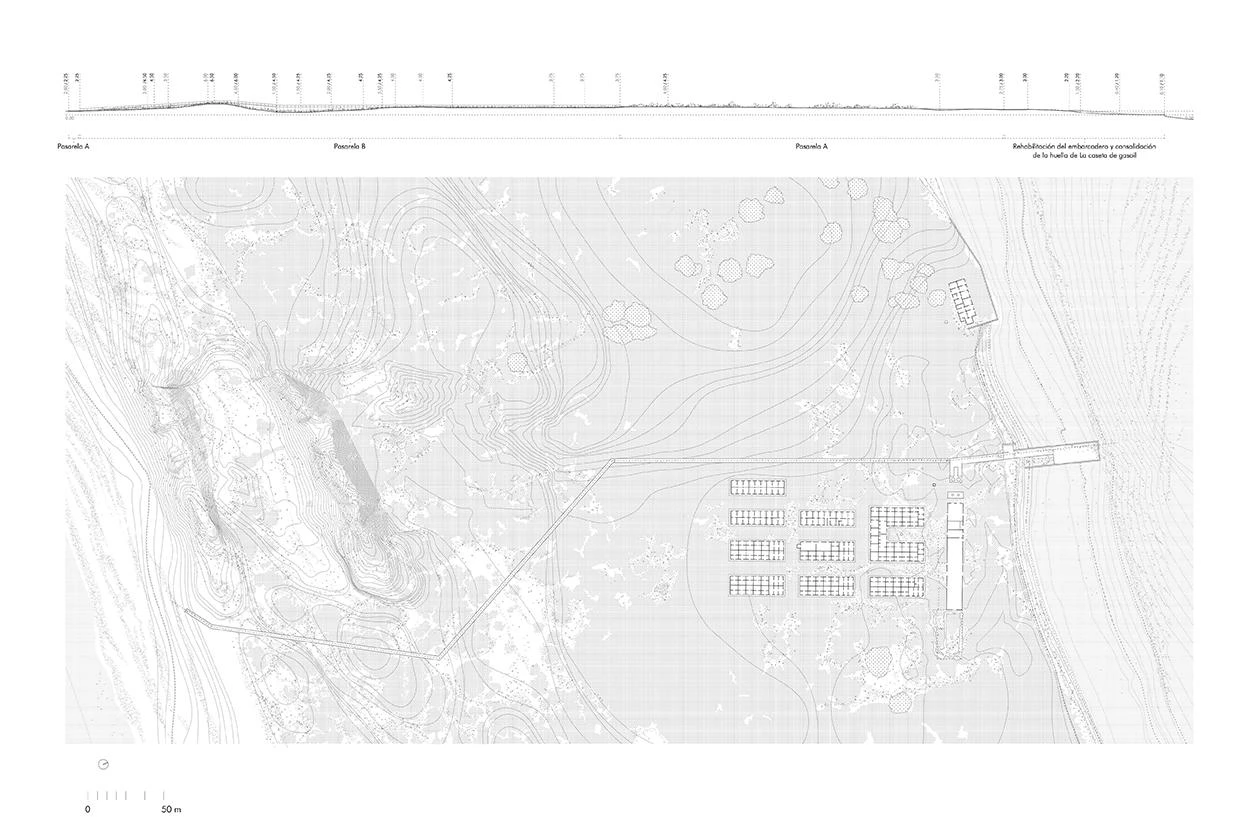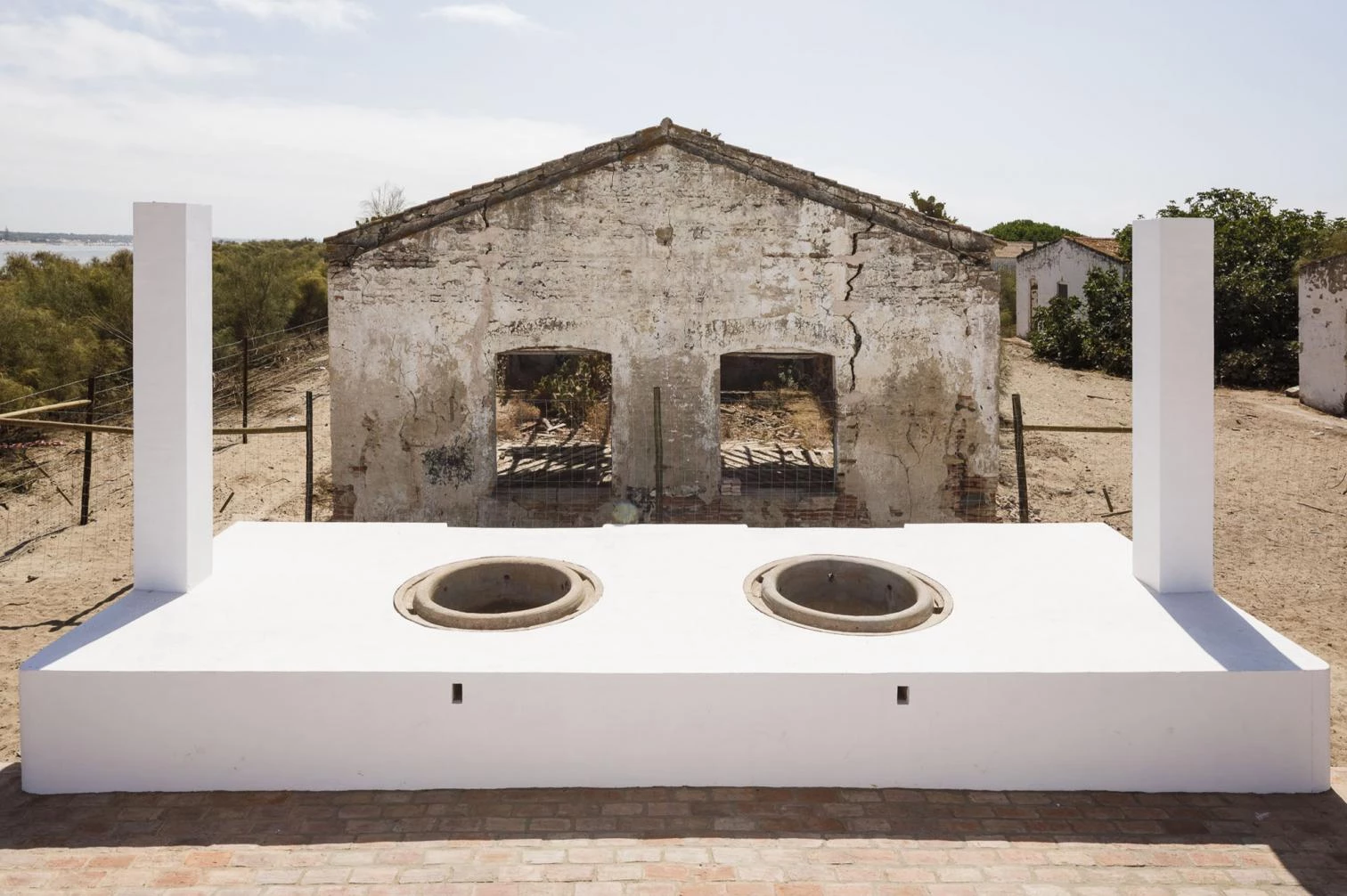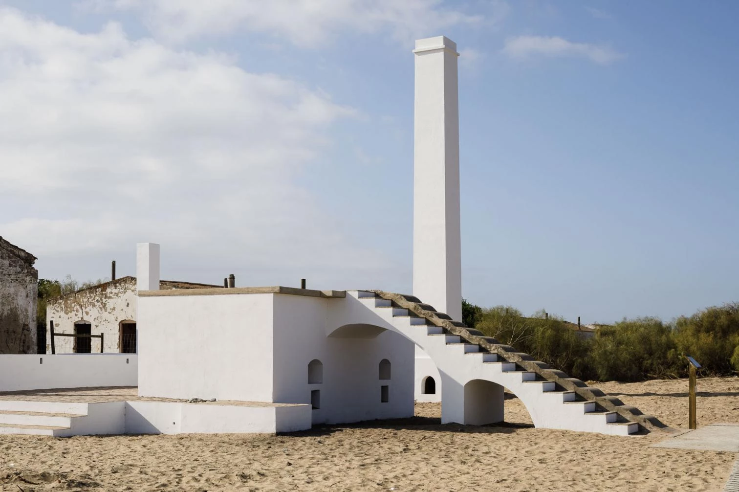 Desde tiempos prerromanos, el golfo de Cádiz ha sido escenario de la captura del atún de almadraba, según una técnica que apenas ha cambiado desde entonces. Con el fin de gestionar la explotación que calaba en aguas de la desembocadura del río Piedras, de 1929 a 1963 estuvo activo el Real de la Almadraba de Nueva Umbría, una colonia habitada estacionalmente por los pescadores. Tras décadas de abandono, como primer paso de una puesta en valor del conjunto se han recuperado algunas de las piezas industriales así como el antiguo embarcadero, cuyos restos se aprovechan como cimentación de un pretil de hormigón ciclópeo y una solera acanalada sobre el muelle.