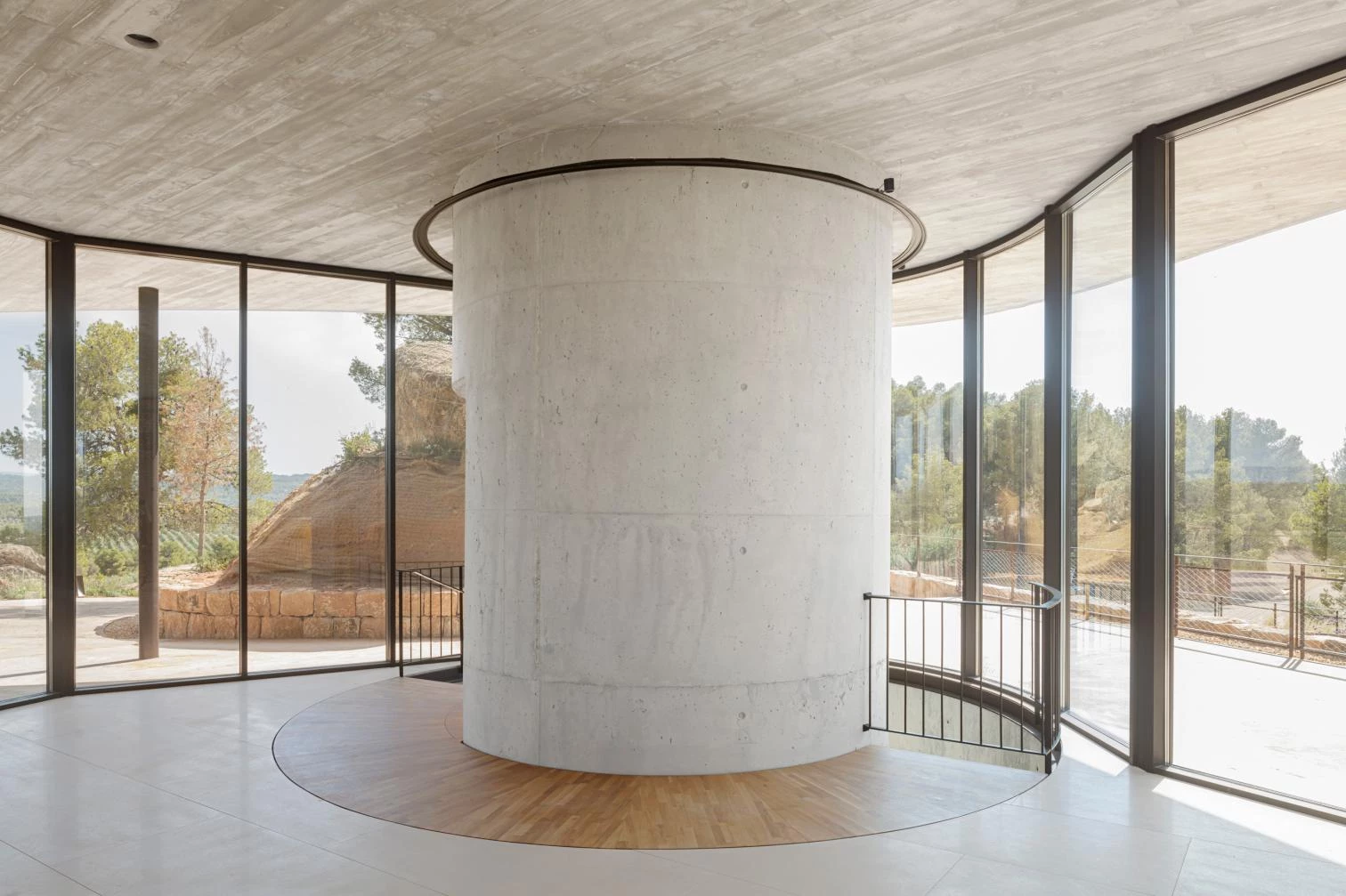 El proyecto busca la integración y el respeto al medio ambiente, aprovechando la roca excavada para la misma obra que se deja vista. La inercia térmica de la montaña ha permitido crear un ambiente estable de 18ºC en invierno y verano, garantizado unas condiciones óptimas para la producción del aceite y una reducción del consumo de sistemas activos para la refrigeración.