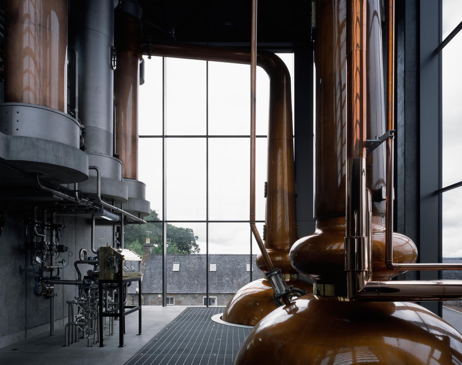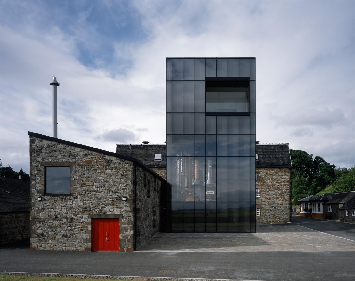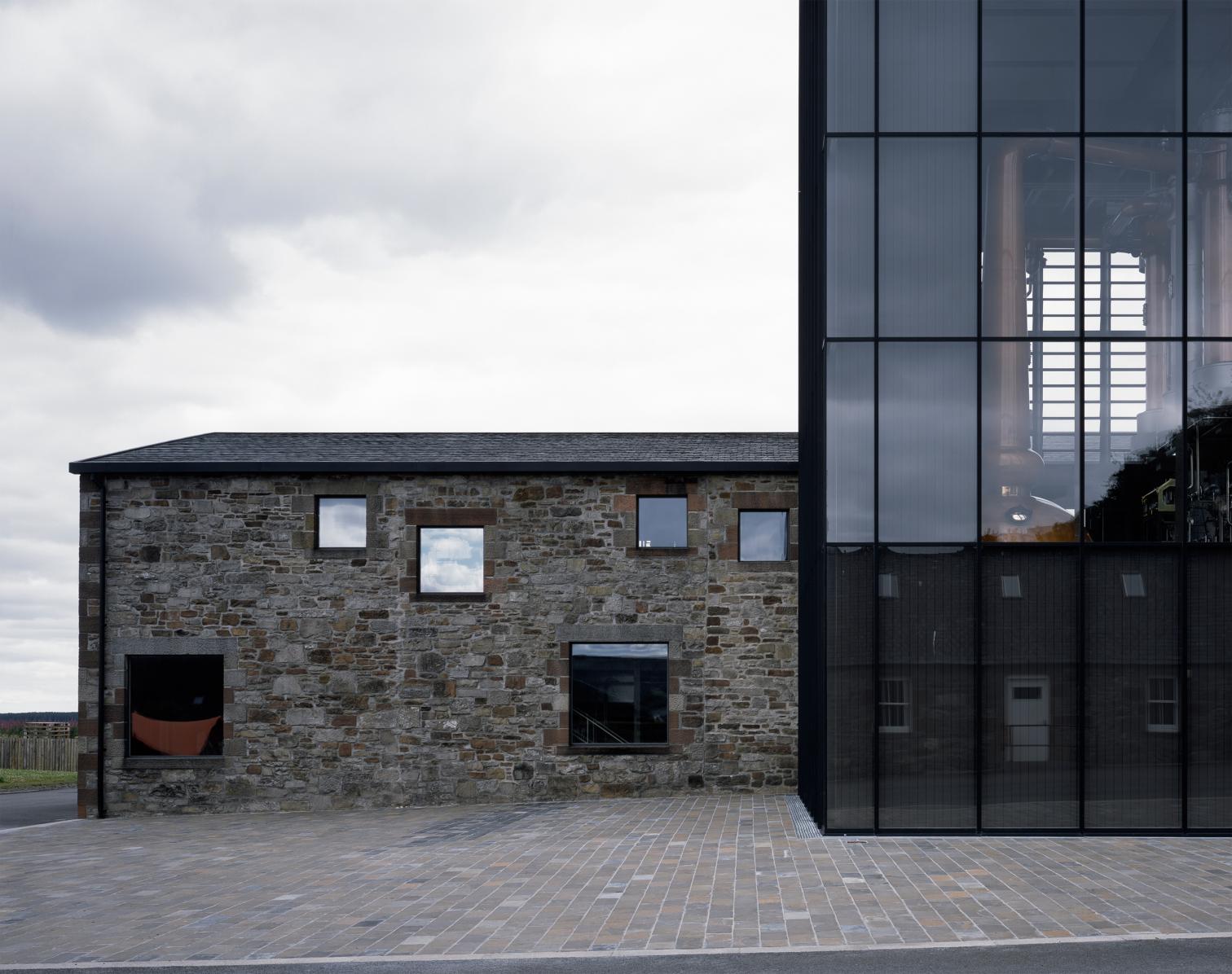 Los dos nuevos edificios industriales han transformado la imagen del lugar. Uniendo tradición y modernidad, los dos volúmenes interconectados se integran en el paisaje de la destilería de whisky fundada en 1843. El más imponente de ellos, que alcanza los 20 metros de altura, está inspirado en los antiguos faros que guiaban a los barcos en el estuario de Dornoch Firth. Esta torre vidriada alberga los dos alambiques más grandes de Escocia, además de un laboratorio de creación y degustación, ubicado en el nivel superior, que disfruta de impresionantes vistas sobre el mar del Norte. En su interior, los paneles de madera evocan las barricas donde envejece el whisky.