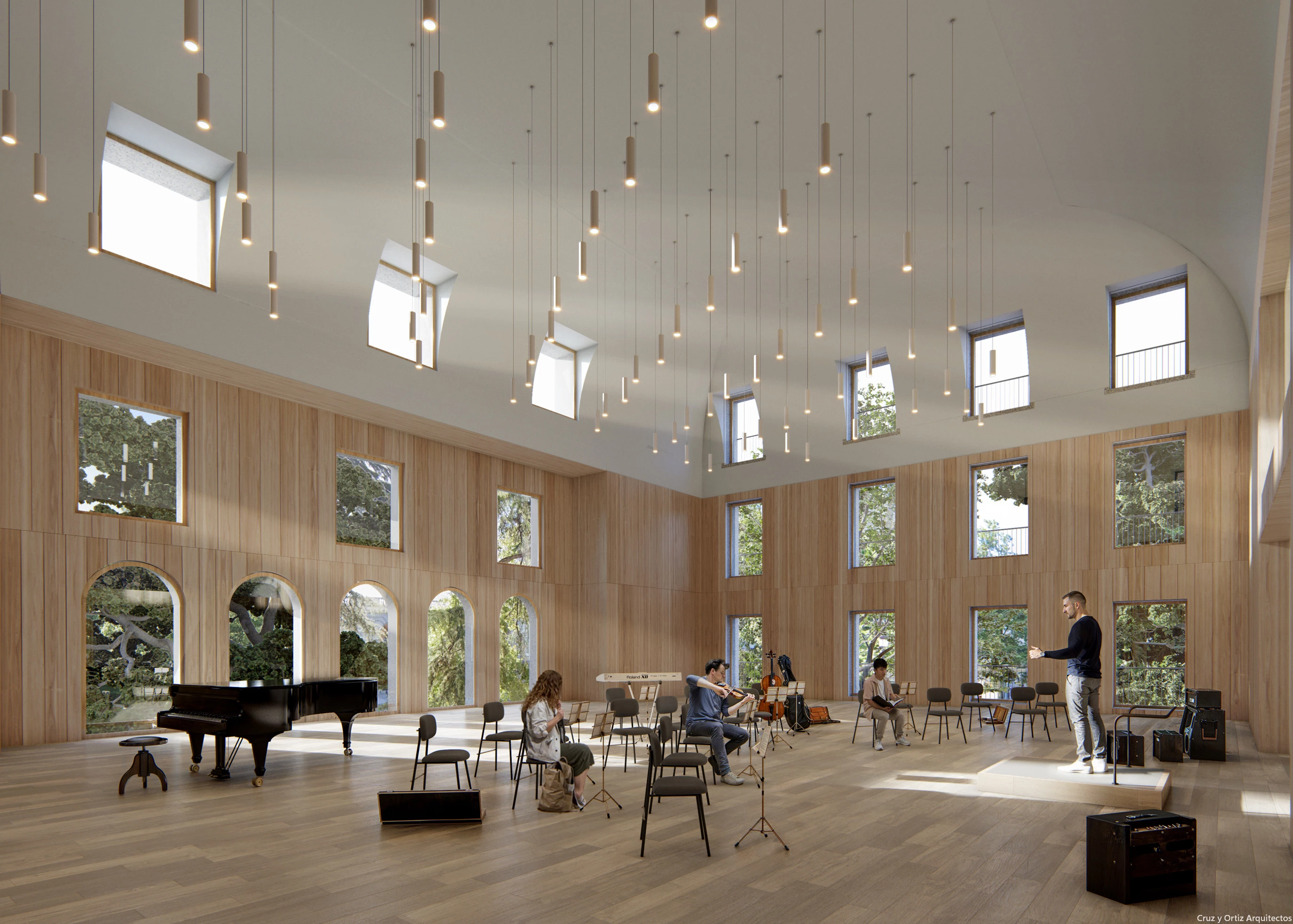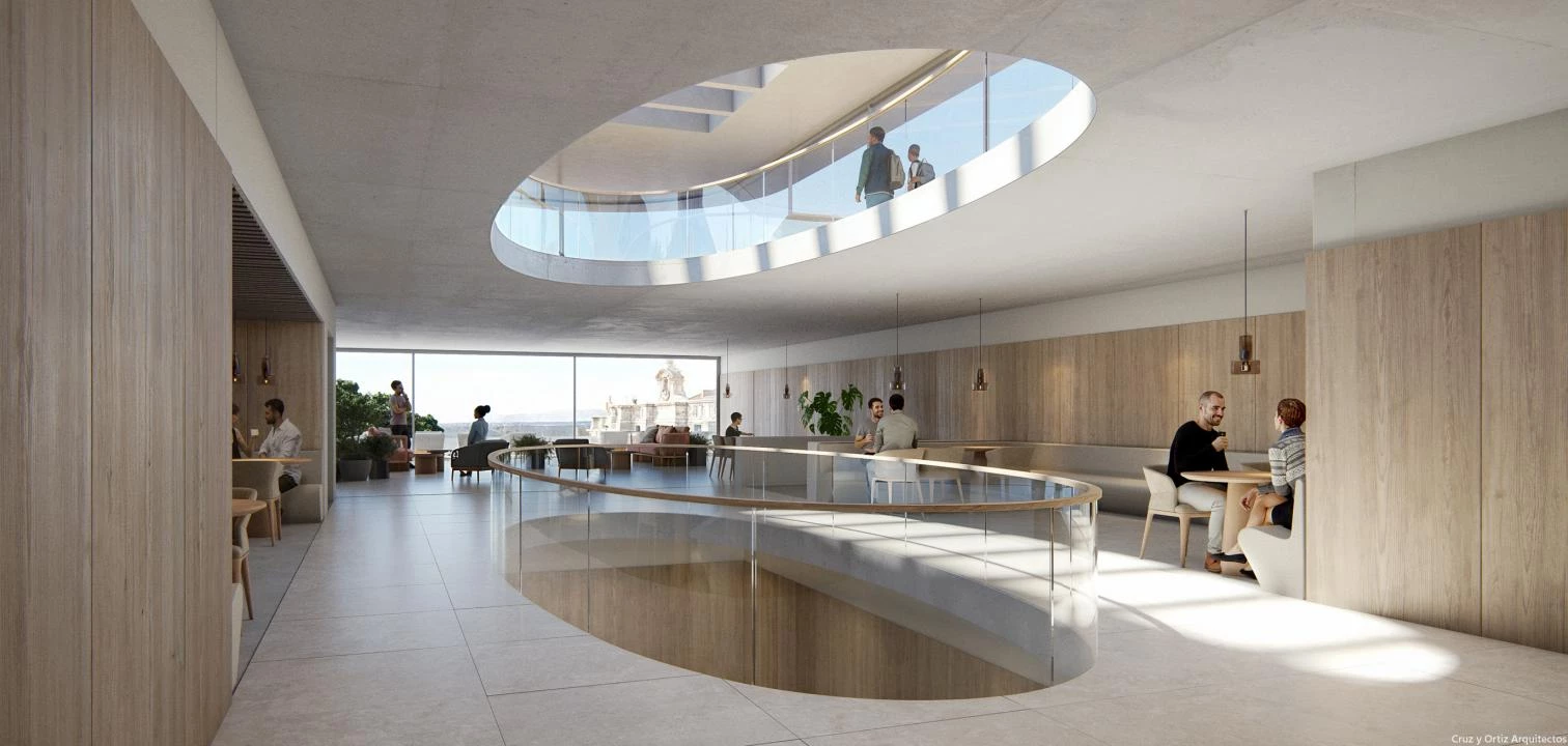 El estudio sevillano Cruz y Ortiz Arquitectos ha resultado ganador del concurso para ampliar y renovar la Escuela Superior de Música Reina Sofía, situada en el número 1 de la calle Requena de Madrid, junto a la plaza de Oriente. Con el objetivo dotar de unidad al conjunto, el proyecto incluye la integración de dos edificios adyacentes (calle Requena, 3 y 5), preserva la entrada principal y optimiza la funcionalidad de los espacios. Las intervenciones abarcan: un nuevo atrio, que proporciona un espacio abierto y luminoso; una sala de ensayos con control solar; y una cafetería para promover la interacción social y el intercambio de experiencias entre alumnos y profesores.