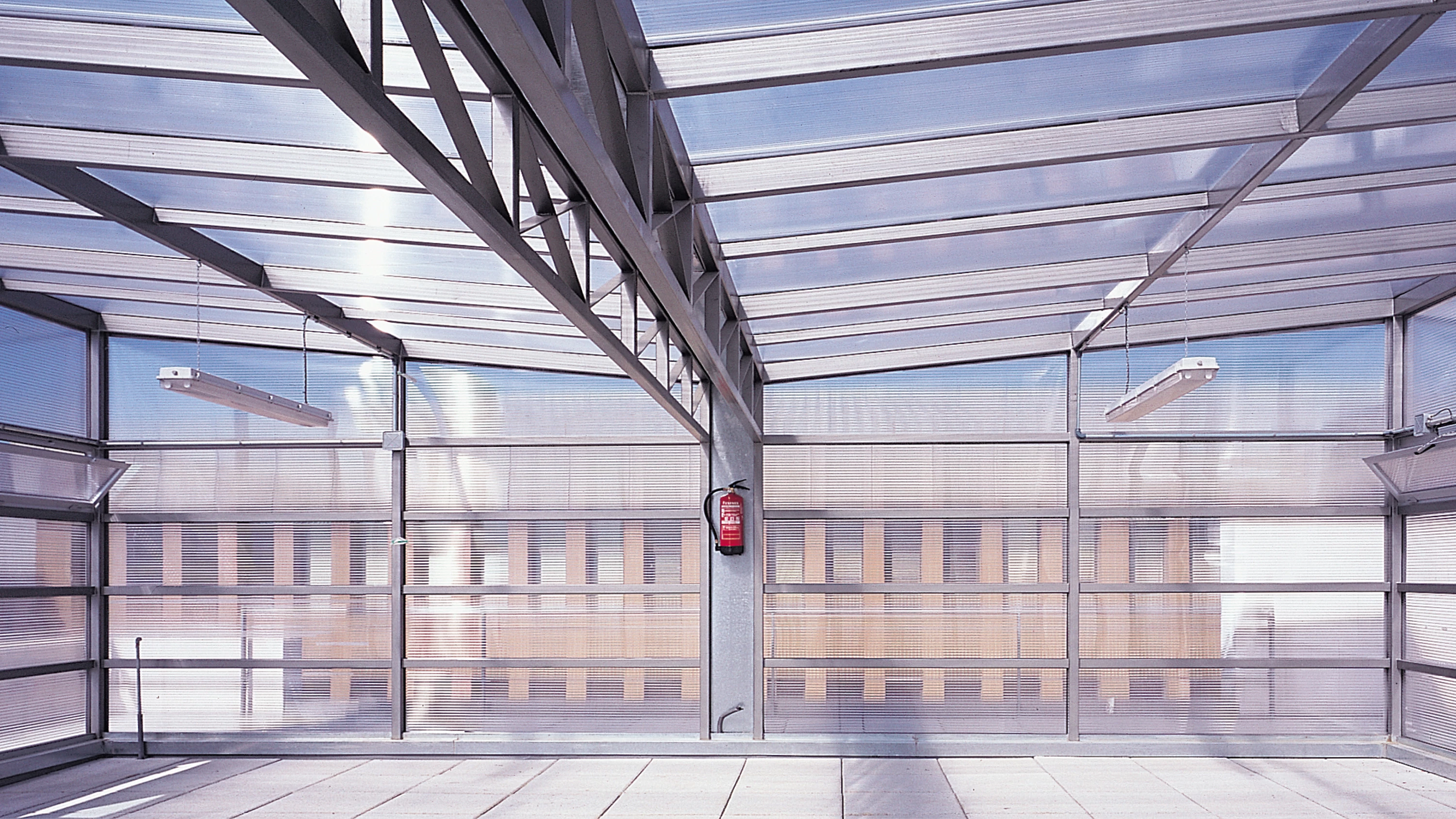 Uno de los puntos donde se evidencia la intervención es el cascarón de chapa galvanizada bajo el que se encuentran la nueva sala de lectura y un cuarto de reuniones; la bóveda se eleva hacia el norte hasta abrirse en un lucernario que inunda de luz la zona superior de la ampliación. En este caso, el empleo de una estructura metálica permite aumentar las luces hasta conseguir mayor continuidad espacial; la superficie de la entreplanta, suspendida de la cubierta, recorta sus contornos conformando rincones propicios para el estudio. Los acabados de iroko y los cielos rasos de lamas blancas favorecen una atmósfera cálida y luminosa. En el exterior, unos cerramientos de piedra caliza recortan y controlan las vistas desde la biblioteca, ocultan las prácticas de botánica sobre la cubierta ajardinada y dejan entrever la construcción ligera del invernadero...[+]