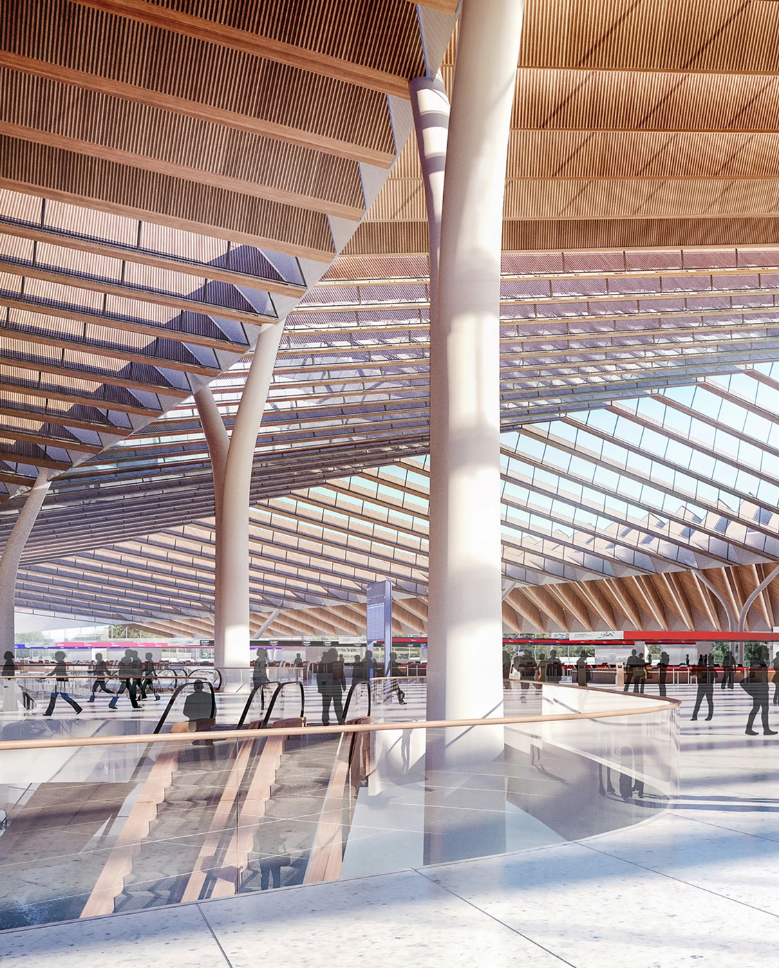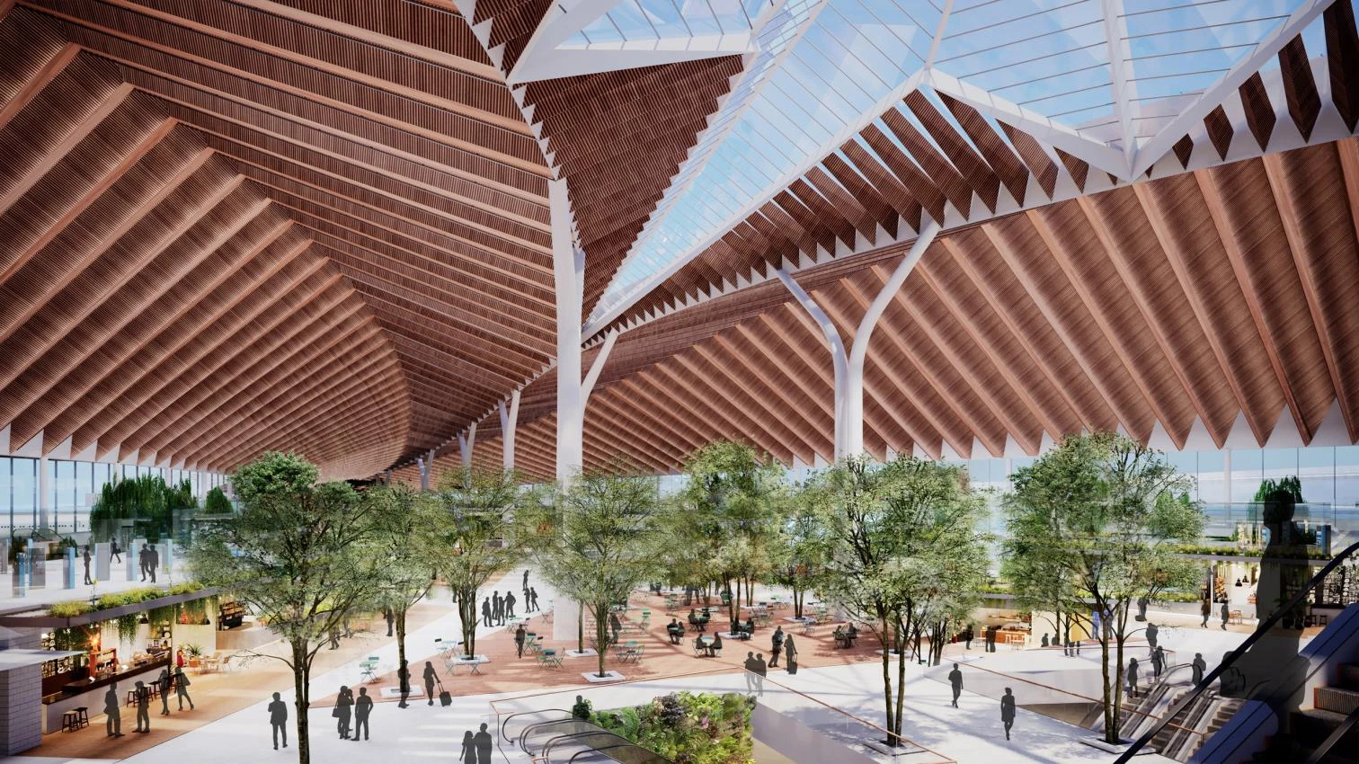 El equipo Studio ORD, liderado por Jeanne Gang (Studio Gang), junto a las firmas Solomon Cordwell Buenz (SCB), Corgan, Milhouse Engineering and Construction y STL Architects, ha resultado ganador del concurso convocado para reemplazar la Terminal Global O’Hare o Terminal 2 de Chicago, que había quedado obsoleta. Imponiéndose a las de los otros cuatro finalistas, entre los que se encontraban Santiago Calatrava, Foster + Partners y SOM (Skidmore, Owings & Merrill), la propuesta vencedora combina un ritmo de vigas de acero revestidas en madera, que tamizan la entrada de luz natural, con columnas en forma de Y, separadas entre sí más de 30 metros. Recibe a los pasajeros un tragaluz de seis puntas, en referencia a la bandera de Chicago.