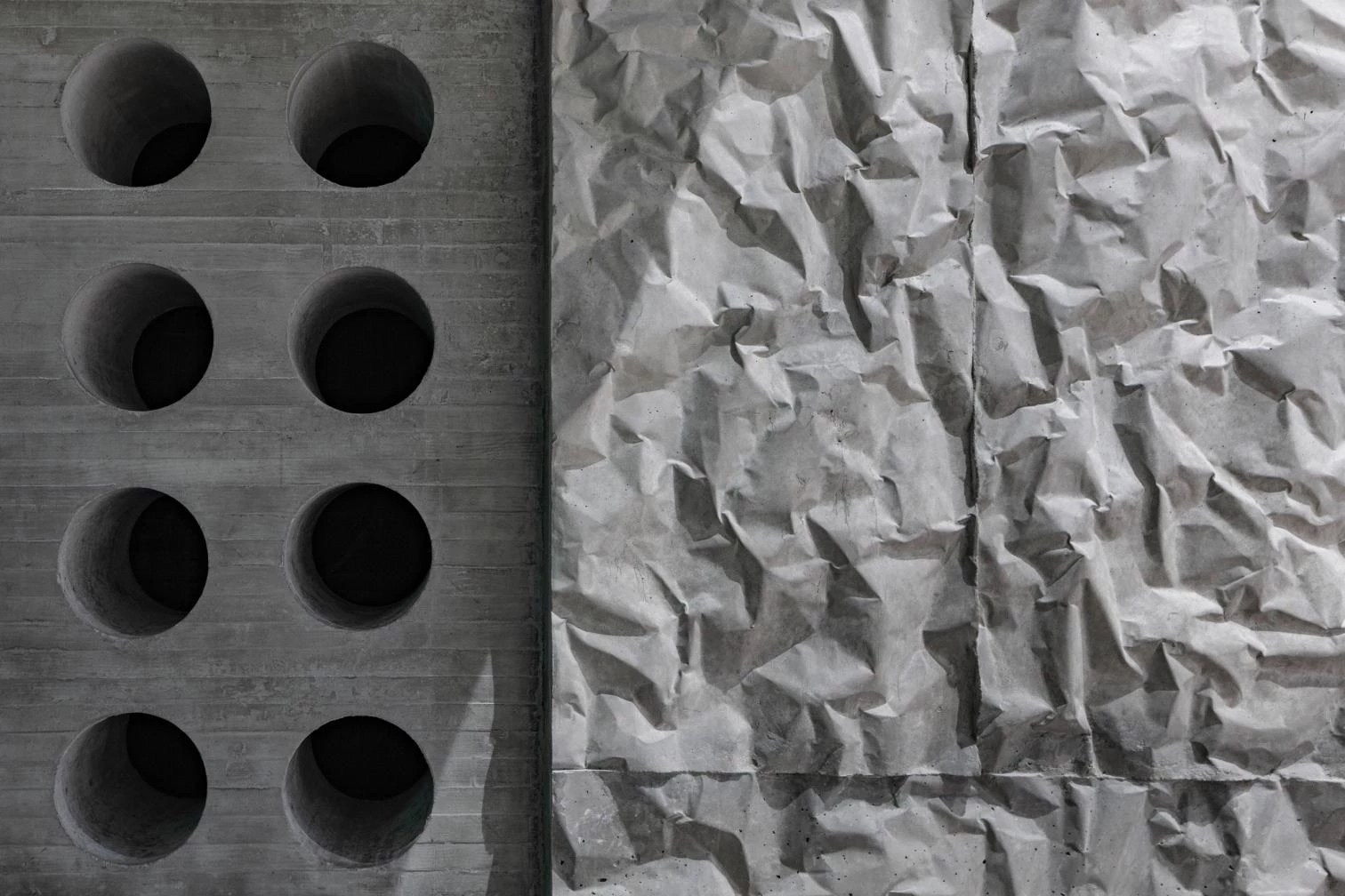 Para el interior de las luminosas salas, el estudio desarrolló un novedoso sistema de encofrado que proporciona directamente a los muros estructurales de hormigón un acabado rugoso de excelentes propiedades acústicas.