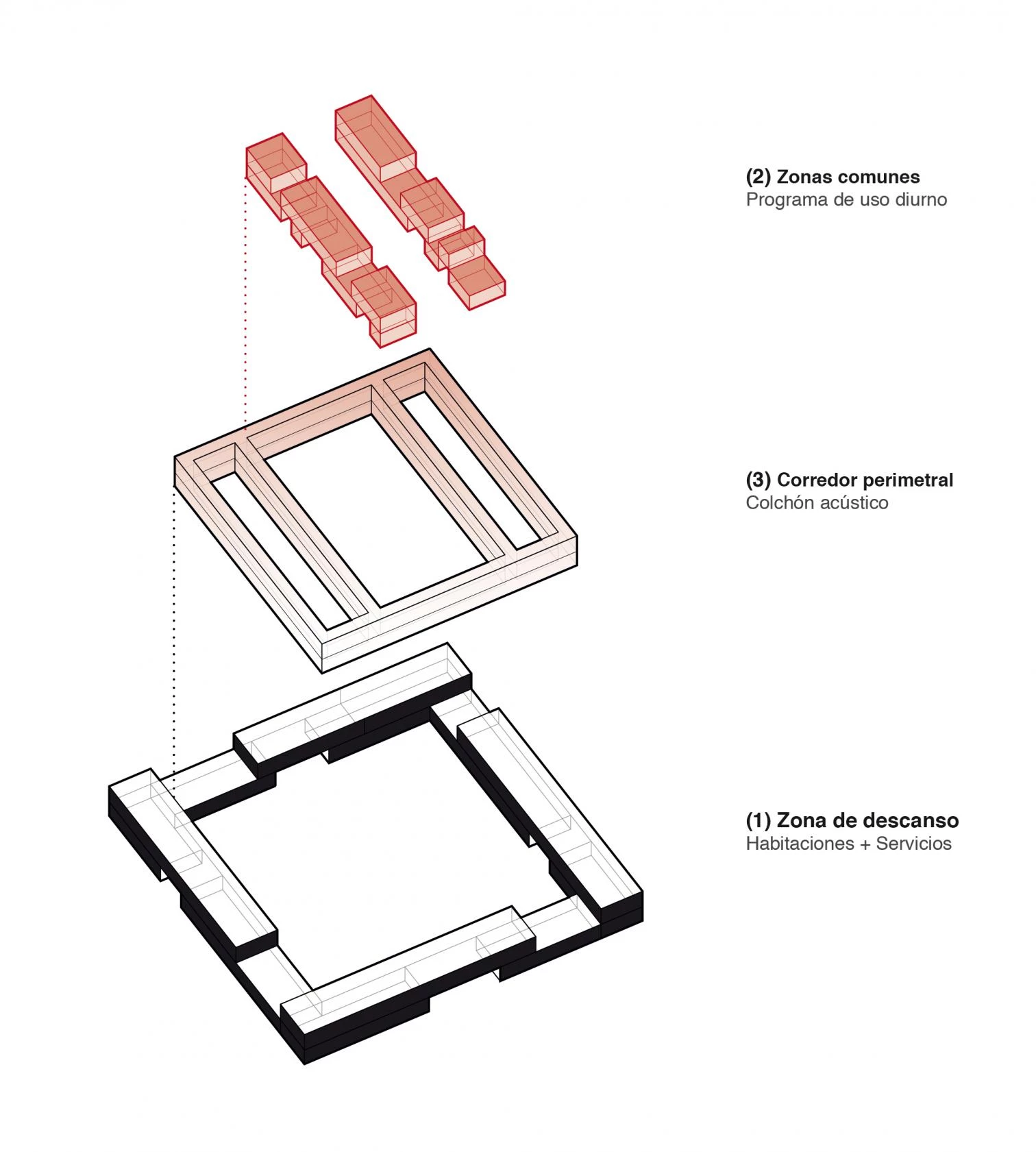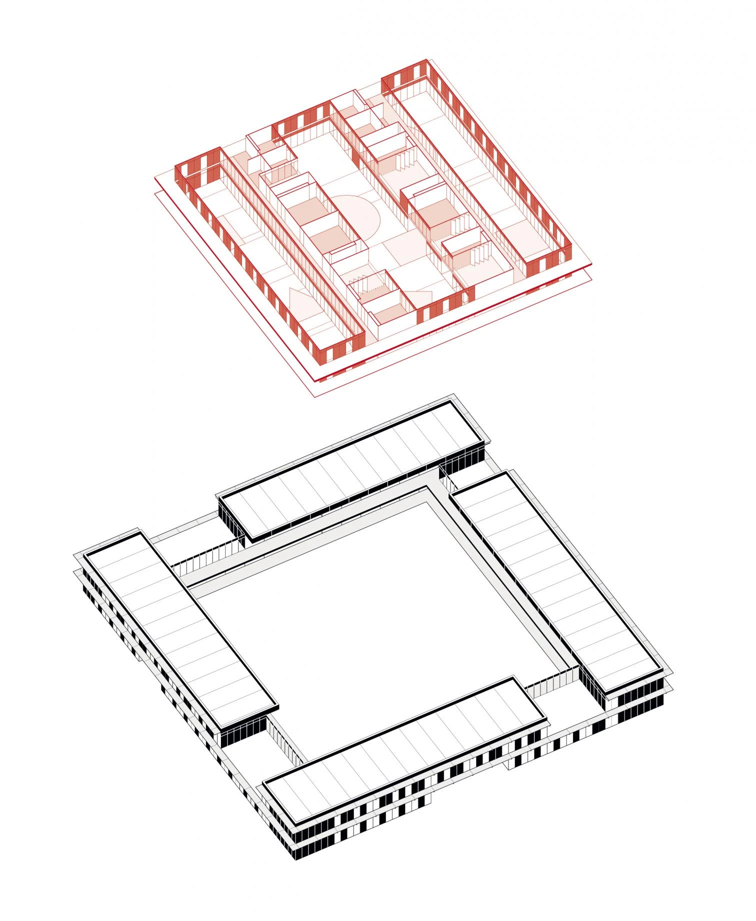 La propuesta presentada bajo el lema ‘Lagar’ por el estudio madrileño DIIR —fundado por Ricardo Fernández, David Meana, Ignacio Navarro e Iñigo Palazón— ha recibido el primer premio, dotado con 10.000 euros, en el concurso de ideas público y abierto, convocado por la Consejería de Sanidad y Servicios Sociales de la Junta de Extremadura, para ampliar el centro de salud mental de Plasencia, ubicado en la avenida Martín Palomino. Seleccionado entre los 42 proyectos presentados, el diseño presenta una ordenación perimetral de las habitaciones que se abren al exterior y donde cada uno de los frentes dialoga con zonas verdes. Una galería amplia e iluminada recoge las circulaciones del complejo y funciona también como colchón acústico. La composición incluye dos volúmenes transversales para las zonas comunes, generando en su colocación tres patios de dimensiones similares.