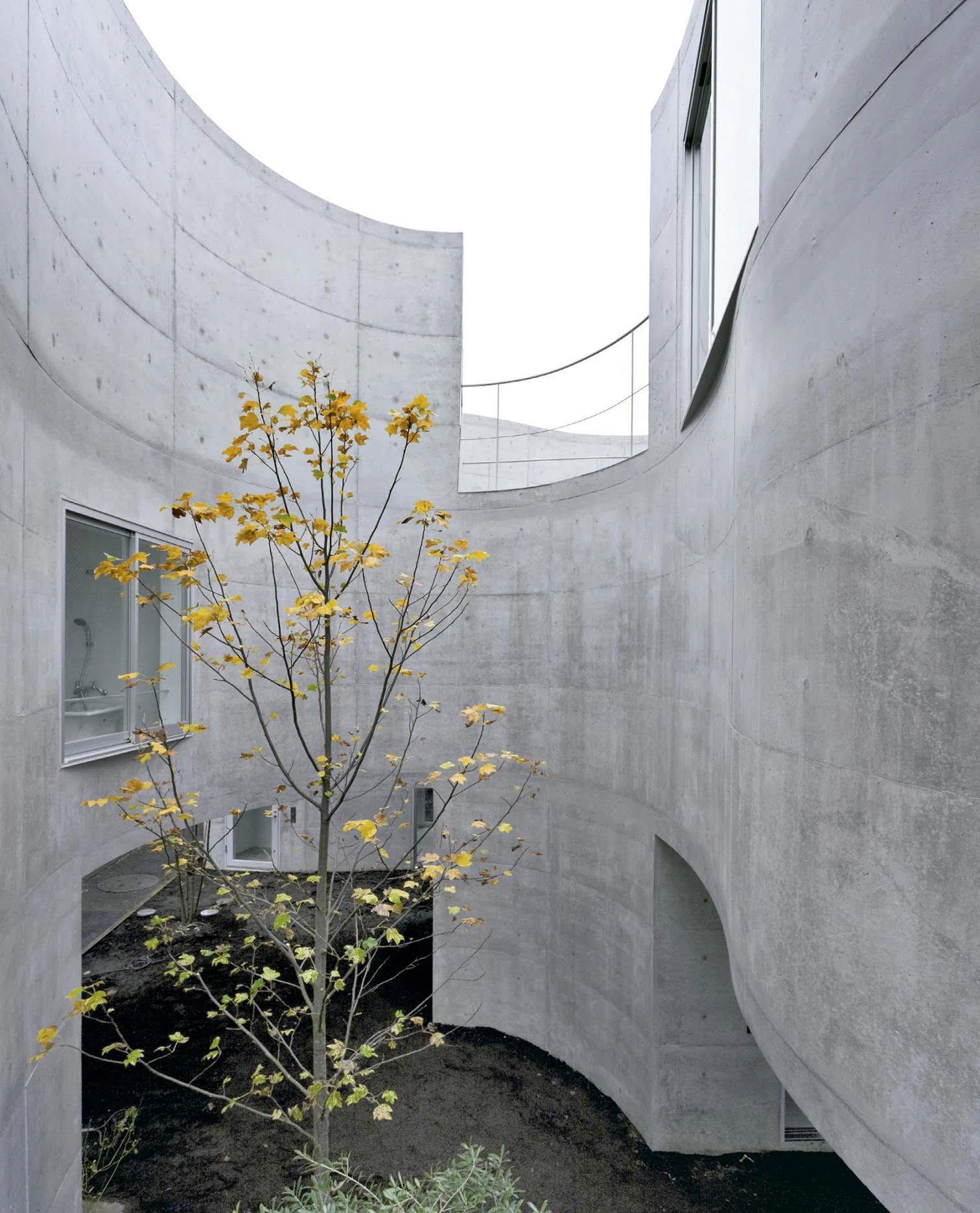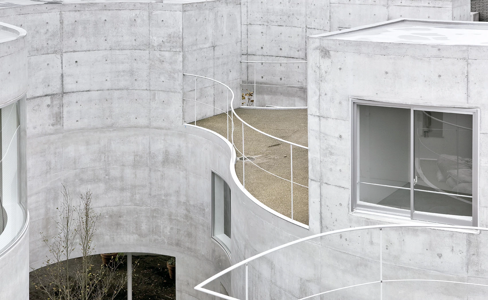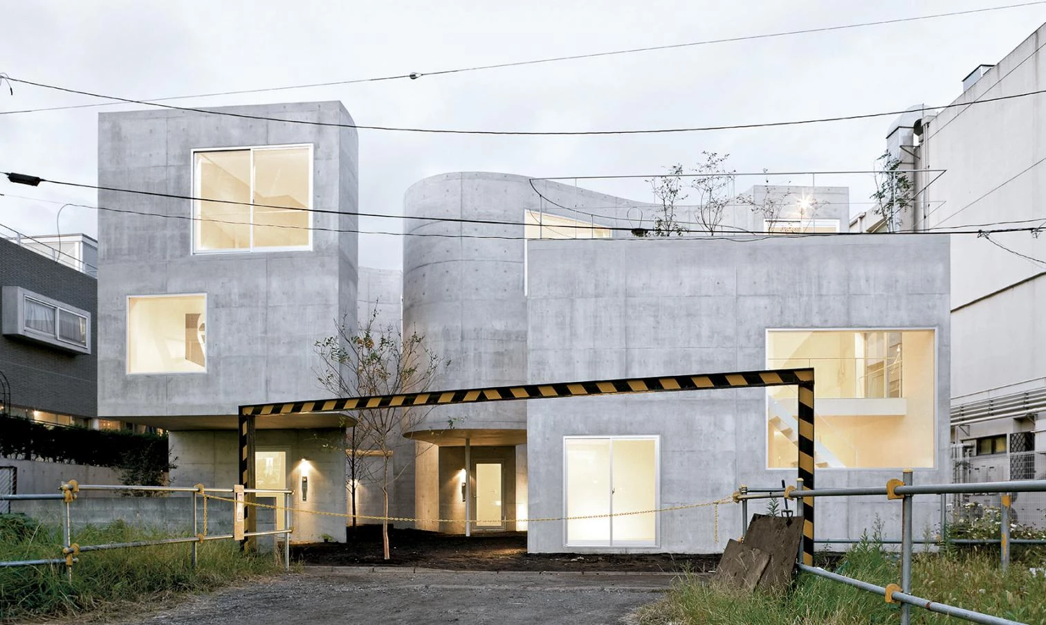 En la zona norte de Yokohama se encuentra este singular bloque de viviendas, inserto en una trama urbana ortogonal. Adaptando su perímetro al solar rectangular de 458 metros cuadrados, el edificio rompe el esquema volumétrico común generando vacíos interiores que serpentean con fluidez por el solar y en cada una de las tres alturas del edificio. Esto permite la apertura de espacios comunitarios exteriores, patios privados, jardines, terrazas y cañones de luz natural, que funcionan como claros en el interior de la masa construida de hormigón y generan atmósferas intermedias para el disfrute de los vecinos, fomentando así la relación entre ellos y la disolución de los límites entre las nueve viviendas que alberga la construcción.