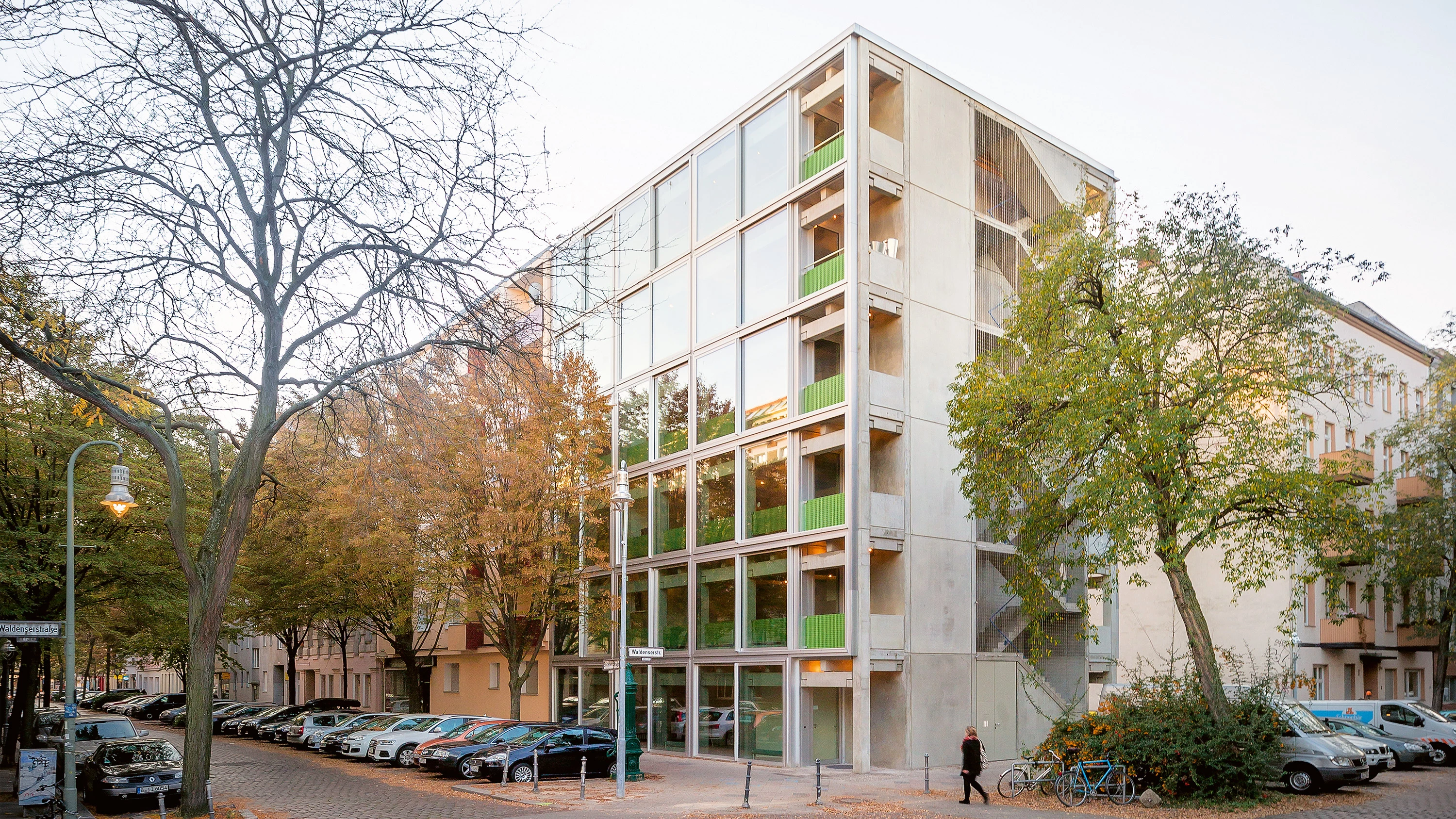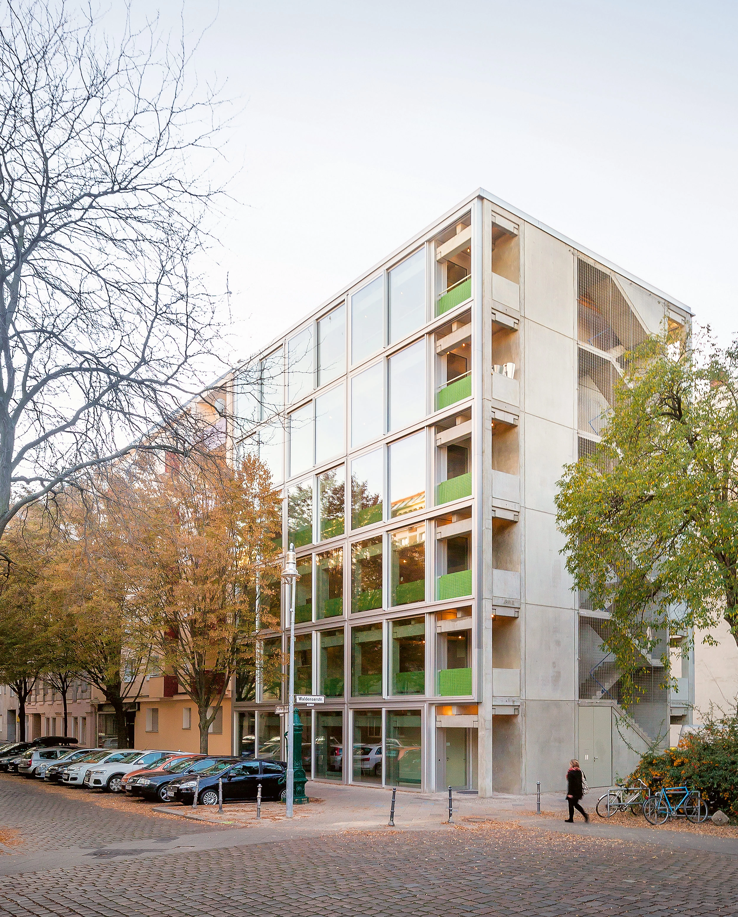 Situado en Berlín, el inmueble se ha erigido con un riguroso catálogo de piezas de hormigón prefabricado típicas de la construcción de almacenes y naves industriales.