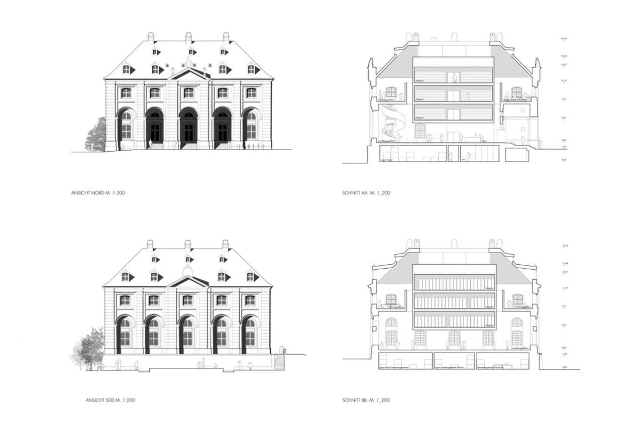 Desde su construcción en 1732, el Blockhaus, situado en la ribera del río Elba a su paso por Dresde, se ha convertido en uno de los edificios históricos más significativos de la ciudad. En el concurso resuelto en 2018, el proyecto de Fuensanta Nieto y Enrique Sobejano fue elegido para responder a la voluntad institucional de abrir el legado de Marzona al público. Además de la propia colección —que incluye diferentes piezas de las corrientes experimentales del siglo XX—, la propuesta del estudio madrileño representa el diálogo entre memoria y vanguardia. Tras los rotundos muros de piedra se esconde la nueva pieza central del archivo: un gran volumen cúbico de hormigón suspendido en el aire.