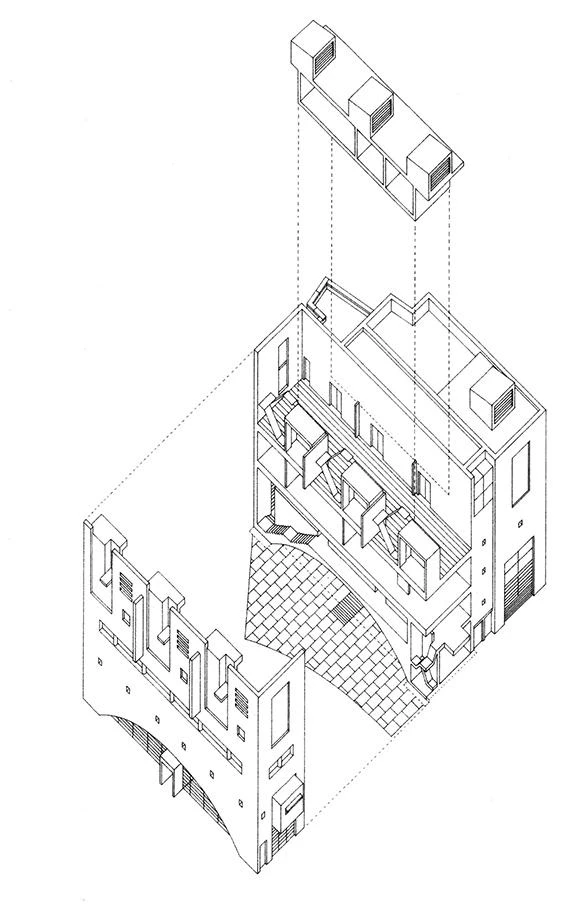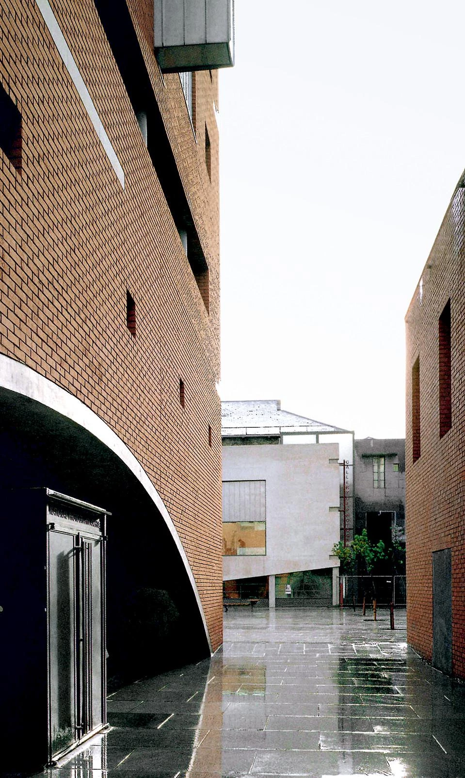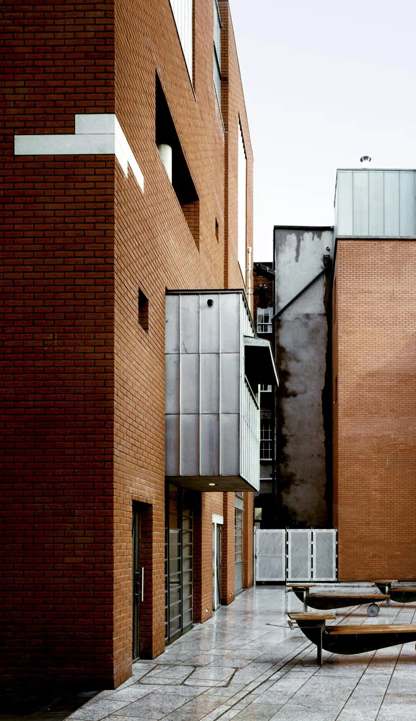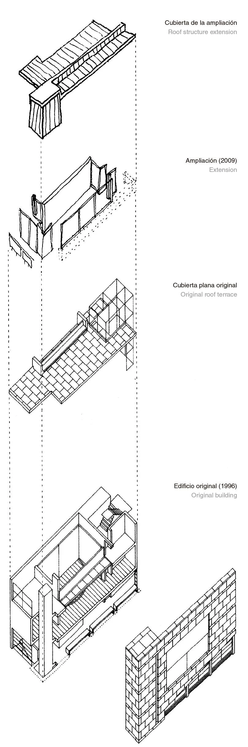 El archivo fotográfico, destinado a albergar 250.000 negativos sensibles a la luz, exigía que el edificio fuera en su mayor parte opaco. La fachada, por tanto, no está sujeta al ritmo habitual de las ventanas y se moldea con libertad combinando superficies de ladrillo con fragmentos metálicos y pequeños huecos cuadrados. En la galería fotográfica, sin embargo, destaca el ventanal central que relaciona visualmente las salas de exposición y el espacio público. Un sistema de paneles pivotantes duplica la superficie disponible para mostrar las obras y permite adaptar el espacio a los diferentes requerimientos del programa. En las noches de verano, se proyectan películas e imágenes desde el edificio del archivo hasta la fachada de la galería, de manera que el espacio público intermedio se convierte en la platea de un cine al aire libre.