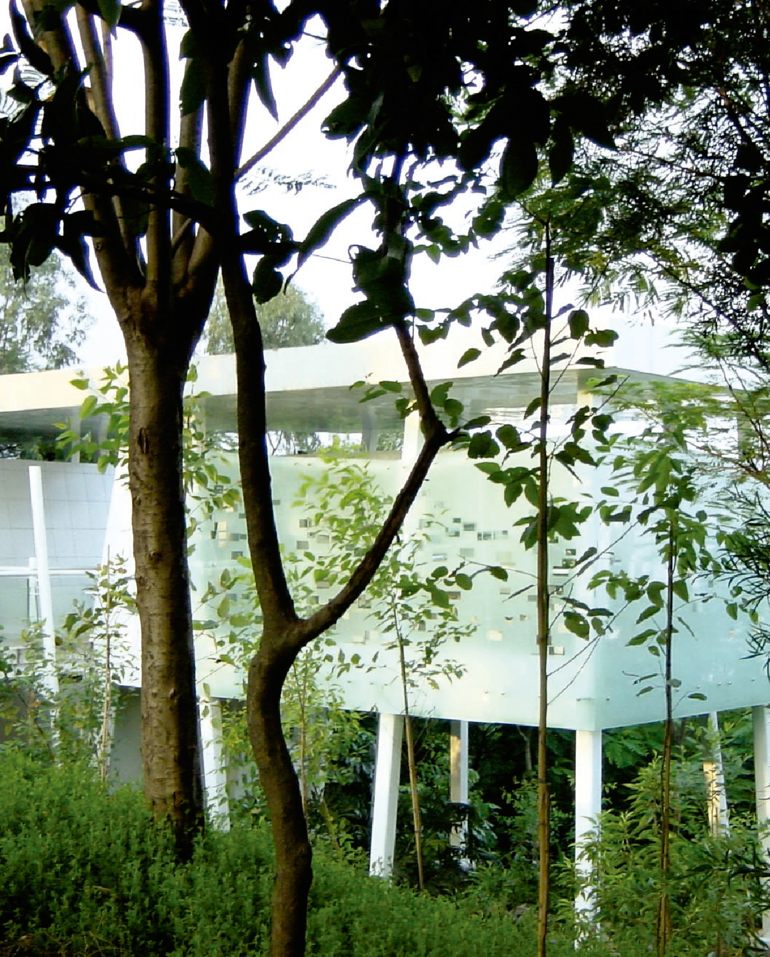 La ciudad de Shenzhen, situada en la meridional provincia de Guangdong a tan sólo treinta y cinco kilómetros de Hong Kong, es una de las más calurosas de China. La confluencia de una gran cantidad de ríos que, procedentes del continente, se dirigen hacia el Pacífico—a la que se debe el nombre de la ciudad—, hace posible la existencia de una vegetación exuberante. En uno de sus frondosos bosques tropicales, el que cubre la ladera del monte Loto, se ha construido un pequeño edificio de aseos públicos para el uso de los visitantes de la plaza del Monumento a Deng Xiaoping, situada en la cumbre de dicha colina. Para producir el menor impacto sobre el entorno, el edificio flota sobre el suelo de la ladera, apoyándose en una serie de soportes metálicos inclinados que lo sumergen en el bosque circundante.