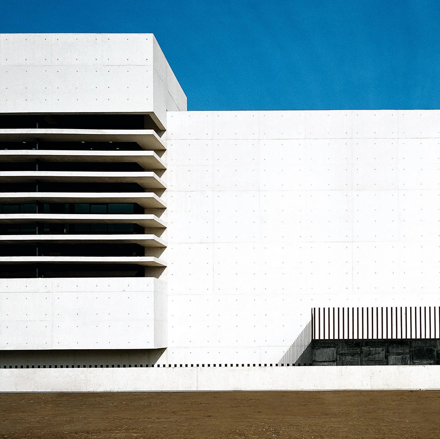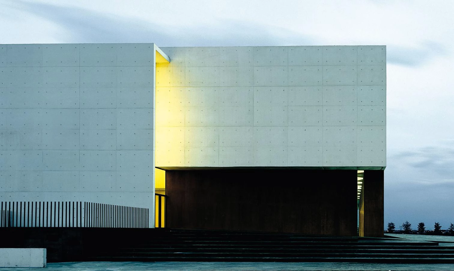El edificio se resuelve con hormigón blanco, de manera que los amplios paños que quedan vistos multiplican la luz natural que llega al interior. La madera, el vidrio, el acero y la cuarcita gris, ésta última en el pavimento que llega desde la plaza, terminan de dar forma y textura al edificio.