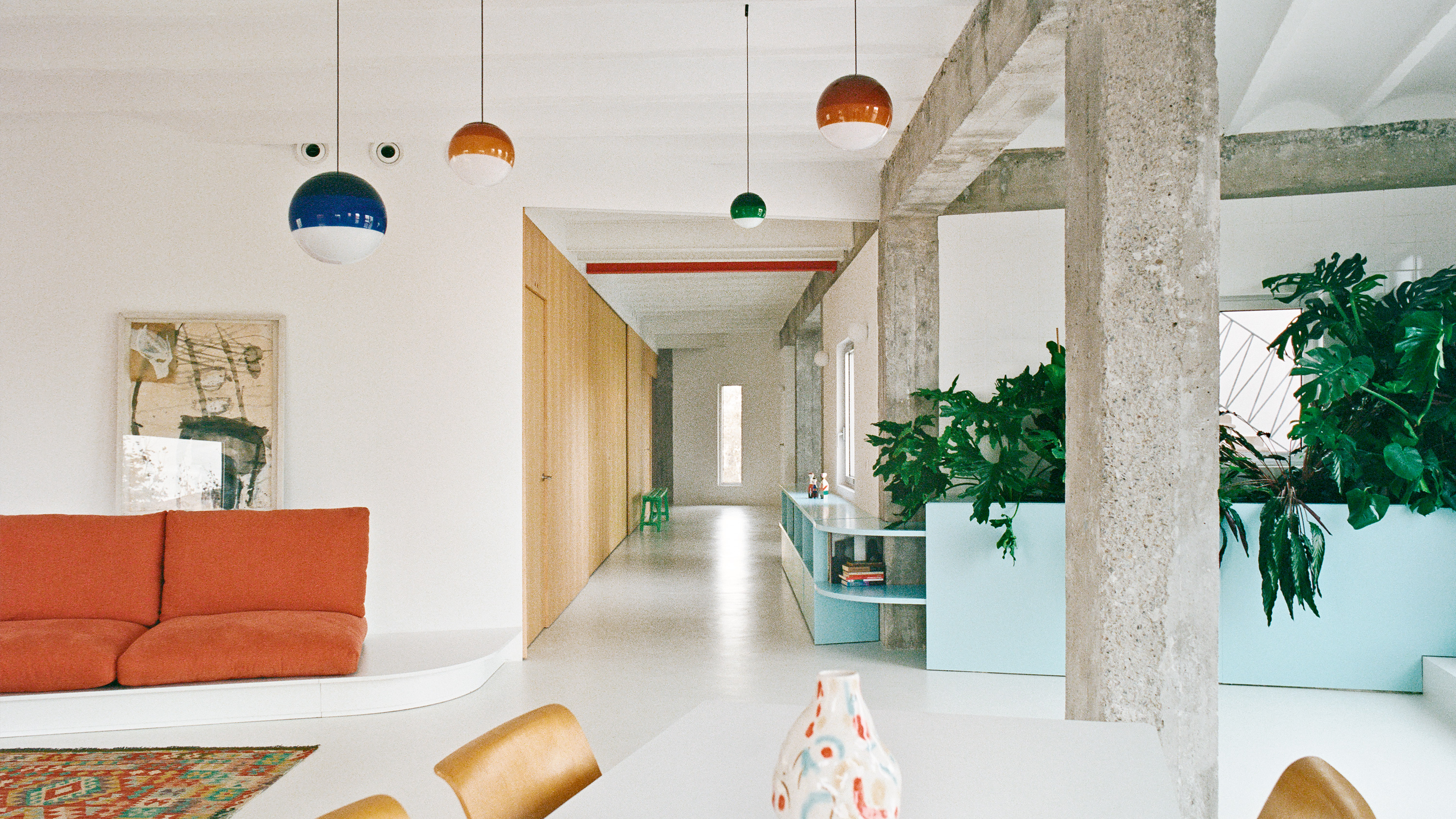 Dormitorios y baños se agrupan en una banda compacta para asegurar un espacio fluido que enlaza la cocina y el salón, donde la distribución se establece con piezas de mobiliario a medida que se repliegan al contorno de la vivienda...[+]