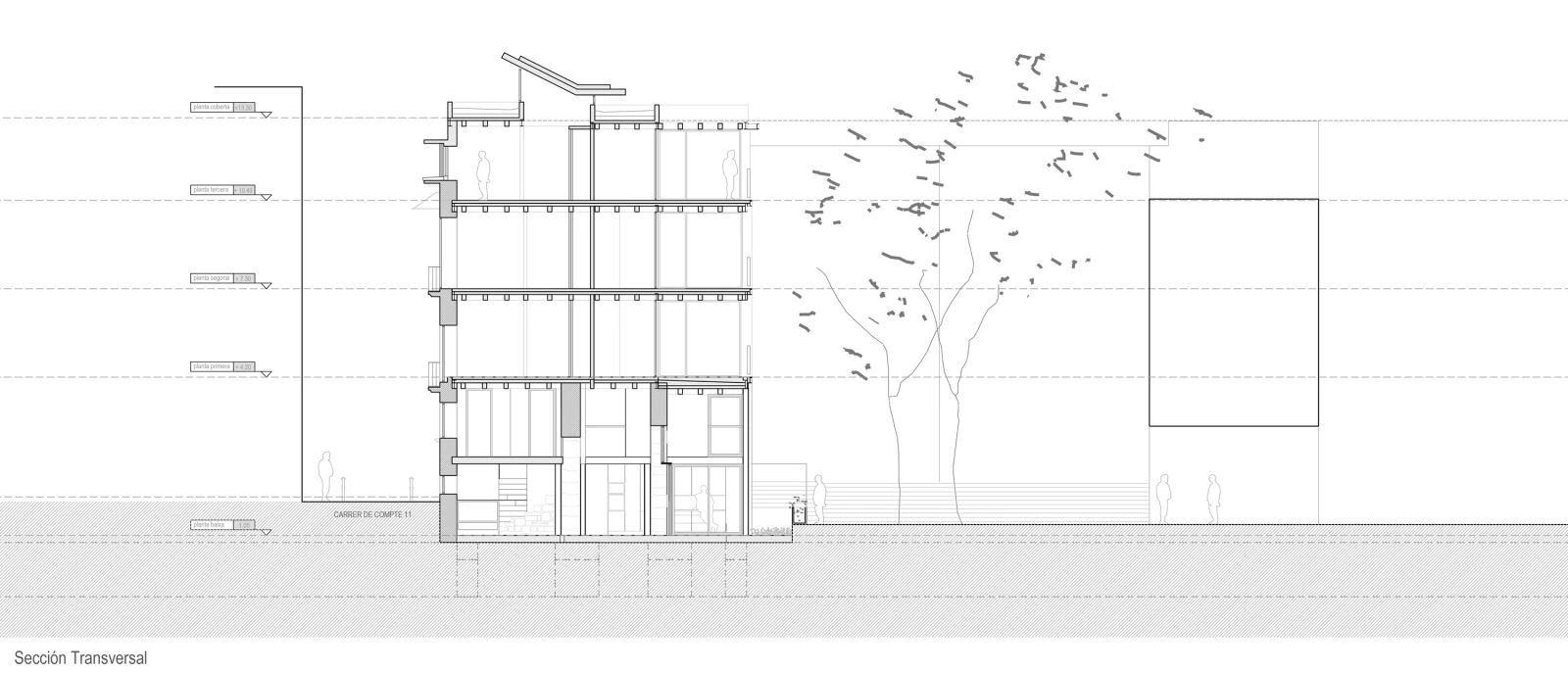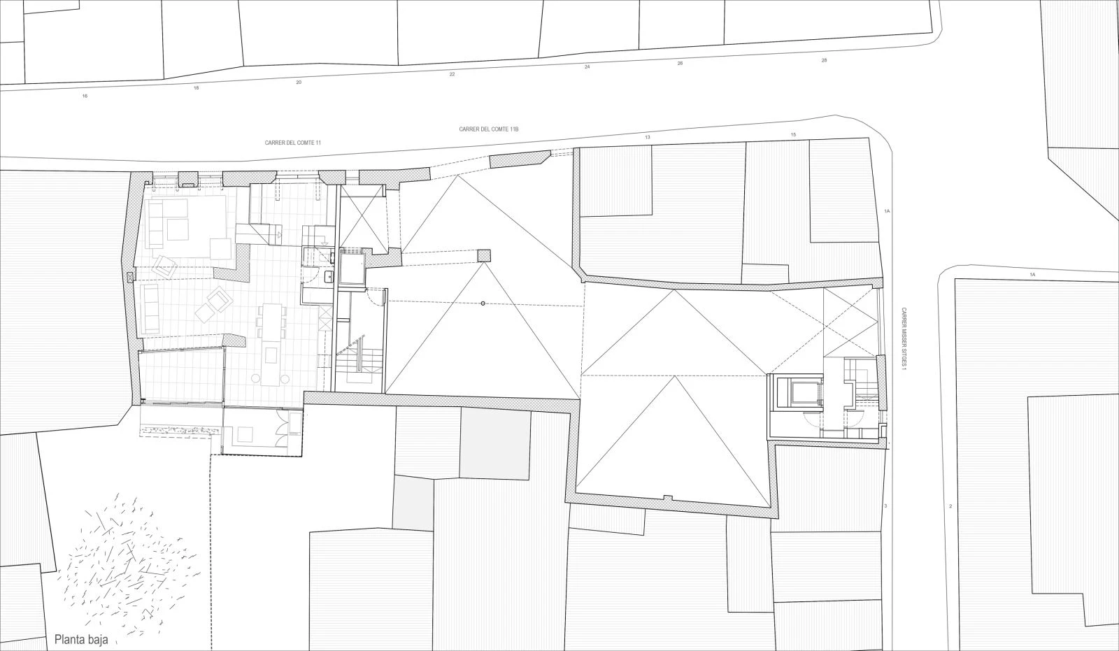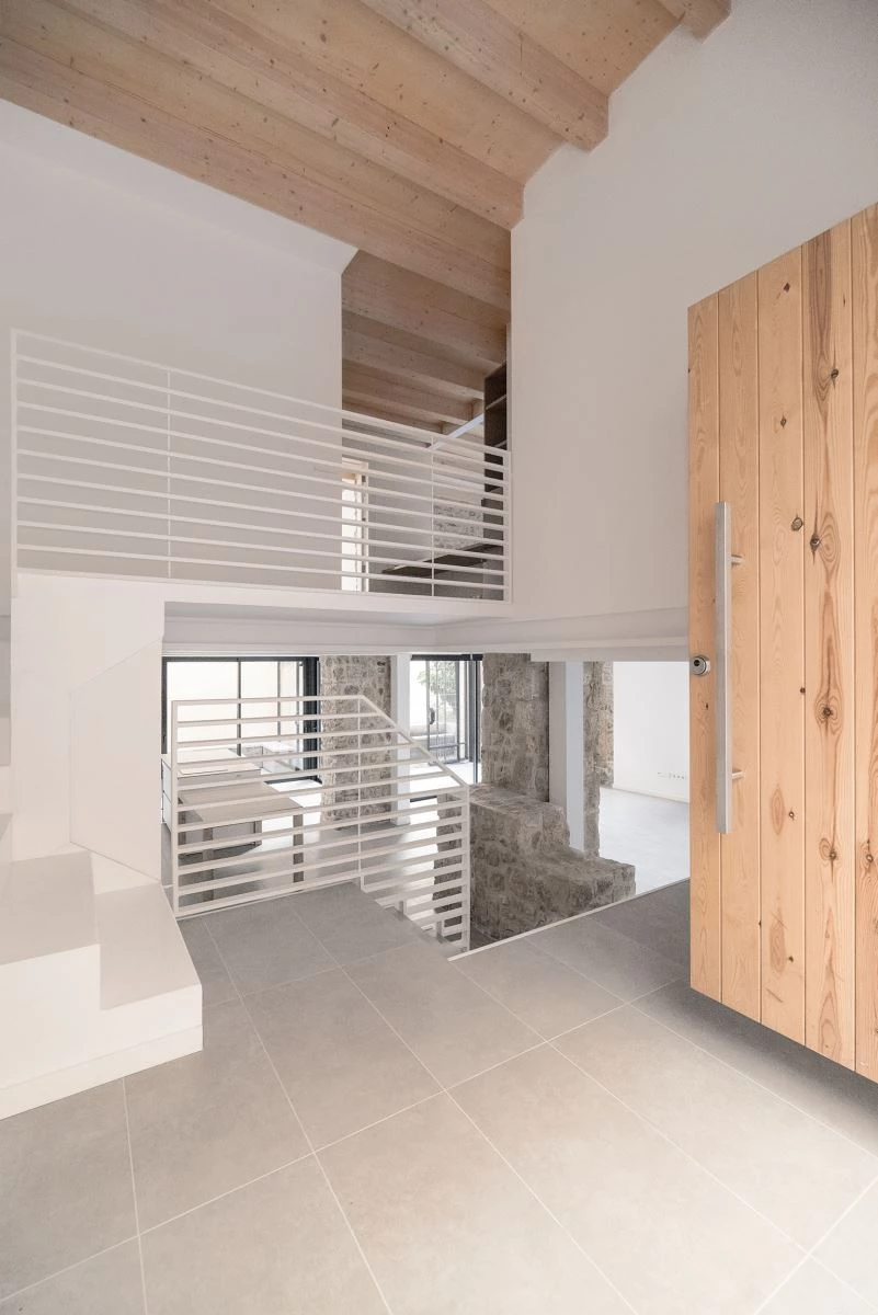 Con una superficie construida de 1.535 metros cuadrados, el edificio se vuelca hacia el interior con patios que optimizan las orientaciones y la privacidad necesaria para disfrutar de los amplios espacios exteriores de las viviendas. Combinando madera, acero y la piedra desnuda de los restos arqueológicos, la estructura vista define las viviendas diseñadas a medida de las necesidades de sus usuarios finales, con ventilación cruzada y criterios de ahorro energético.