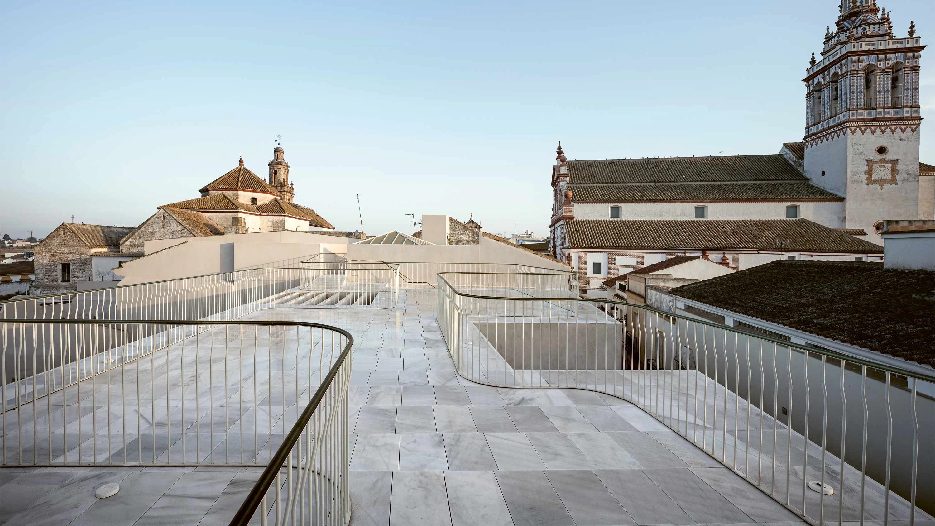 El carácter público y abierto del conjunto se refuerza con la propuesta de convertir las cubiertas en espacios visitables, conectando con la tradición de la villa de las torres-campanarios y miradores elevados en numerosos puntos para preservar la relación del caserío con el paisaje agrícola.