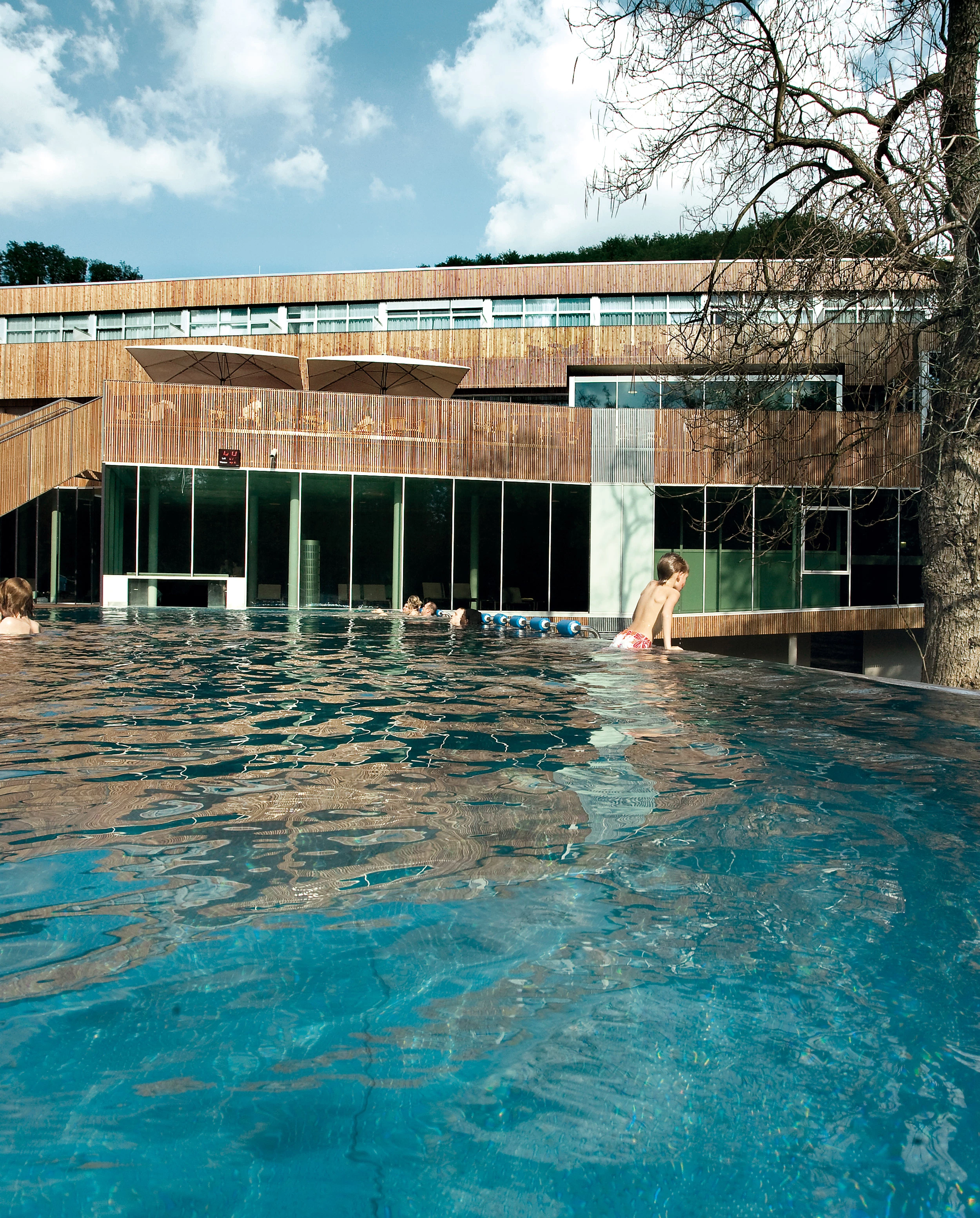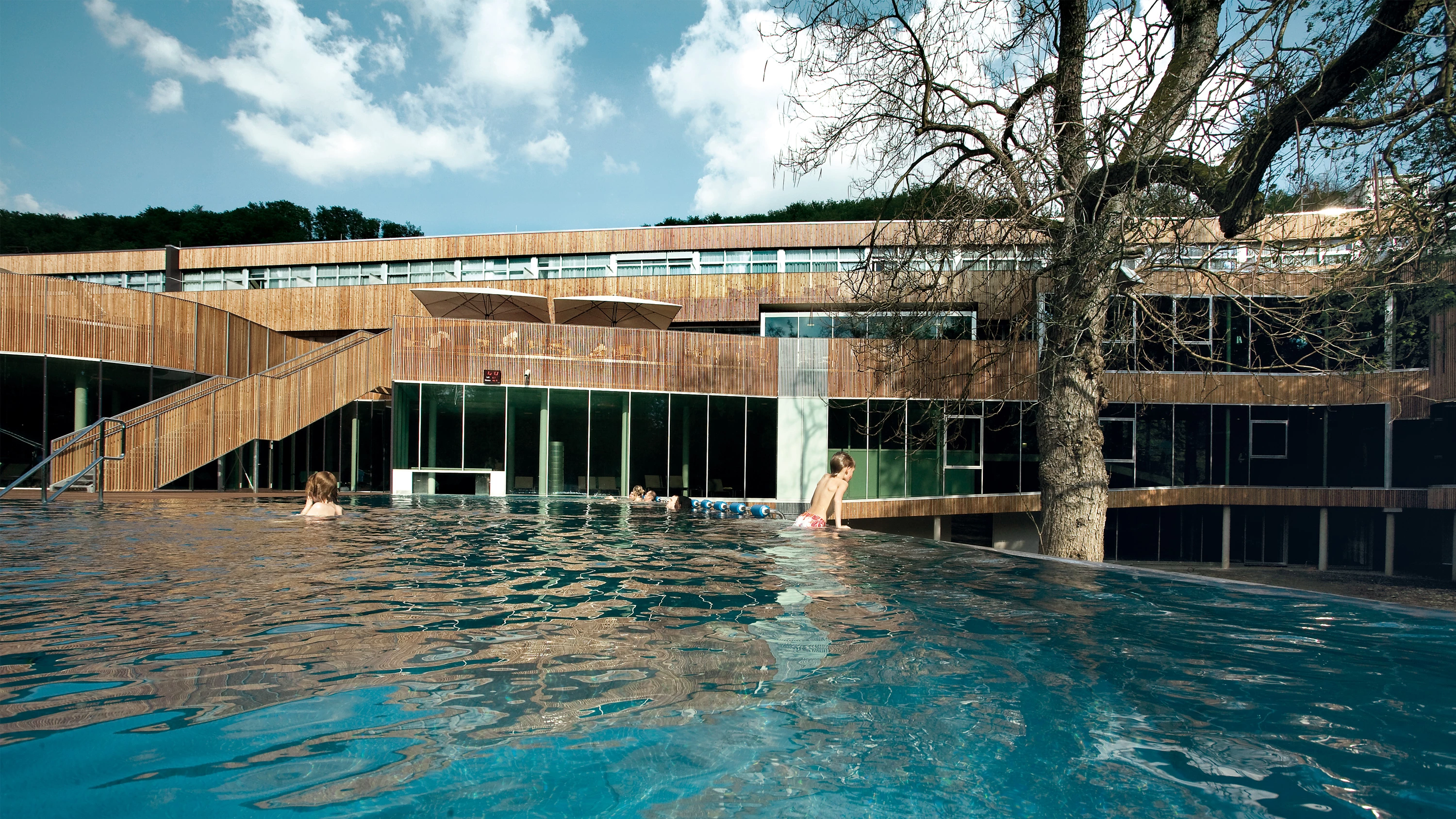 La región de Estiria, al sureste de Austria, es conocida por su paisaje boscoso y ameno, y cuenta con una tradición de establecimientos termales que se remonta al siglo XIX. En la localidad de Bad Gleichenberg, a unos 10 kilómetros de la frontera con Estonia y a unos 20 de la de Hungría, se encuentra este conjunto terapéutico y medicinal, que cuenta además con un hotel de lujo de 108 habitaciones.