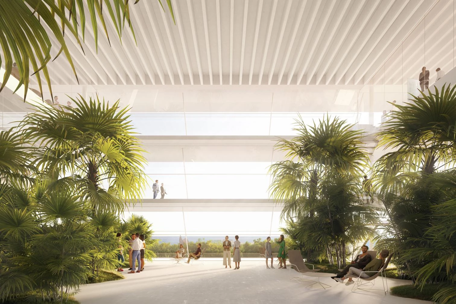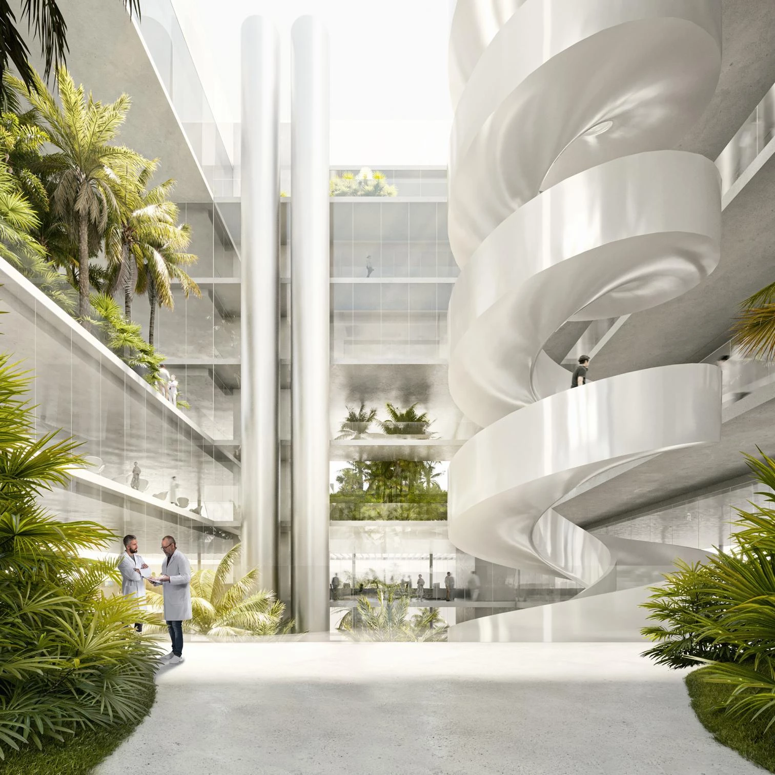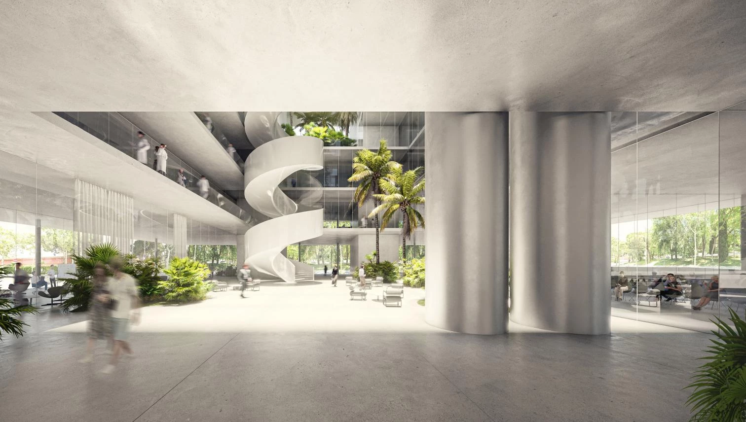 Barozzi VeigaLa iniciativa Barcelona Ciudadella del Coneixement tiene como objetivo transformar el entorno del Parque de la Ciutadella en un polo para la innovación en biomedicina, biodiversidad y bienestar. El BIST, que será la primera pieza del desarrollo, combina una estructura precisa que organiza espacios de investigación, oficinas y laboratorios de forma sistemática y flexible con una distribución abierta que libera la planta baja y permite incorporar los jardines circundantes a la vida del campus. Ligero, compacto y sencillo, el edificio está formado por la superposición de planos horizontales que se extienden más allá de la fachada acristalada para protegerla de la radiación solar. El programa se distribuye en ocho plantas dispuestas en torno a un gran atrio central conectado con una serie de logias o patios elevados. Además de ofrecer oportunidades de intercambio e interacción entre los usuarios, estos espacios intermedios actúan como dispositivos térmicos que regulan el clima interior de forma pasiva (favoreciendo la ventilación natural) y permiten una continuidad visual entre los diferentes niveles y el paisaje urbano. Además, con el objetivo de lograr un impacto cero se implementan estrategias para minimizar la huella de carbono y el tiempo de construcción con el empleo de elementos prefabricados.
