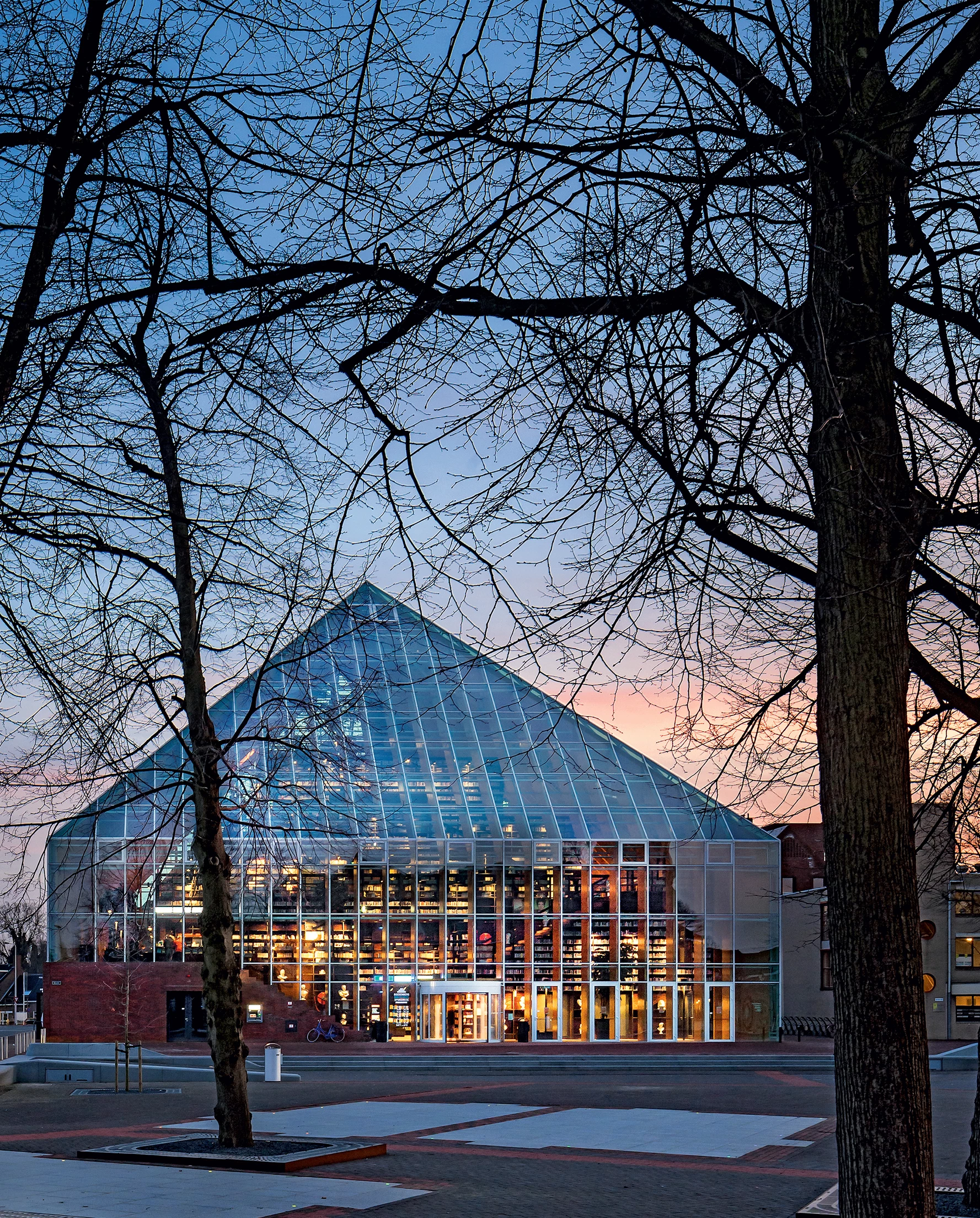 Situada en el área metropolitana de Rotterdam, Spijkenisse es una localidad que ha sufrido una gran transformación en los últimos 40 años, pasando de ser una pequeña población de agricultores a una ciudad moderna de tamaño medio. En el centro urbano, la nueva biblioteca forma parte de un plan de reactivación del tejido con viviendas y equipamientos para fomentar la cultura en una zona donde existe una tasa del 10% de analfabetismo. El denominado Library Quartier (‘barrio de la biblioteca’), diseñado enteramente por MVRDV, se materializa en ladrillo para crear una unidad homogénea donde la biblioteca, envuelta en cristal, funciona como el nuevo símbolo y reclamo de actividad. Por ello, la biblioteca se concibe como una gran montaña de libros expuesta al exterior.