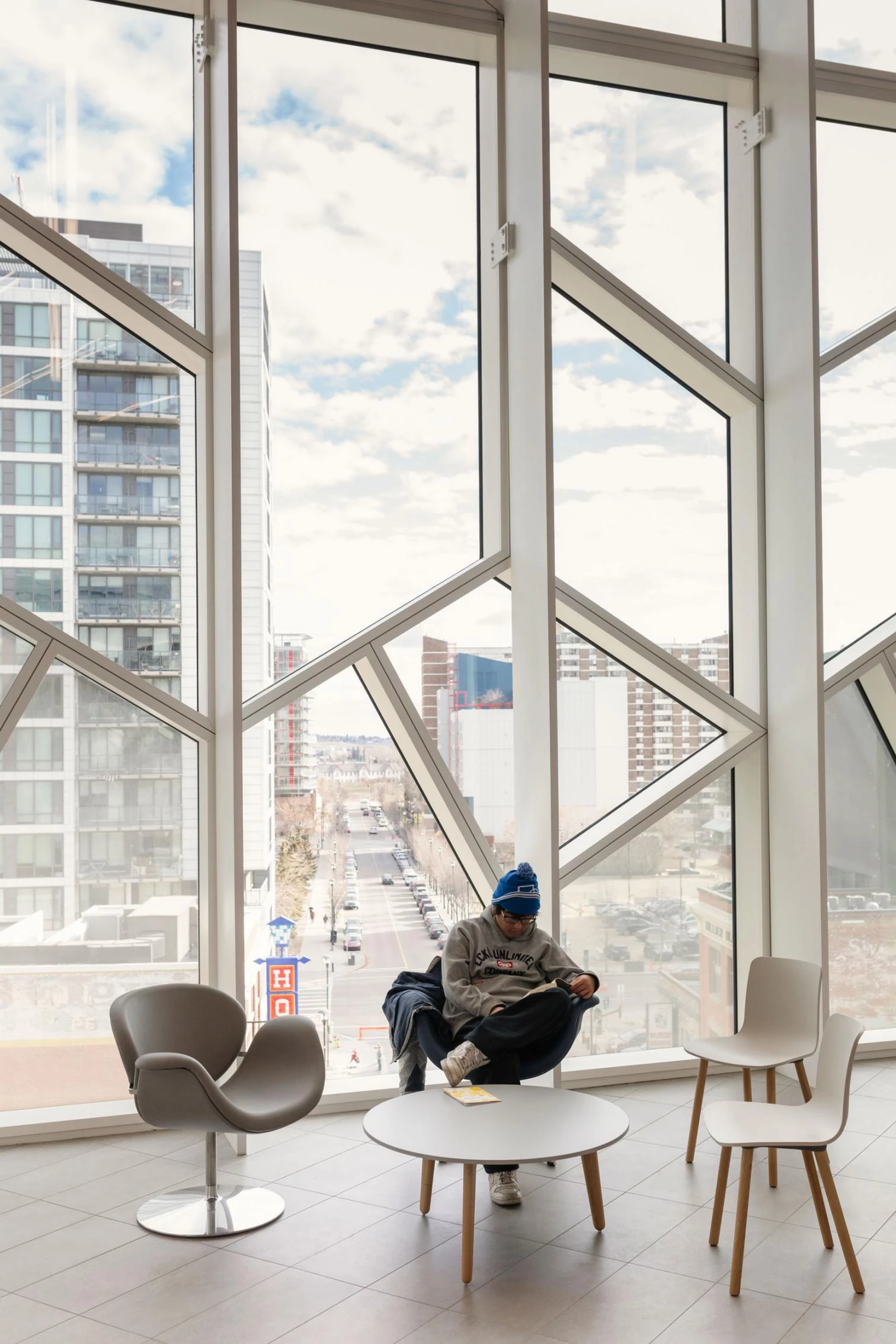 Tras la convocatoria de un concurso internacional en 2013 y un proceso de participación ciudadana, la firma noruega Snøhetta y el estudio canadiense Dialog han finalizado una nueva dotación pública para Calgary, donde aproximadamente la mitad de los habitantes son usuarios activos de las bibliotecas. Con más de 22.000 metros cuadrados, el proyecto está enmarcado dentro de en una gran operación urbana y cultural en el centro de la ciudad canadiense que se ha convertido en una de las mayores inversiones públicas desde la celebración de los juegos olímpicos de 1988.
