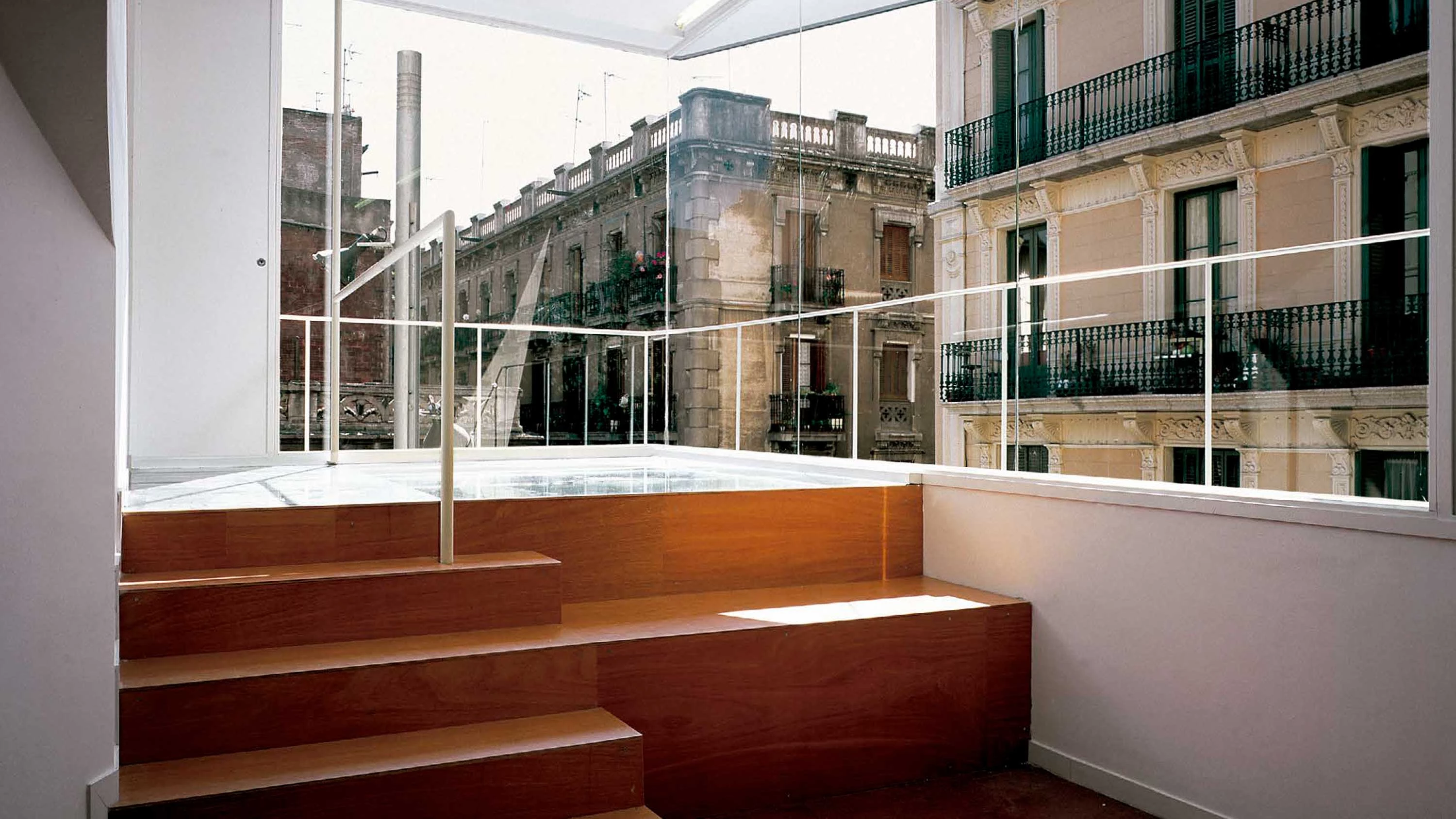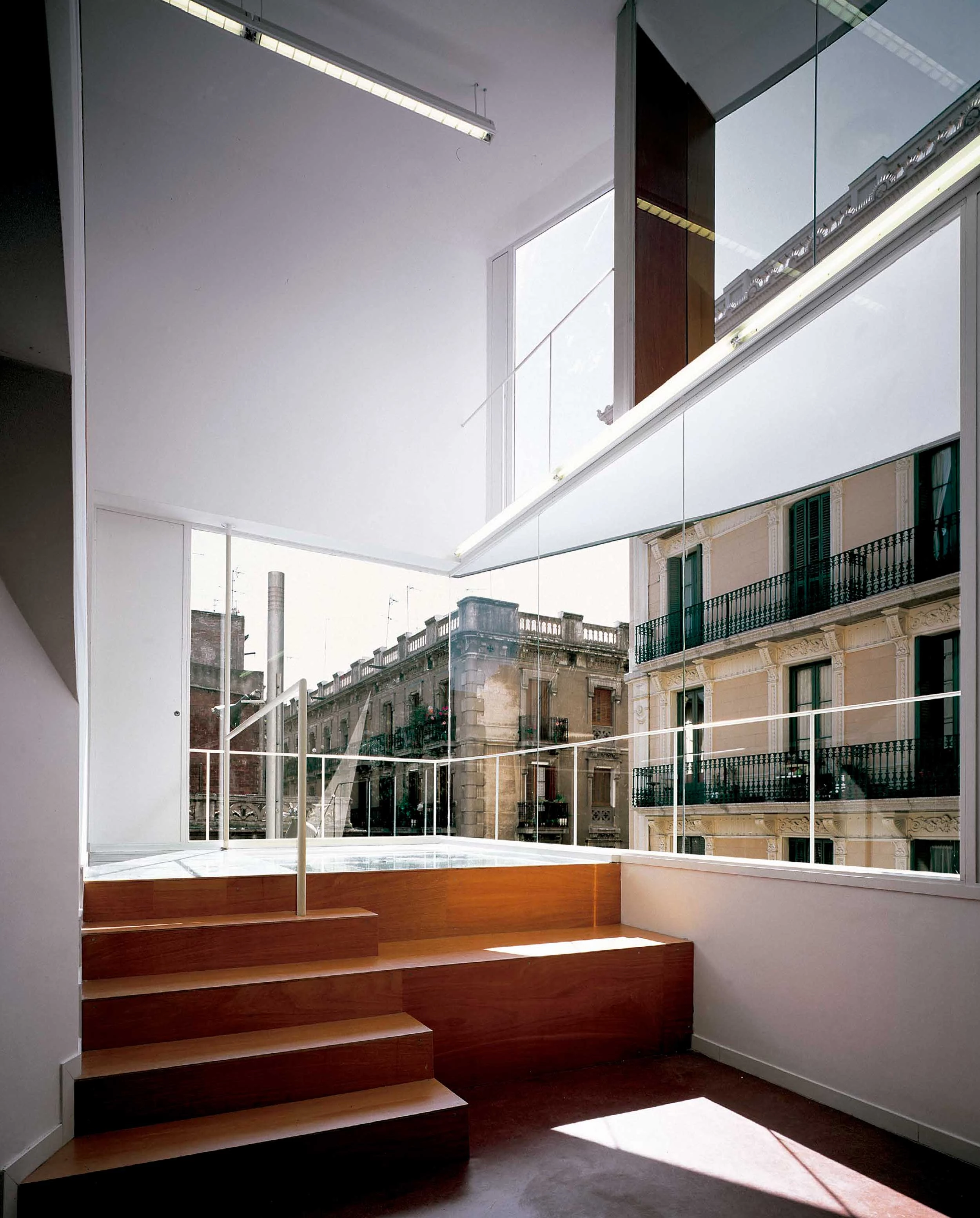 La biblioteca de Gracia forma parte del plan de bibliotecas puesto en marcha por el Ayuntamiento de Barcelona para ampliar la red existente, creando nuevos centros de barrio que ofrezcan servicios de información, de cultura y de ocio, funcionando además como entidades dinámicas y dinamizadoras de su entorno. El edificio, recientemente inaugurado, se sitúa en el corazón del popular barrio barcelonés, en el cruce de la calle Torrent de l’Olla y la travesía de Gracia, sobre un pequeño solar cedido por Caixa Catalunya al consistorio. Este cruce es desde todos los puntos de vista, pero especialmente desde el circulatorio, una conexión de primer orden entre Gracia y la ciudad. La biblioteca adquiere por esta razón un papel representativo desproporcionado en relación al reducido tamaño del solar que ocupa, de ahí que se haya optado por otorgarle una presencia enérgica, la que corresponde a un solar de vocación doméstica cuyo destino se ha alterado y pasa a ser sede bibliotecaria.