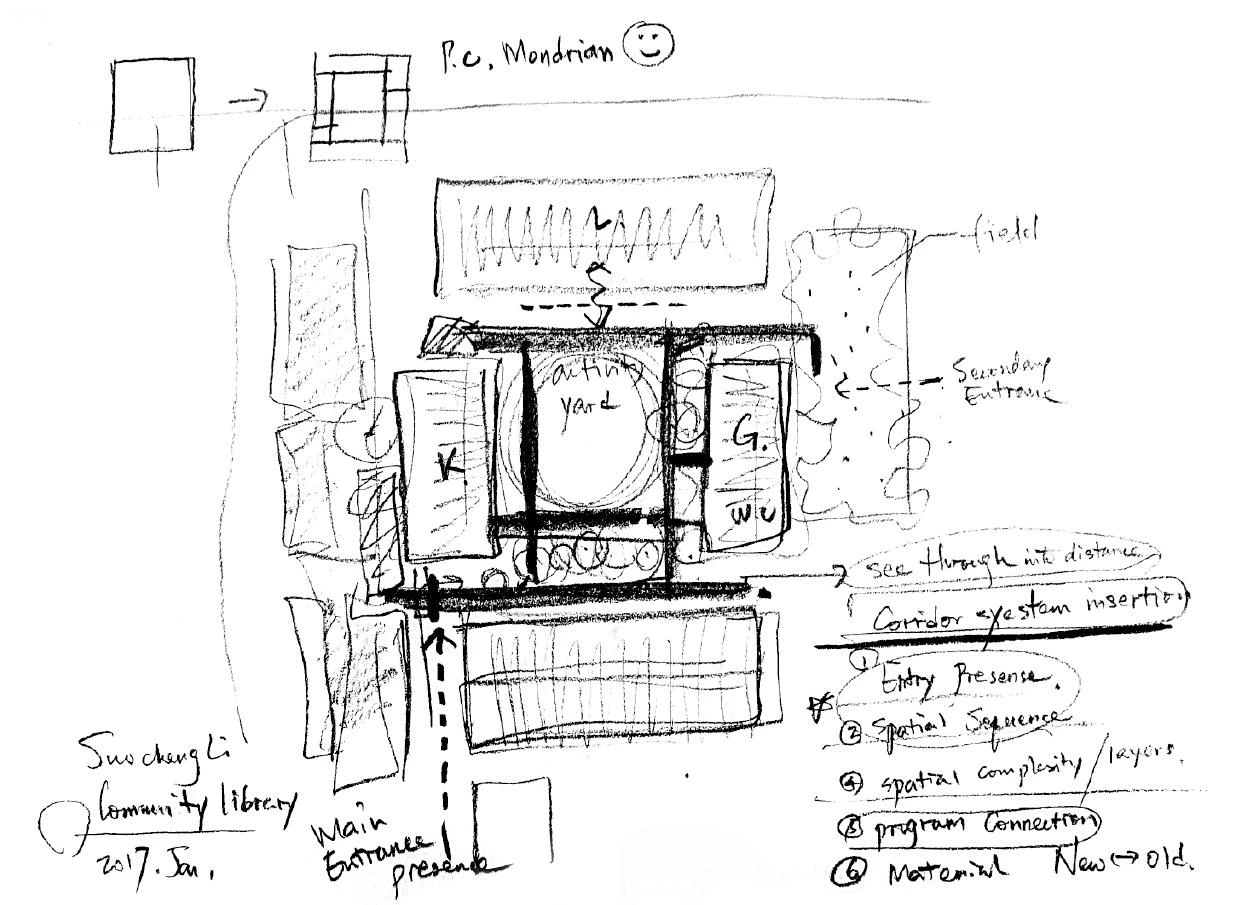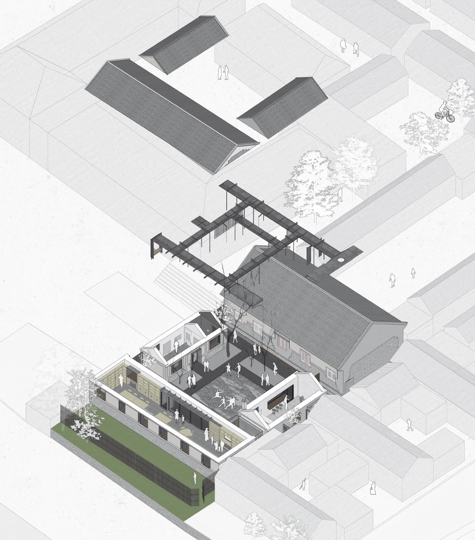 Inserta en una manzana-patio típicamente china, la biblioteca está situada en el noroeste del barrio histórico de la ciudad portuaria de Yantai, al norte de China. Se trata de un enclave hecho mediante superposiciones azarosas y desordenadas que, sin embargo, tiene valor en la medida en que ha mantenido los preciosos vestigios del paso del tiempo. Incorporar la vida contemporánea a este patio tradicional, sin renunciar a la memoria, ha sido el objetivo de este proyecto cuyo tema es, en último término, el diálogo entre lo viejo y lo nuevo, entre el pasado y el presente.