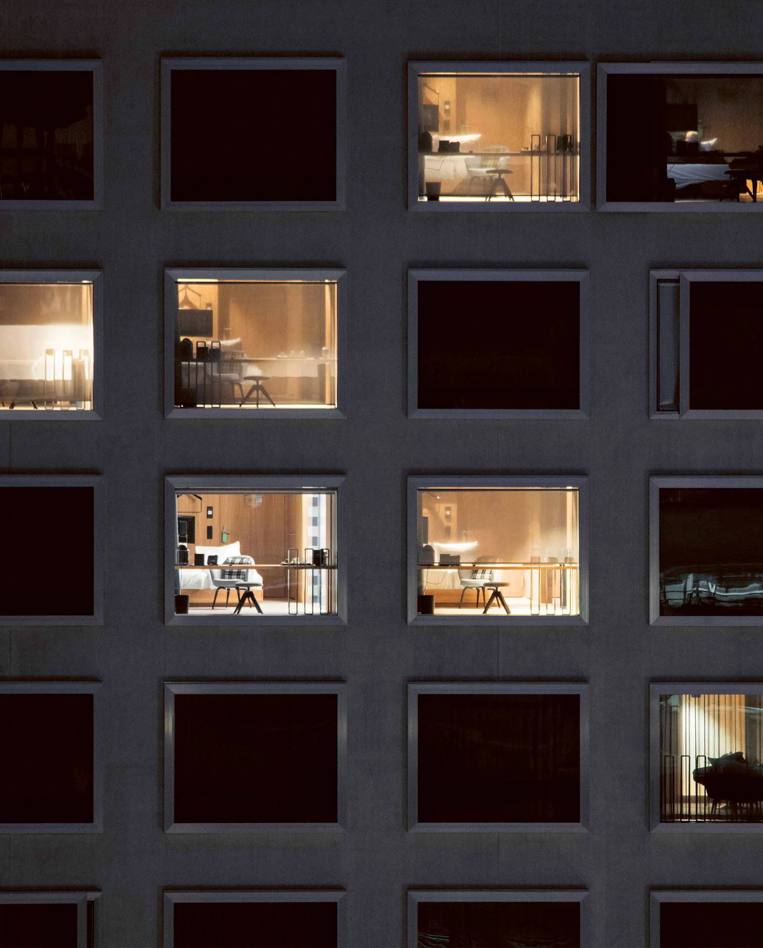 Definido por la rotundidad de su poderosa geometría —un esbelto paralelepípedo de 75 metros de largo, 15 metros de ancho y 12 plantas—, el edificio se adapta a la parcela alargada situada en un entorno urbano anodino y establece un diálogo formal con las construcciones industriales existentes. Además, el bloque aloja un complejo programa de usos mixtos incluyendo desde un centro de cuidados paliativos, una unidad de día y espacios médicos especializados, hasta aulas, una guardería, un hotel, un auditorio y un restaurante. En respuesta a esta variada secuencia vertical de funciones, se diseñó una estructura que garantizara la flexibilidad y la resiliencia del conjunto. El edificio resuelve, así, su estrecha crujía con tres líneas estructurales: las dos exteriores de los muros de carga, y la interior, correspondiente a los núcleos de comunicación vertical (algunos usos cuentan ascensores y escaleras independientes) e instalaciones, permitiendo de esta forma liberar la planta y adaptarla a los requisitos espaciales de cada programa. Hacia el exterior, la fachada está definida por una rigurosa retícula de hormigón armado y grandes ventanas correderas sobrepuestas, que durante el día reflejan el paisaje urbano circundante y por la noche permiten vislumbrar los distintos usos del interior...[+][+]
