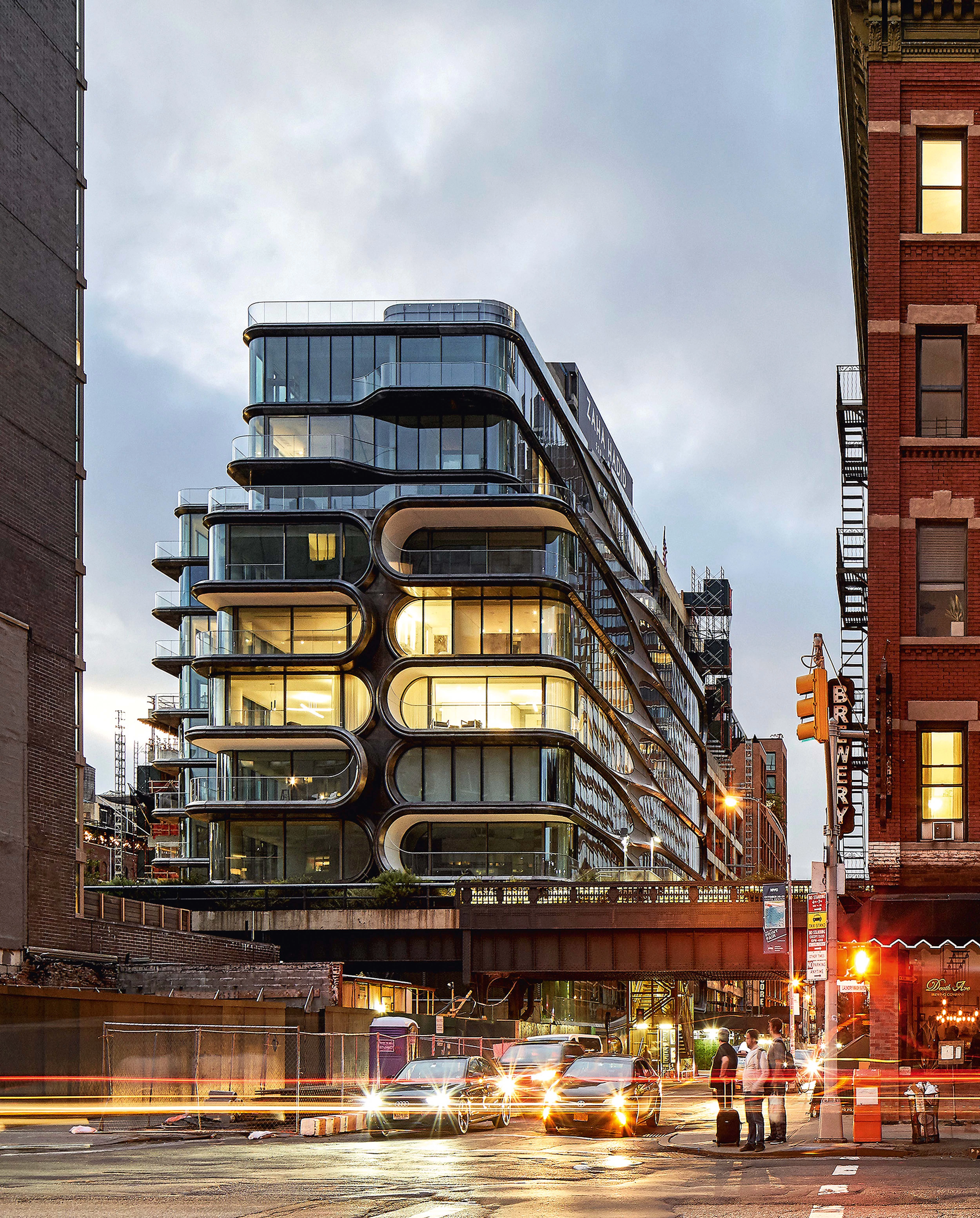 Este sinuoso edificio de apartamentos de lujo, situado en el cruce entre la High Line neoyorquina y la West 28th Street, evoca, con su división por niveles y los diversos tipos de espacios que se generan en su interior, las conexiones a distintas alturas y la enorme interacción social existente en el espacio público que lo rodea, derivada de la reconversión de las vías abandonadas de tren en un parque elevado.