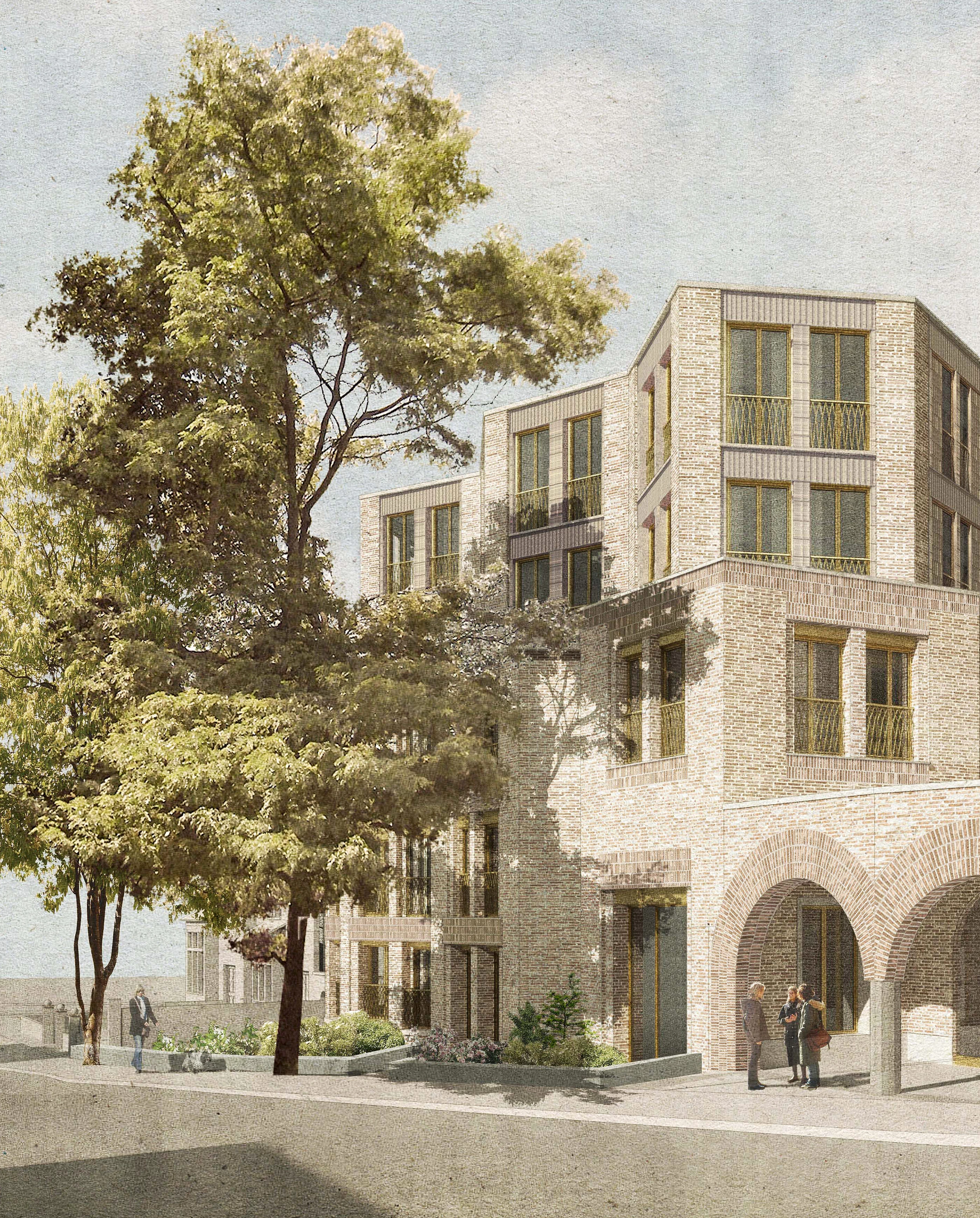 Inspirado en la típica arquitectura residencial urbana de Hampstead, el proyecto está destinado a viviendas para mayores con servicios compartidos, e incluye seis plantas con 33 apartamentos, instalaciones de bienestar y espacios comunitarios... [+]