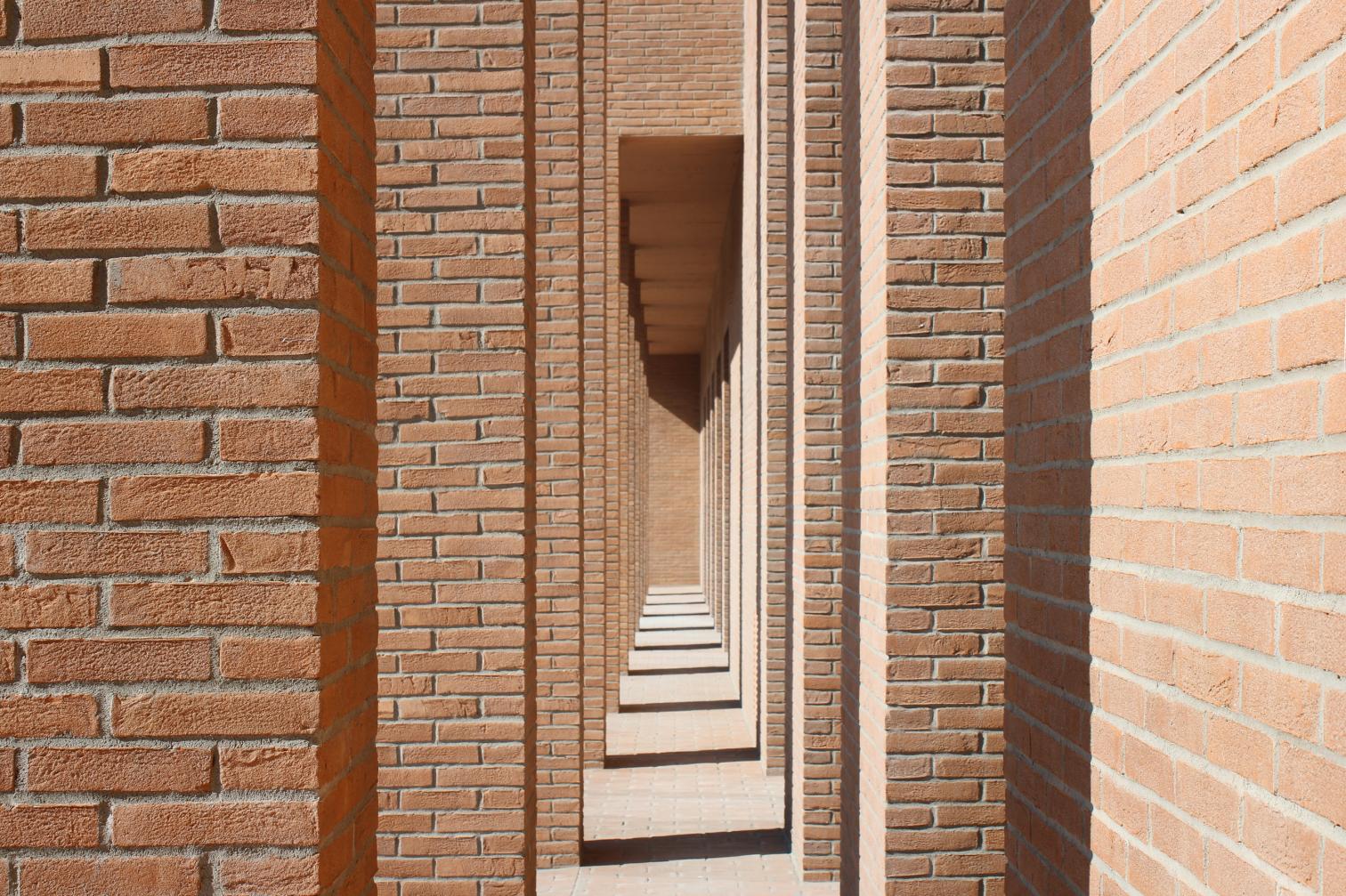 La bodega se presenta como una construcción discreta, parcialmente enterrada en la ladera. Su forma y materialidad permiten que el edificio actúe como una suerte de ‘filtro’ entre el exterior y el exterior, marcando el tránsito del fruto al producto elaborado. Esta transición se acentúa en la sección del paisaje, donde la arquitectura aparece como una extensión natural del terreno.