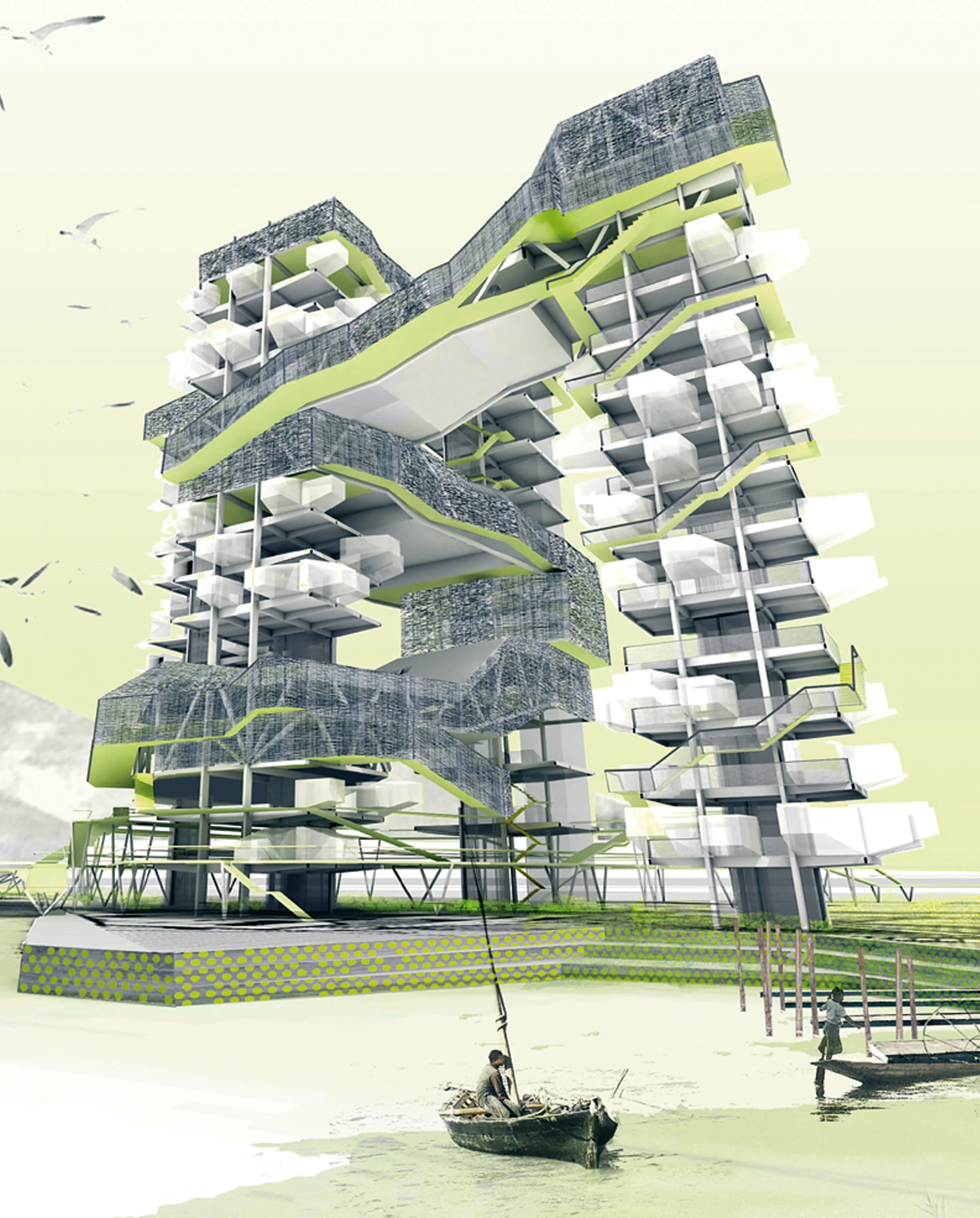Como un ejercicio de acupuntura, los distintos modelos de camping se incluyen en el paisaje a modo de catalizadores. Estos modelos serán plataforma de interacción para los trabajadores y visitantes del delta…[+]