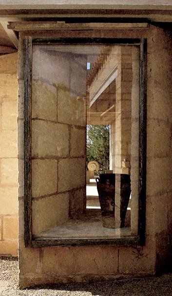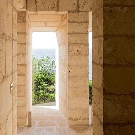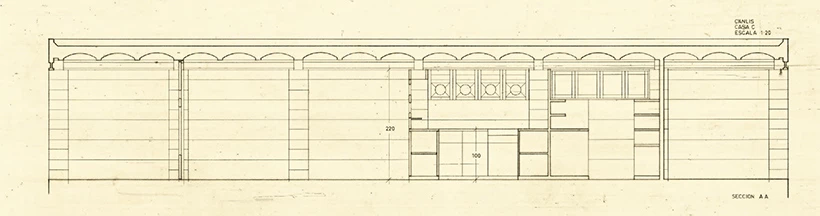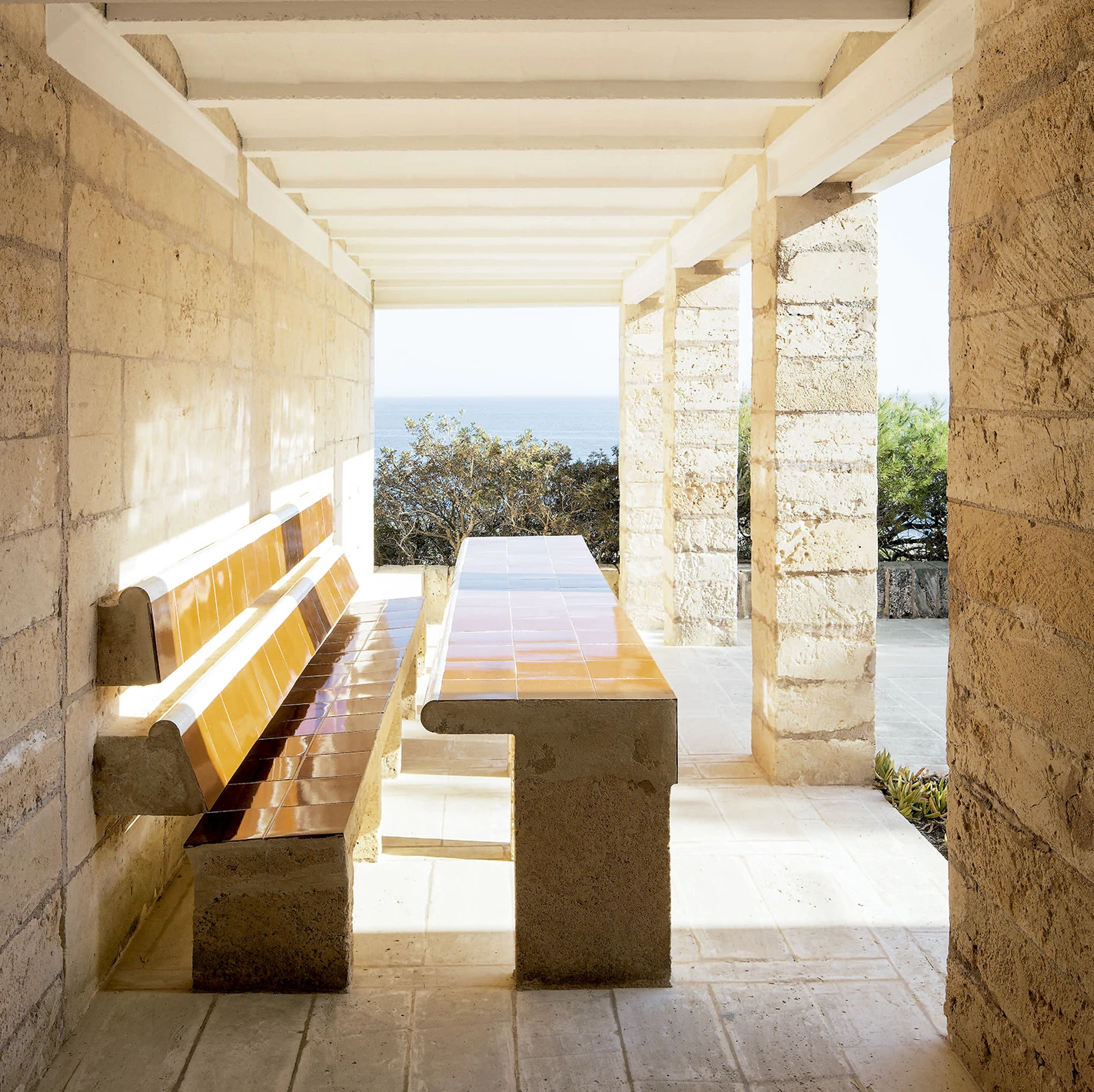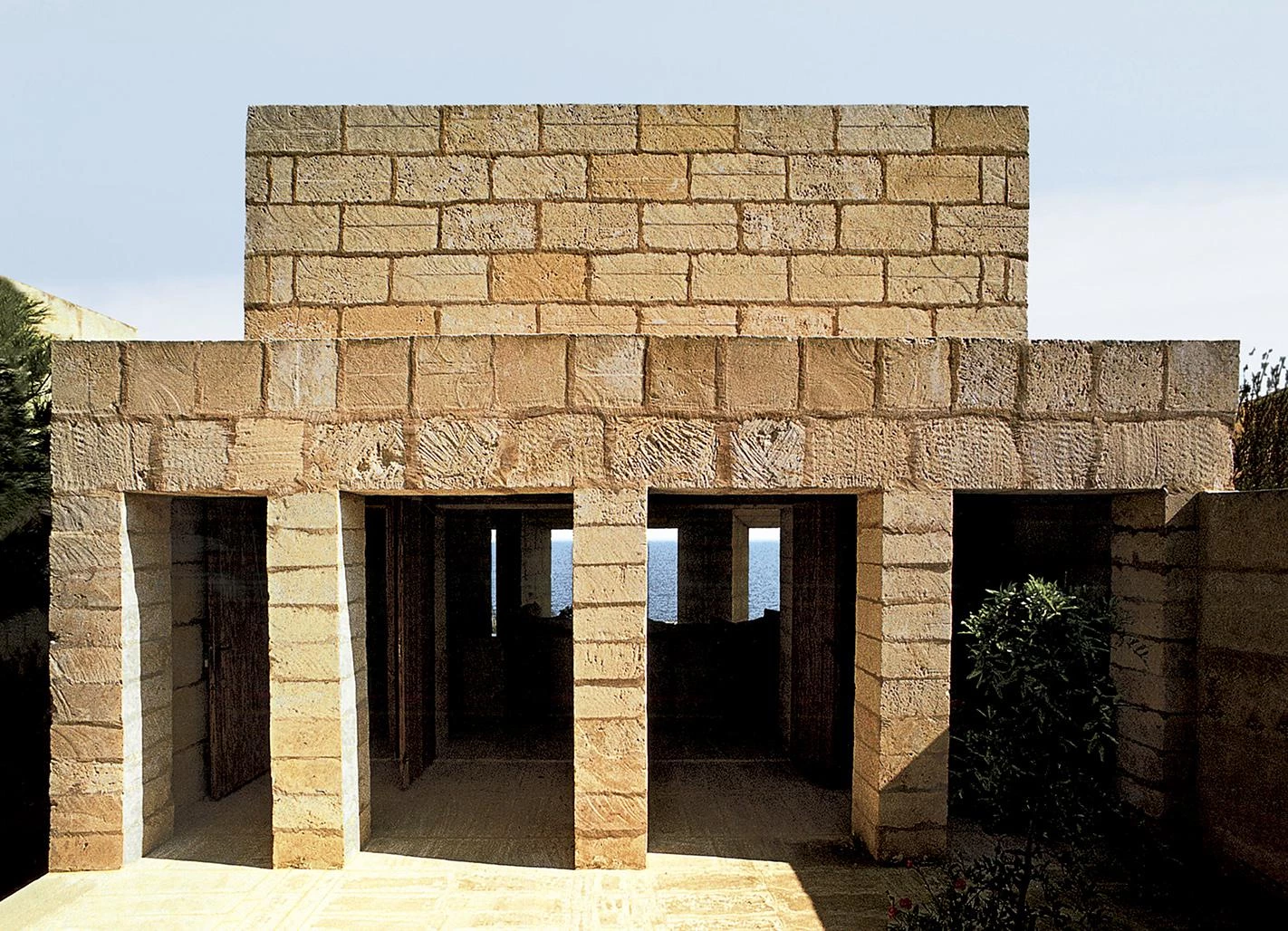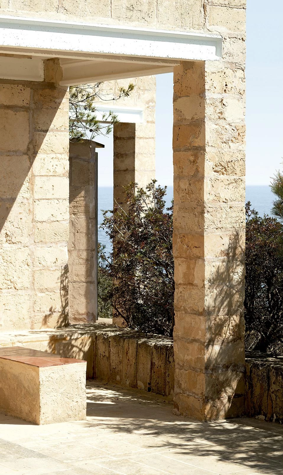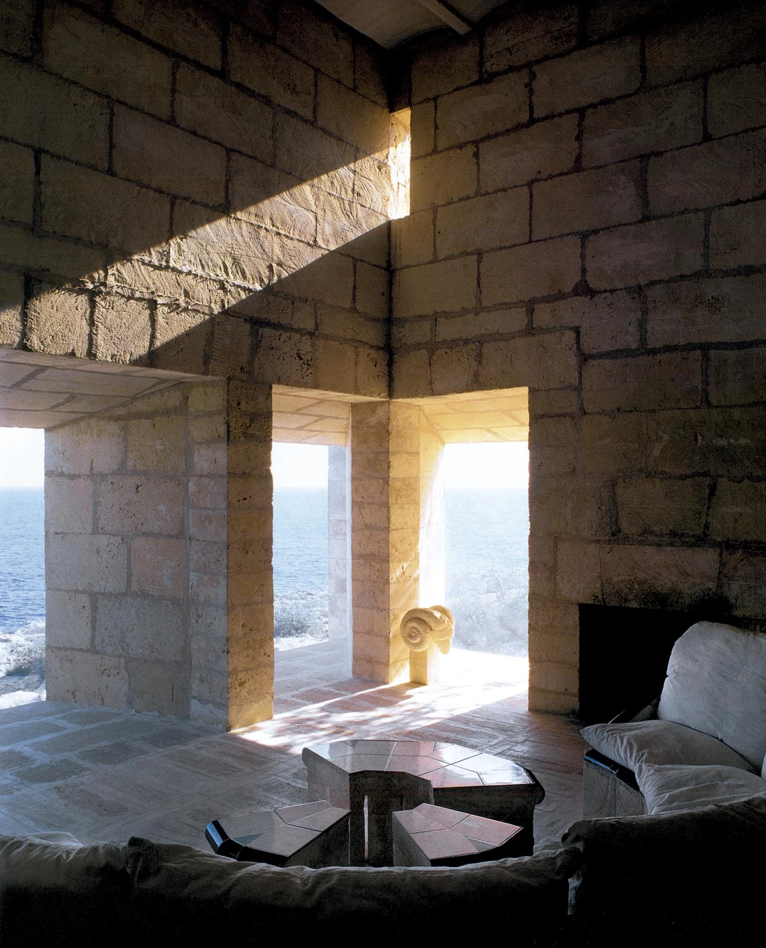 Can Lis se sitúa en lo alto de un abrupto acantilado, veinte metros sobre el Mediterráneo, y está formada por una serie de pabellones que buscan la mejor orientación sobre la topografía. Desde el camino que bordea el litoral, el conjunto queda oculto detrás de un muro quebrado; tan sólo un zaguán y un banco cerámico señalan el acceso. Traspasado el umbral, un recorrido al aire libre encadena los patios de entrada a cada una de las piezas. En lugar de alinearse frente al mar, los diferentes volúmenes siguen un orden basado en la posición del sol, la colocación de los árboles y la relación entre sus funciones. La casa reproduce el hábitat de los primeros pobladores, para quienes la vida se realizaba al aire libre y la caverna era el refugio donde esperar a que amainase. Por eso, en los interiores se ofrece una espalda protegida para apoyar los muebles y unos frentes abocinados que exageran el espesor de los muros. Las carpinterías de madera, situadas en la cara exterior de los muros, son invisibles desde el interior.