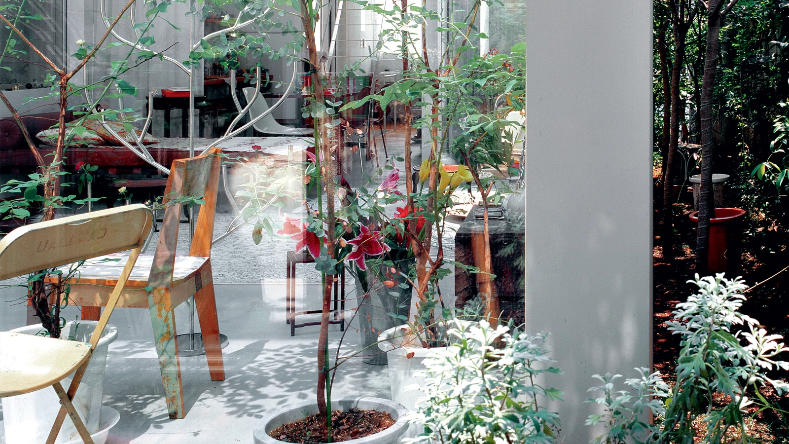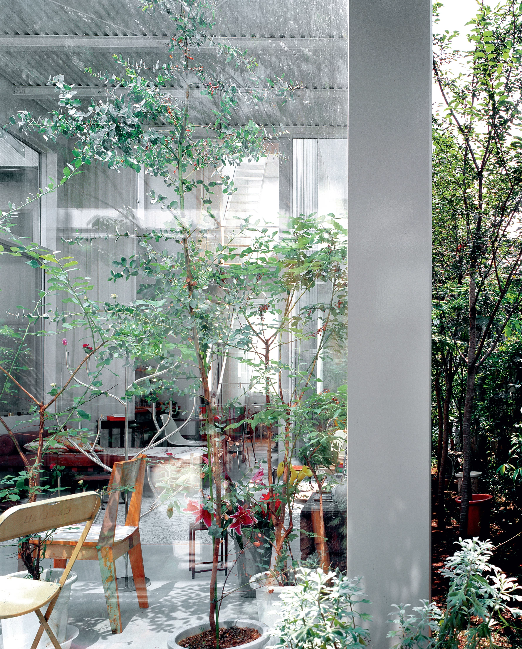 La Casa A se levanta sobre un solar estrecho y alargado dispuesto en dirección norte-sur, típico de las área residenciales que rodean las grandes urbes japonesas. Los requisitos del cliente, que vive solo, incluían un espacio amplio para celebrar fiestas, un cuarto de invitados, un dormitorio principal, una cocina con comedor y un cuarto de baño. Siguiendo una lógica casi inmediata, el programa se distribuye en volúmenes cúbicos repartidos a lo largo del eje longitudinal del solar, cuyas proporciones y alturas se adaptan a su uso específico. La presencia de las casas colindantes sobre los linderos se reduce con un desplazamiento en planta de los cubos, consiguiendo zonas ajardinadas que se intercalan con los volúmenes. Los interiores se abren hacia estos jardines perimetrales con planos de vidrio, y los cambios de altura de la cubierta se cierran con lucernarios. La esbelta estructura, compuesta por pórticos metálicos de perfiles H 100, se vuelve casi imperceptible y permite abrir grandes huecos en todo el perímetro, fusionando el ambiente interior de la casa con su perímetro ajardinado. El volumen central es, de hecho, un gran salón «de sol» de 4,4 metros de altura, en cuya cubierta se abre un lucernario operable, y donde resulta díficil distinguir si el espacio es interior o exterior.
