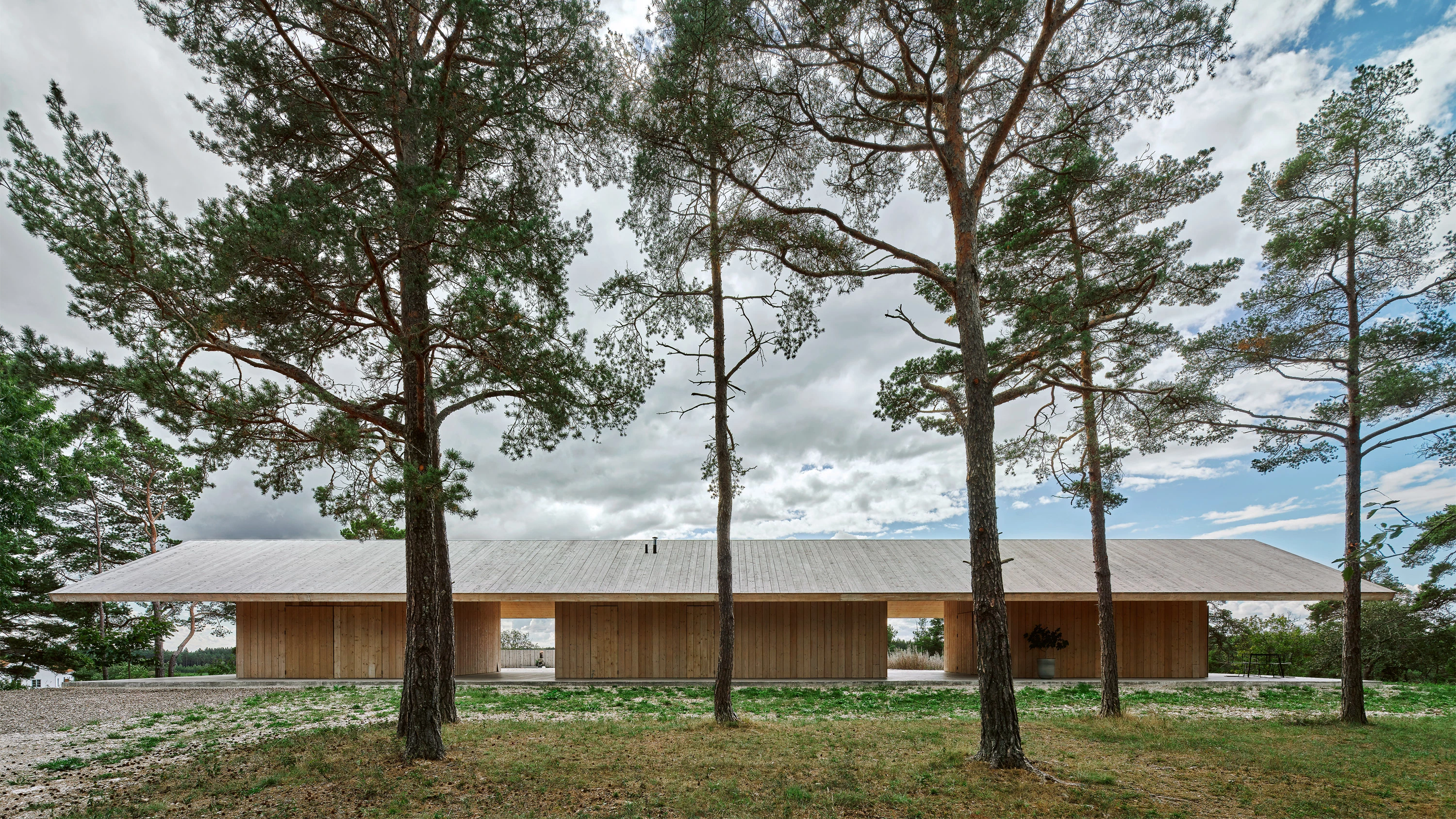 La isla de Gotland, la provincia menos poblada de país, es conocida internacionalmente por su biodiversidad de flora y fauna. En este idílico entorno natural se ha levantado esta residencia de verano ligeramente elevada sobre una boscosa meseta de piedra caliza desde la que se vislumbran hacia el sur amplios campos y prados con ganado. La parcela forma parte de una antigua zona militar del ejército sueco en la que se esconden dos búnkeres bajo tierra. De estas viejas estructuras tan solo se revelan las puertas de acero integradas en la pendiente del terreno en la cota inferior del solar. Tras la intervención, estos vestigios que evocaban tiempos ominosos se convierten en el estudio y espacio de taller de los clientes, unos profesionales del diseño.