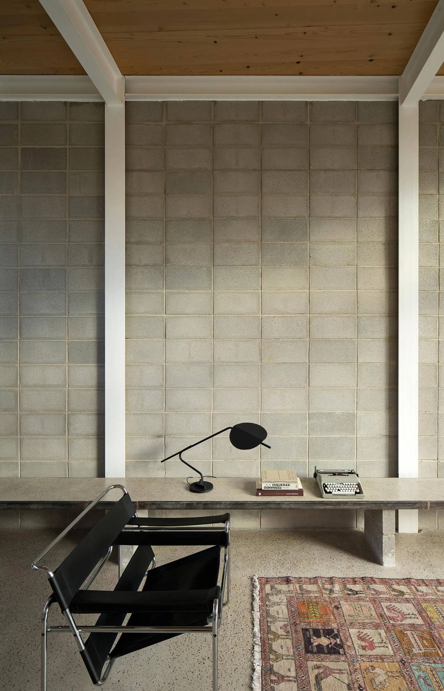 La casa está organizada en torno a una pieza central, con la función de baño y de almacén, y está diseñada para adaptarse a las necesidades futuras de sus habitantes. Los diferentes muebles, algunos de obra, son los que terminan de construir los distintos espacios. Con ventanales que permiten las vistas hacia el parque, la planta superior ofrece un espacio actualmente utilizado como estudio de los arquitectos.