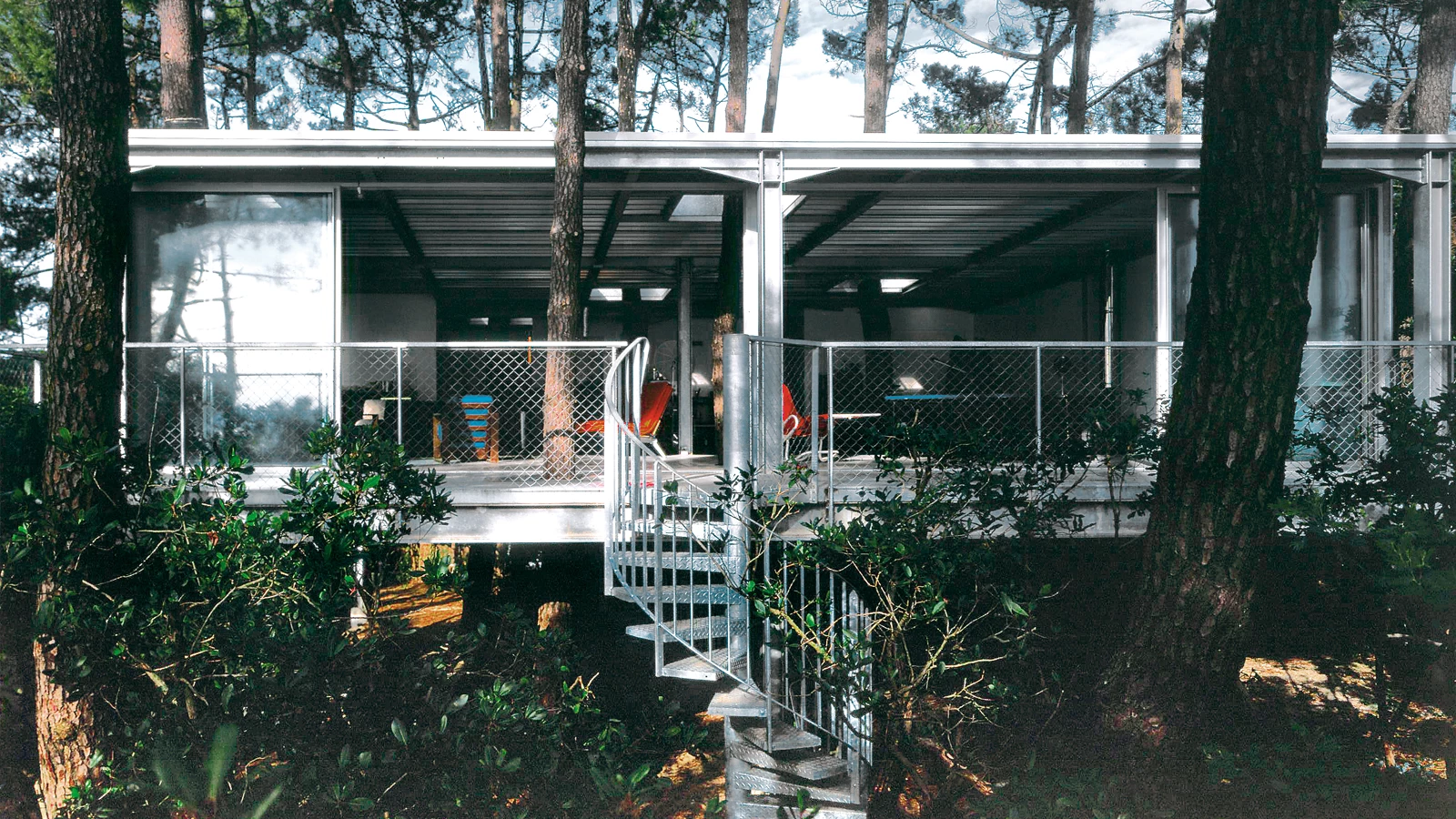 Evitar la tala de pinos y la deforestación de la vegetación baja, es el principal reto de la propuesta. Para ello se eleva la vivienda, lo que permite, además, mejorar las vistas. Se excluyen los aterrazamientos pesados, particularmente degradantes en un suelo de arena, gracias a doce micropilotes de menos de diez metros de profundidad. Los pinos se conservan, incluso los que atraviesan la vivienda, para los cuales se diseñas huecos que se adaptan a su posible balanceo y desarrollo. La fachada que mira a la bahía es abierta y de vidrio; las otras tres son más cerradas y opacas, y sólo se interrumpen en las ventanas. La zona bajo la estructura es transitable y, como las fachadas laterales, se reviste de placas de aluminio que crean un cielo artificial gracias a la luminosidad que se refleja en las ondas de la chapa, que son perpendiculares a la costa.