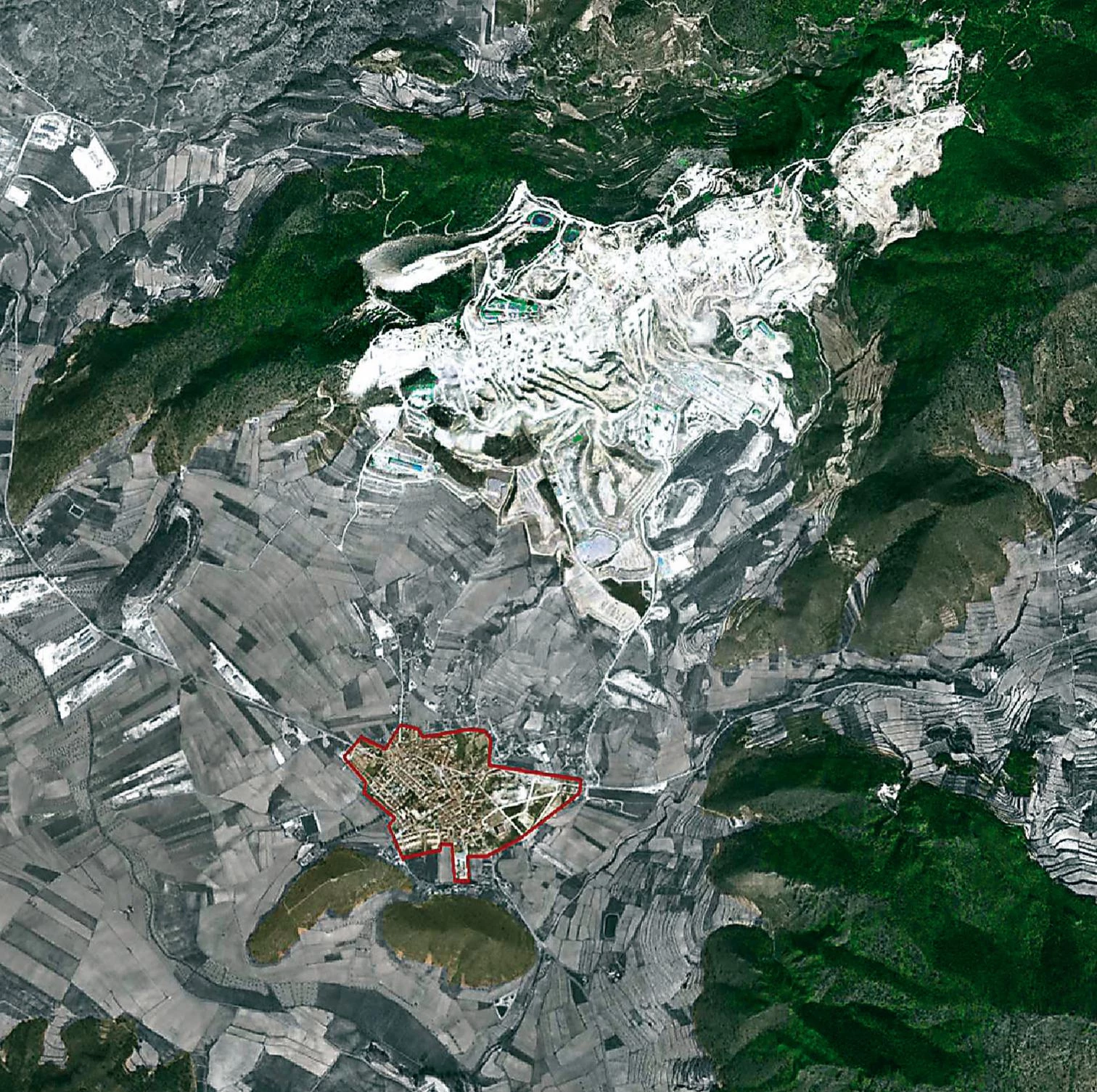 Las canteras de mármol dominan el paisaje de Algueña y tienen mucha importancia para su economía. El hermetismo del nuevo edificio le confiere un aspecto de gran bloque marmóreo desgajado de la ladera.