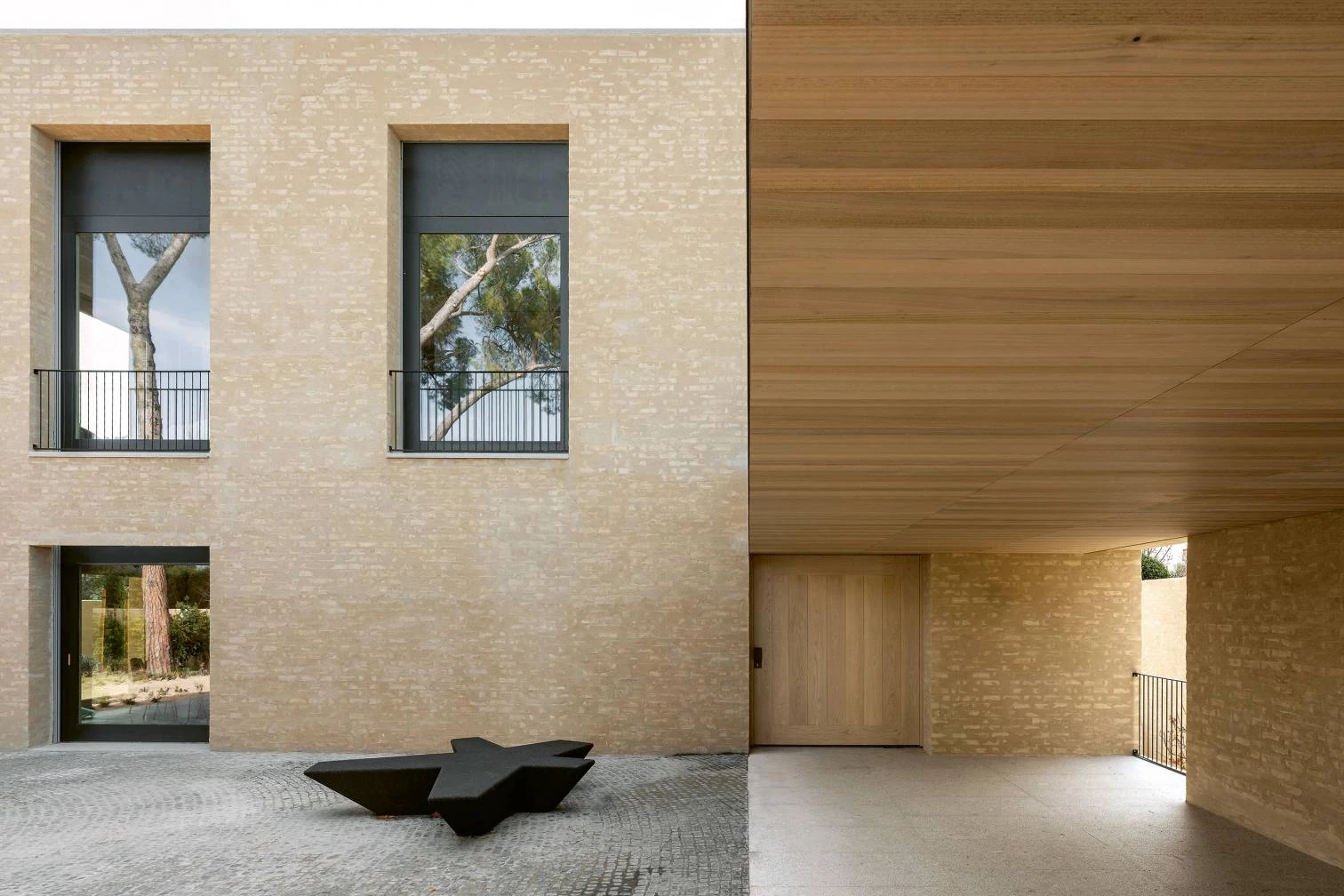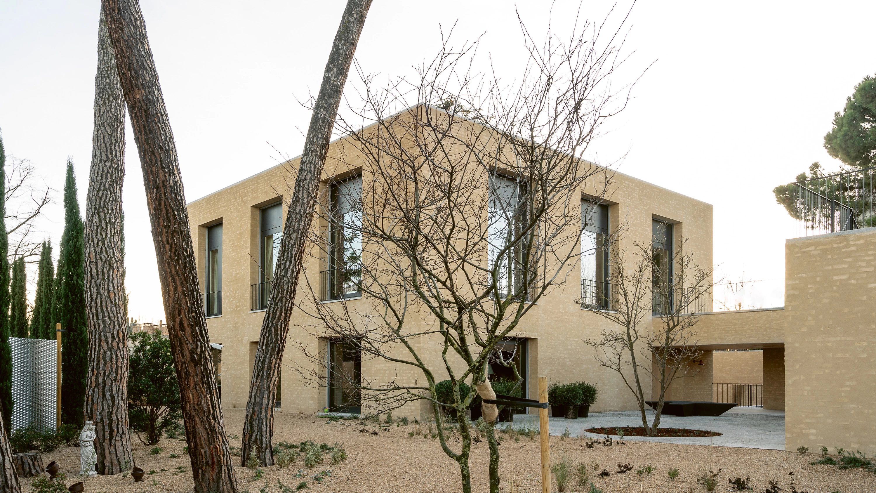 Esta casa de ladrillo se construye en una parcela cualificada por un conjunto de altos pinos, situados en su esquina nordeste, y por la silenciosa cercanía del Monte del Pardo en su cara norte.