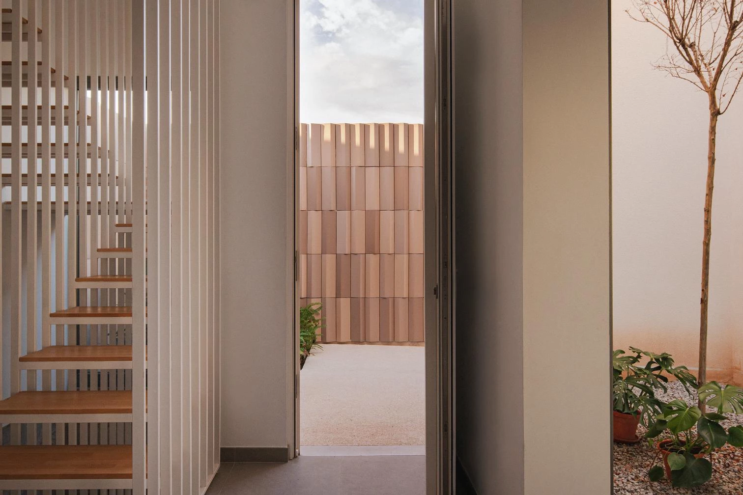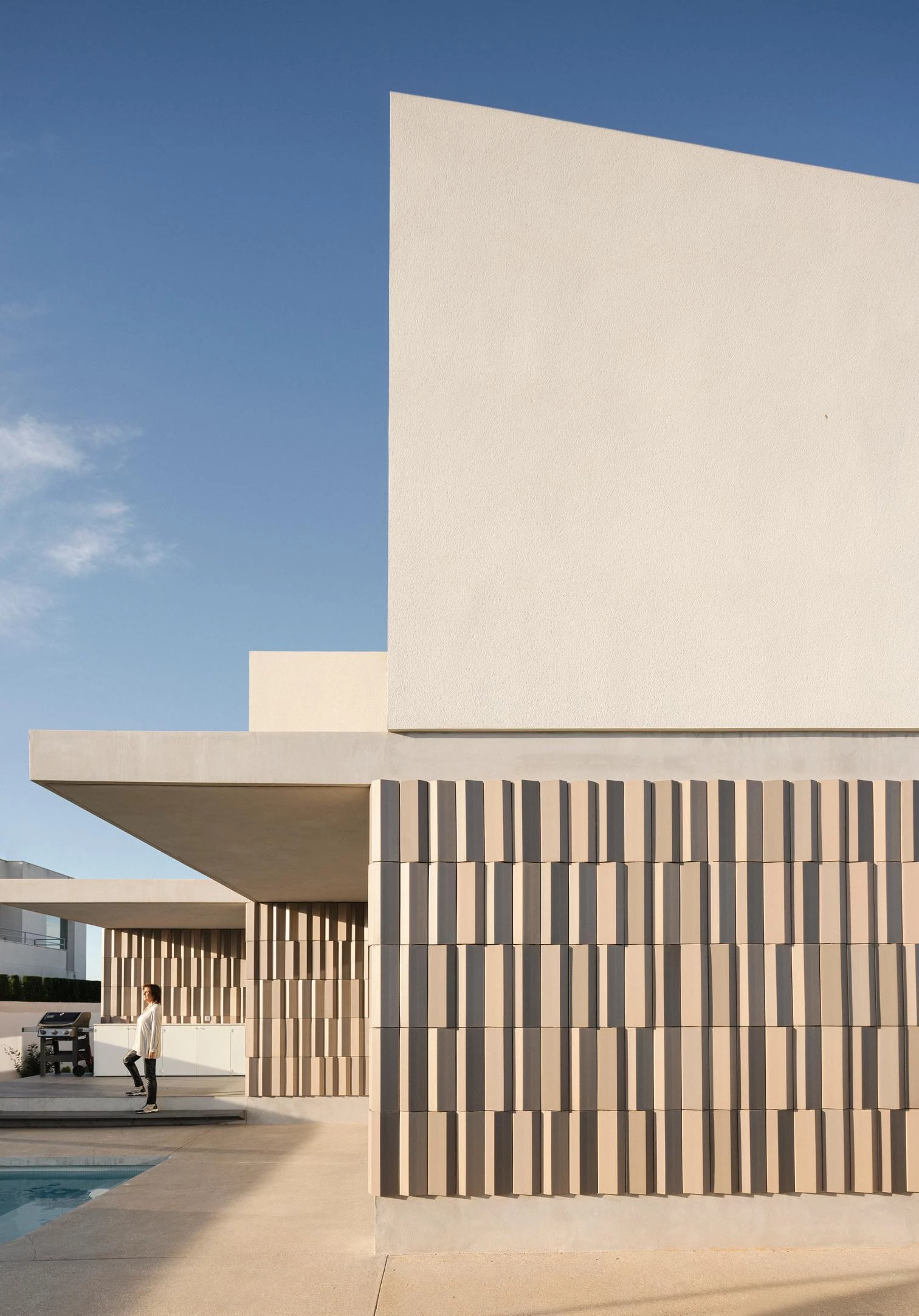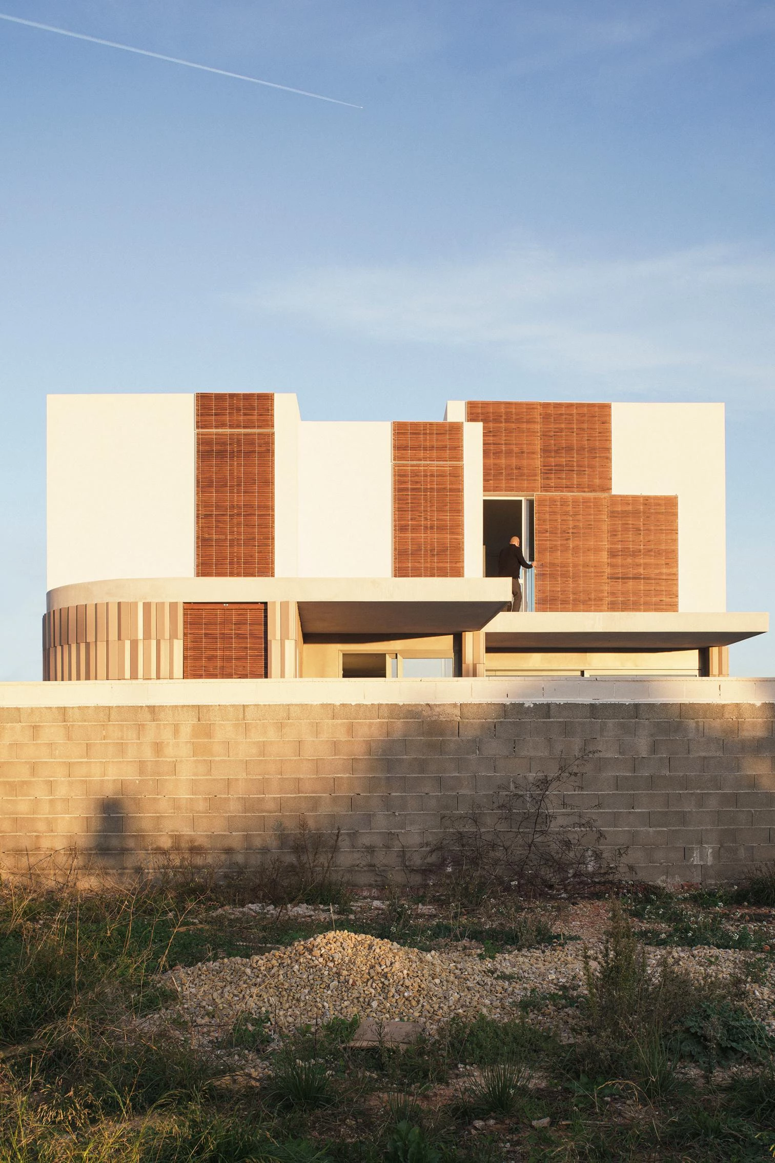 Con una superficie construida de 232 metros cuadrados, esta vivienda está inspirada formalmente en las alquerías situadas a escasos metros de distancia: casas de campo con tierras de labor, compuestas por un volumen principal a dos aguas al cual se le adosan otras construcciones de geometrías diversas. Organizada alrededor de un pequeño patio, la casa toma el nombre por sus porches en voladizo, un elemento de tradición mediterránea que aquí se generan al prolongar los forjados de la vivienda hacia el exterior. Sus dimensiones y disposición, orientados a sureste, ayudan a proteger el interior de la excesiva radiación solar en verano, pero permiten su acceso a la vivienda en invierno. La cerámica envuelve el conjunto con piezas de diferentes colores y formatos.