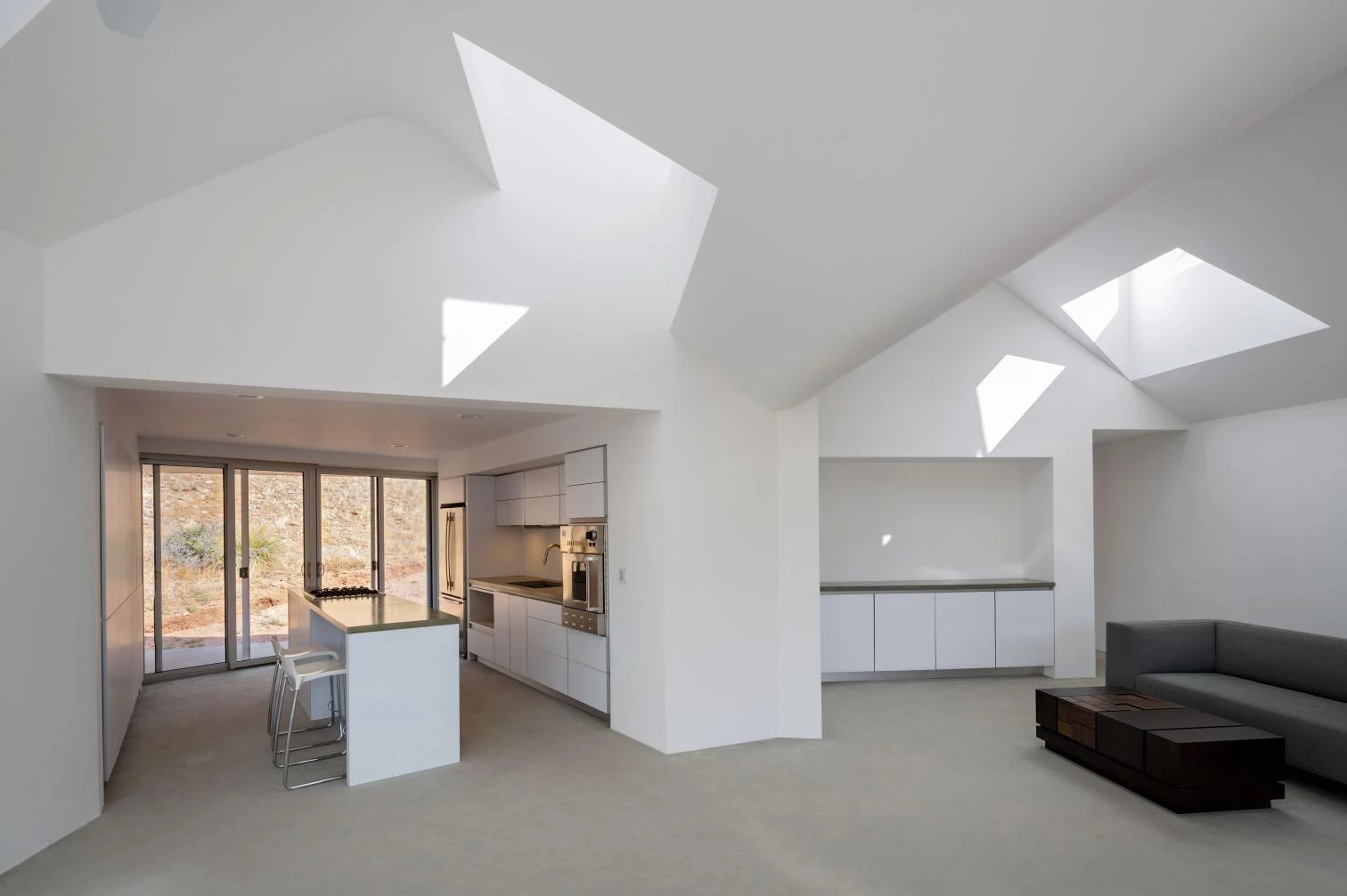 El edificio funciona como casa de invitados y centro de visitantes de Star Axis, un proyecto de Land art del artista Charles Ross, situado en el desierto de Nuevo México. El conjunto sigue un esquema geométrico aditivo que hace posible el crecimiento por fases, de dentro afuera, mediante la suma de nuevos módulos.
