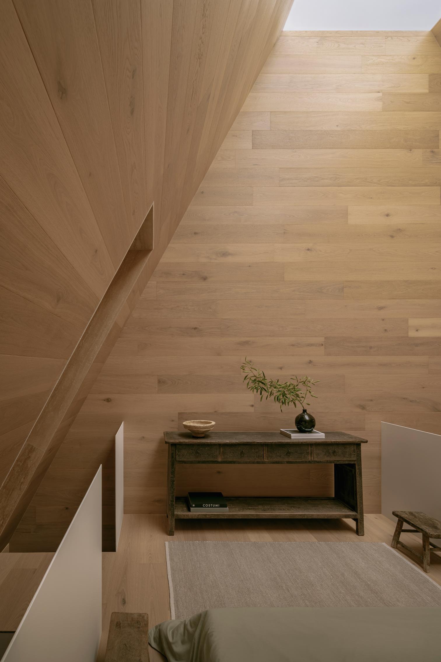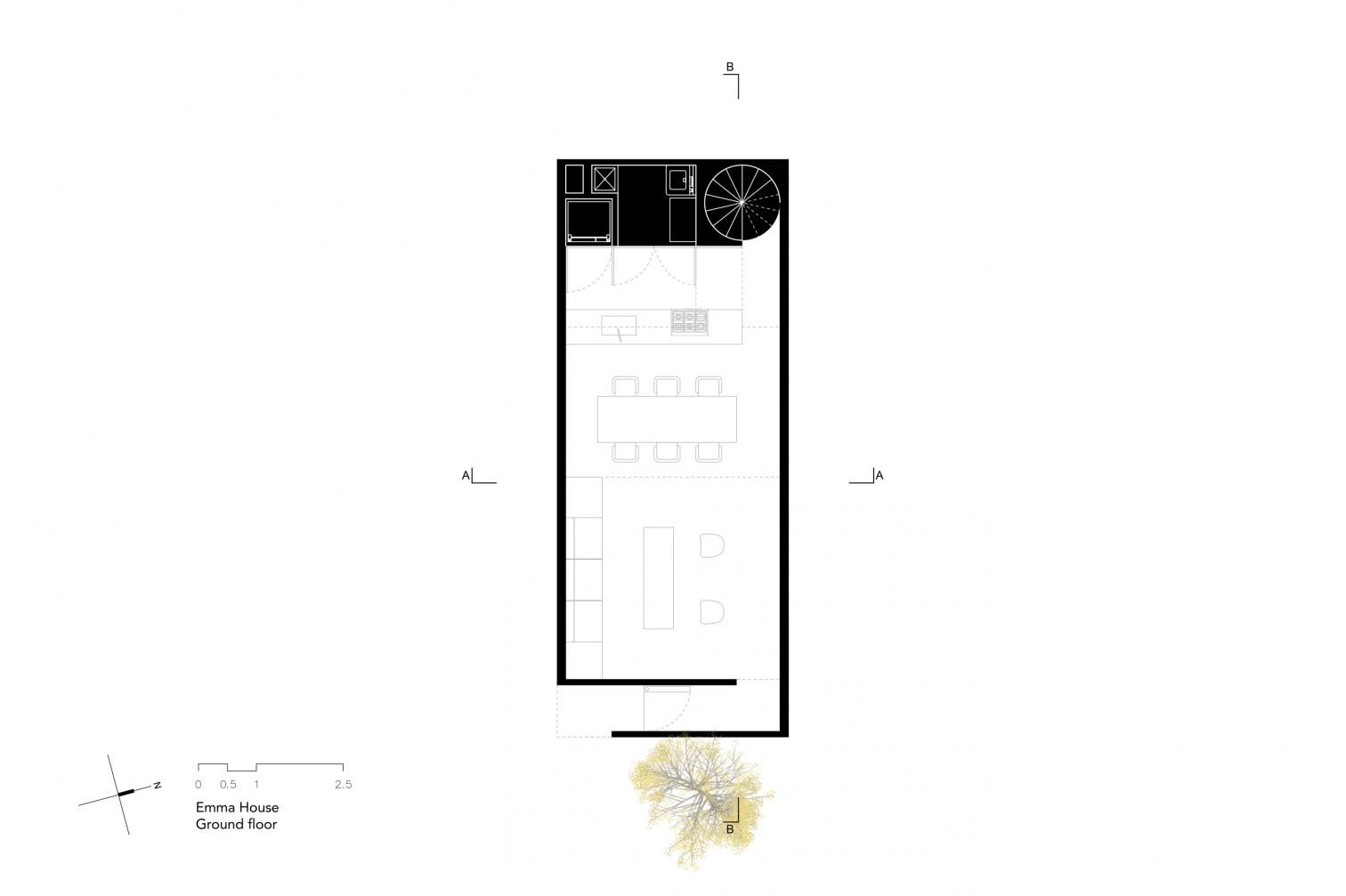 Este proyecto residencial busca transmitir serenidad y calma a través de la luz. Para ello, se explora cuidadosamente cómo capturar la iluminación descendente, generando una experiencia envolvente. Además, Casa Emma se entiende como un ejercicio de excavación, en el que se extrae un vacío con forma de troje —la vivienda tradicional de los pueblos de la meseta Purépecha, una región del estado mexicano de Michoacán—, construcción por las cual Emma siente un especial cariño y apego. Por este motivo, el material predominante en los interiores es la madera.