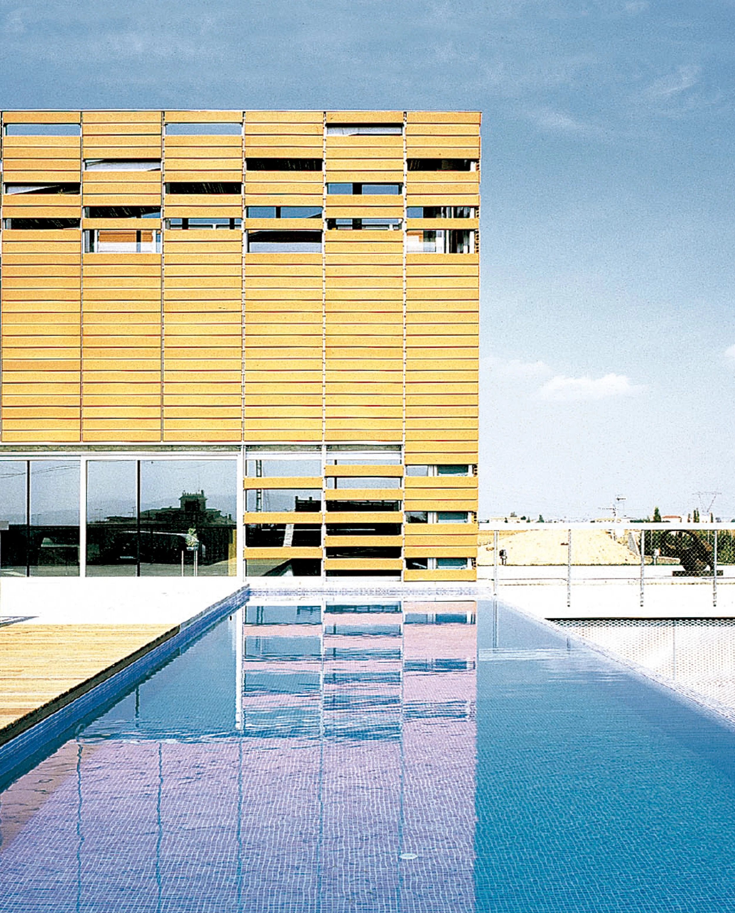 Inspirándose en las torres-granja de colonización, en las que aljibes, corrales y almacenes construyen la base de la que emergen prismas masivos, almenados o perforados por palomares, el volumen de forma cúbica arranca de un zócalo de hormigón que aloja parte del programa. La piscina, el gimnasio, las habitaciones y un estar-cocina familiar se distribuyen entre sus muros abriendo trayectorias de distinta orientación, que se proyectan en el terreno por medio de cuatro patios semienterrados. A un metro cuarenta por debajo de la rasante, estos jardines inclinan sus planos acercando el paisaje hasta la frontera del espacio interior: cubiertos de césped, grava o árboles de diversas especies —cactus al sur, palmeras al suroeste, olivos al oeste y dichondra repens, una trepadora que se adapta a lugares umbríos al norte—, diluyen la sensación de enterramiento. En el nivel de acceso, la casa simplifica sus formas y concentra el vestíbulo, el estar y la cocina en una sencilla planta rectangular.