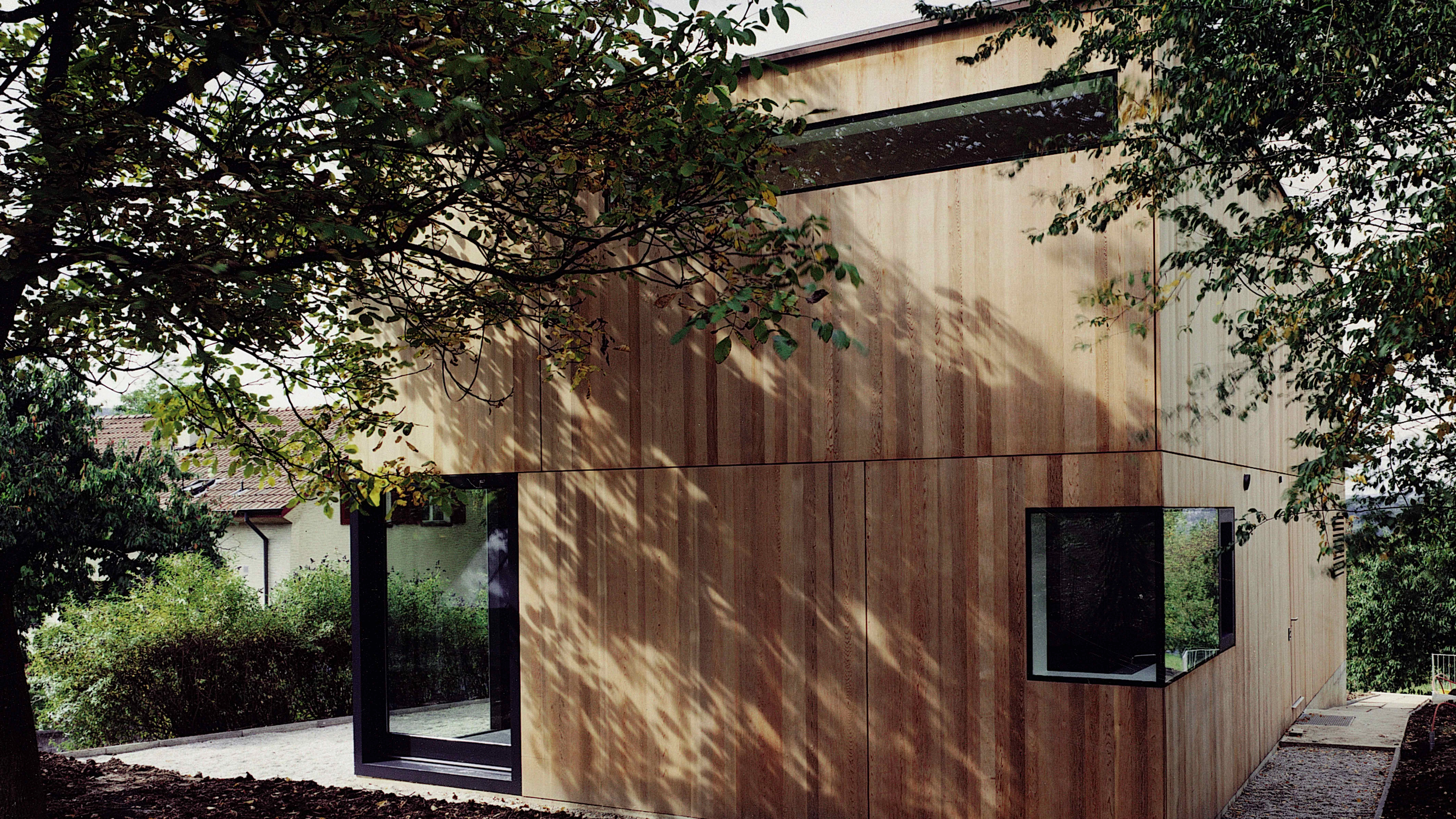 Se trata de una vivienda unifamiliar situada en Dornach, en una parcela de acusada pendiente junto a un cruce de caminos del extremo sur del área metropolitana de Basilea. Su implantación niega la fría orientación norte con una fachada casi ciega para abrirse al sur, hacia las dilatadas vistas del valle, donde proliferan otras tantas construcciones residenciales que son un catálogo de reiterados lenguajes pseudovernáculos.