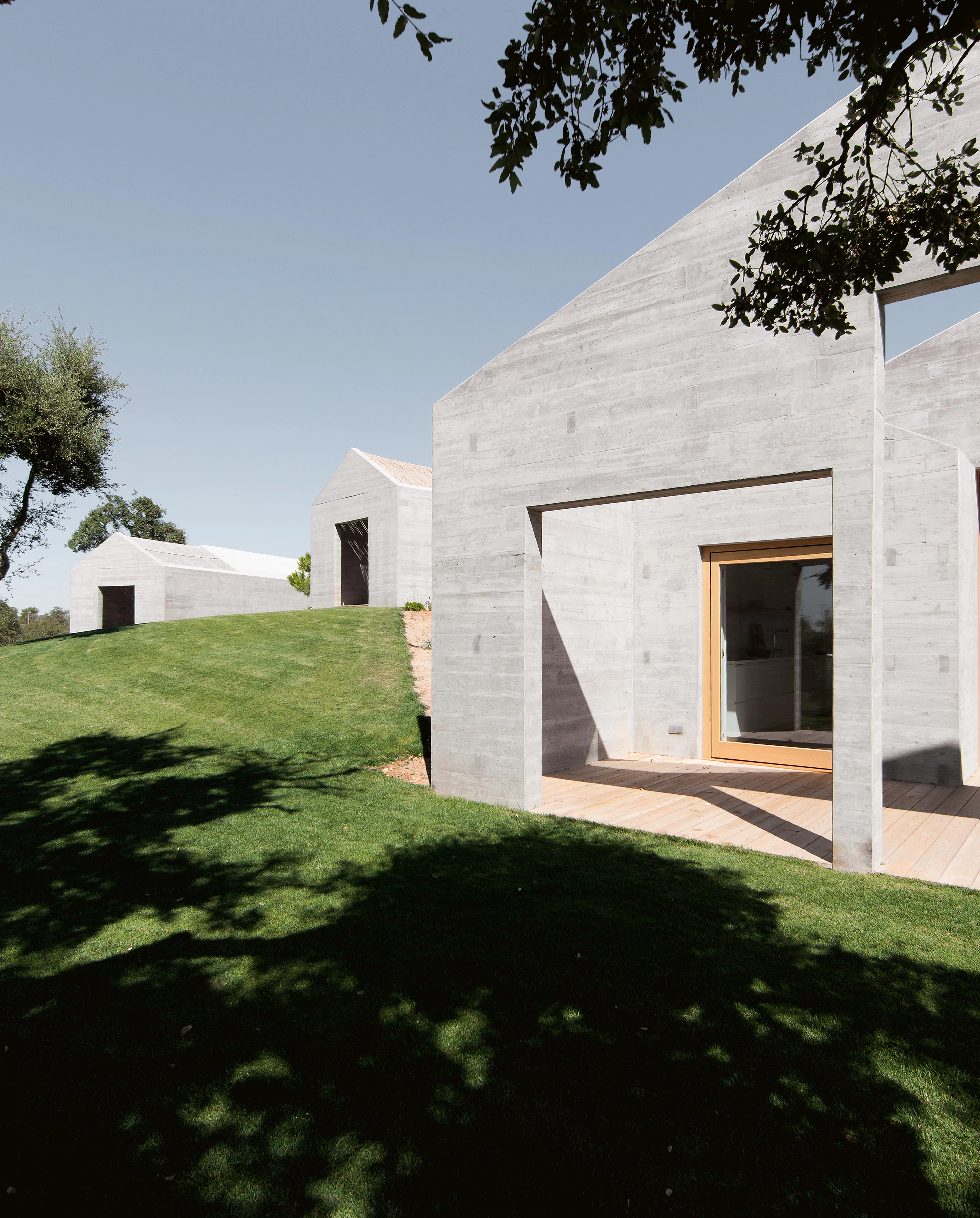 Aires MateusLa obra doméstica de Manuel y Francisco Aires Mateus se caracteriza por su inquebrantable fe en la geometría, y se expresa en piezas abstractas y exquisitas que se relacionan por contraste con el paisaje, que es normalmente el de los impresionantes despoblados del campo mediterráneo portugués. Con sus poco más de 200 metros cuadrados construidos, la Casa en Melide ii no se sale de esta tónica, aunque en este caso se diluya un tanto la impronta geométrica, al hacerse depender el proyecto de una estrategia de fragmentación y dispersión que permite reducir el impacto visual del conjunto y favorecer imprevistas relaciones de cercanía con el paisaje circundante.
