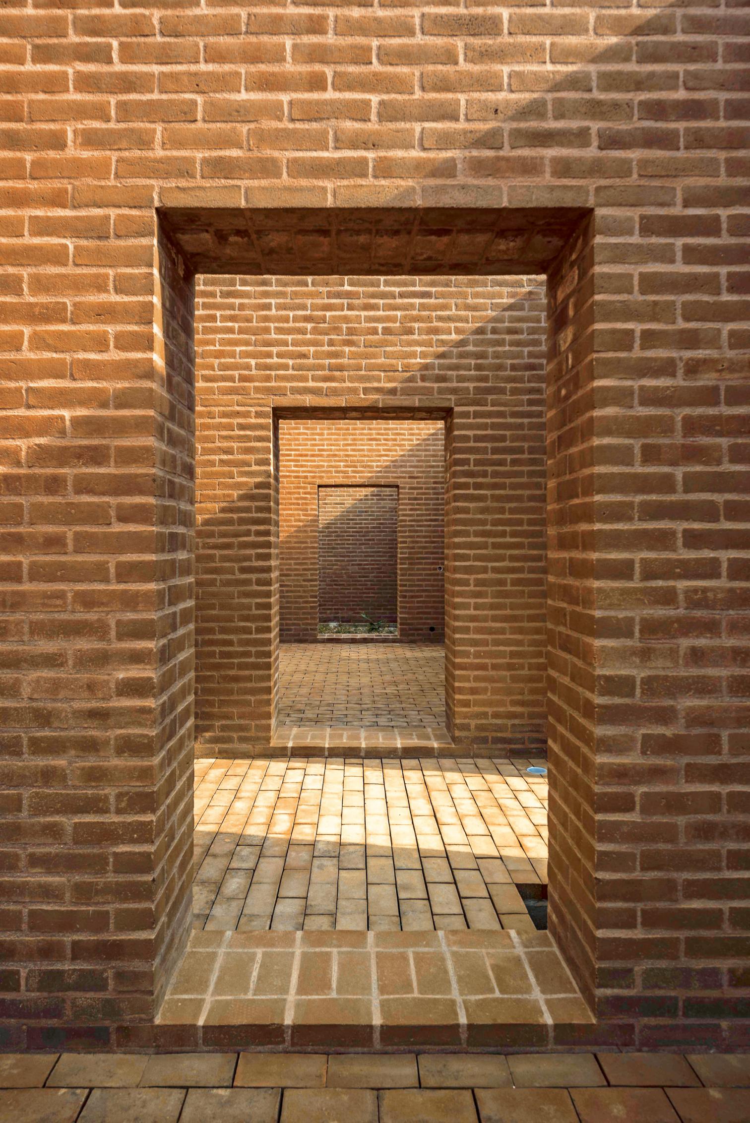 Como si de una obra de arte contemporánea se tratase, la abstracción rige todas las decisiones del proyecto, desde la organización de la planta hasta la elección de los materiales. En primer lugar, la vivienda adopta un esquema volumétrico sencillo —una suerte de fortaleza doméstica cuadrada, abierta al horizonte a través de huecos de la misma dimensión— modulado por una serie de muros de carga que generan una sucesión de células habitables. Las estancias interiores de la vivienda y sus espacios de servicio se organizan en torno a diferentes espacios externos o sucesiones de jardines, cada uno de ellos caracterizados con experiencias, ambientes, colores, olores y usos únicos. En esta ocasión, frente al tradicional encalado blanco, se emplea un único elemento, el ladrillo local hecho a mano, para dotar de unidad y abstracción al edifico y, al mismo tiempo, conectarlo con la tierra del lugar en el que se asienta.