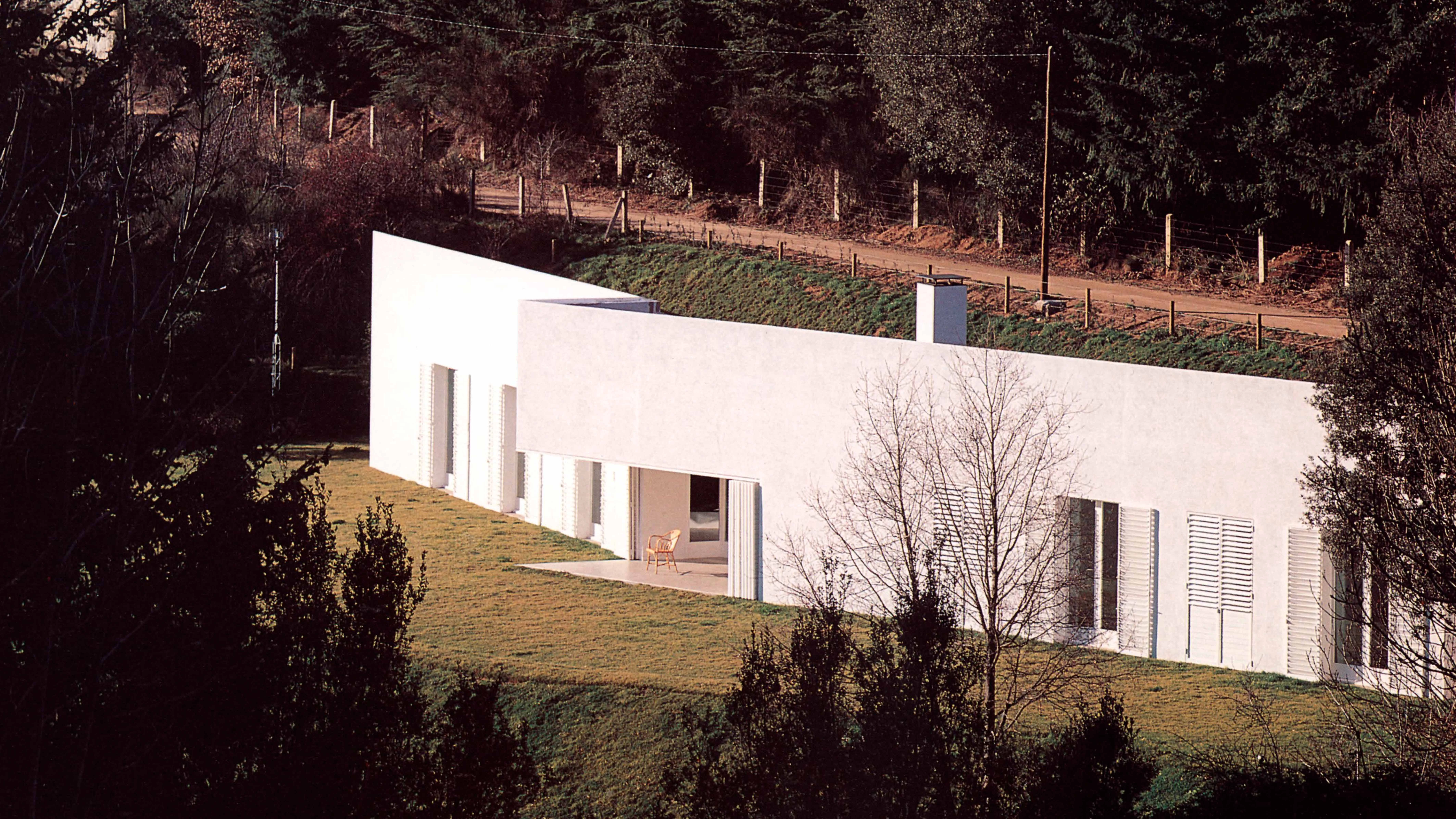 La parcela de 4.000 metros cuadrados donde se sitúa esta vivienda de una sola planta es un terreno en pendiente orientado al sur y con unas magníficas vistas hacia el Montseny. El edificio, con una superficie total de 300 metros cuadrados, está posado en el bancal superior de los tres que configuran la propiedad y responde a un desarrollo lineal que se fracciona y quiebra en función de las mejores vistas, de la privacidad entre los diferentes sectores de la casa y de la obtención de un volumen más grácil. Dentro de este desarrollo secuencial, el programa se divide en dos cuerpos independientes, uno que alberga las estancias principales y que se quiebra a su vez en dos alas diferenciadas, y otro más pequeño, ligeramente separado del anterior, que contiene el garaje y un pequeño estudio. Ambos cuerpos responden, sin embargo, a una misma concepción y están cubiertos por un tejado a una sola agua que se inclina hacia la vía superior del solar. Esto da lugar a una sección triangular que permite alcanzar una gran altura interior en la zona próxima a la fachada principal, donde todas las estancias abren hacia el paisaje a través de puertas acristaladas protegidas por persianas batientes.